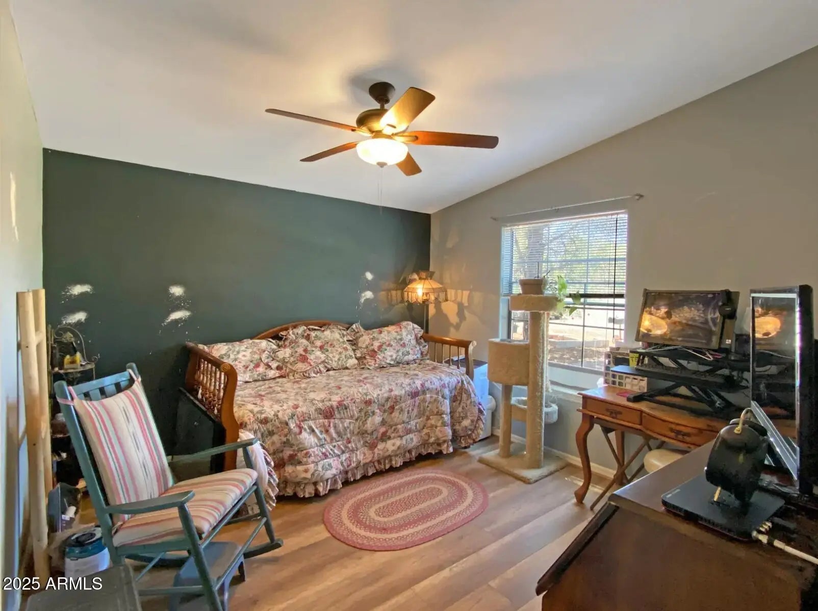 This versatile 3 bed, 2 bath home perfect for multi-generational living with two separate living spaces. The primary suite offers dual closets, a soaking tub, separate walk in shower, dual vanity, and a bonus room ideal for an office or nursery. Home provides a open feel with vaulted ceilings and floor plan. Front and back yards each have a pet door, perfect for pet lovers! Detached 2 car garage with evap cooler makes a great workshop, plenty of room for RV parking. Relaxing outdoor space is a great place for morning coffee or entertaining. This space is flexible and ready to suit your needs! Find out more today!
