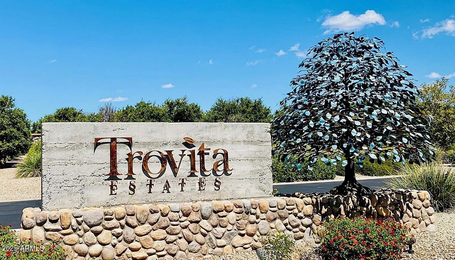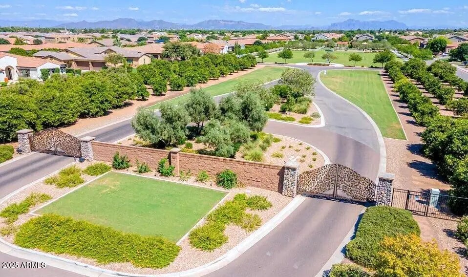 Discover this rare single-level Mediterranean home in NE Mesa's prestigious gated Trovita Estates. A prime, private lot and a sought-after split floor plan offer effortless luxury living—3 bedrooms + office/den, 2.5 baths, and a spacious great room ideal for entertaining. The gourmet kitchen features a large island, upgraded cabinets, premium appliances, and a generous walk-in pantry. Enjoy a resort style private backyard sanctuary w/ sparkling custom pool and large lot. Large 3-car garage w/ space for extra storage. Residents have exclusive access to lush citrus groves, playgrounds, picnic areas, grassy fields, and volleyball & basketball courts in one of Mesa's most desirable communities. Conveniently located between the 202 and 60 , providing easy access for commutes and more.