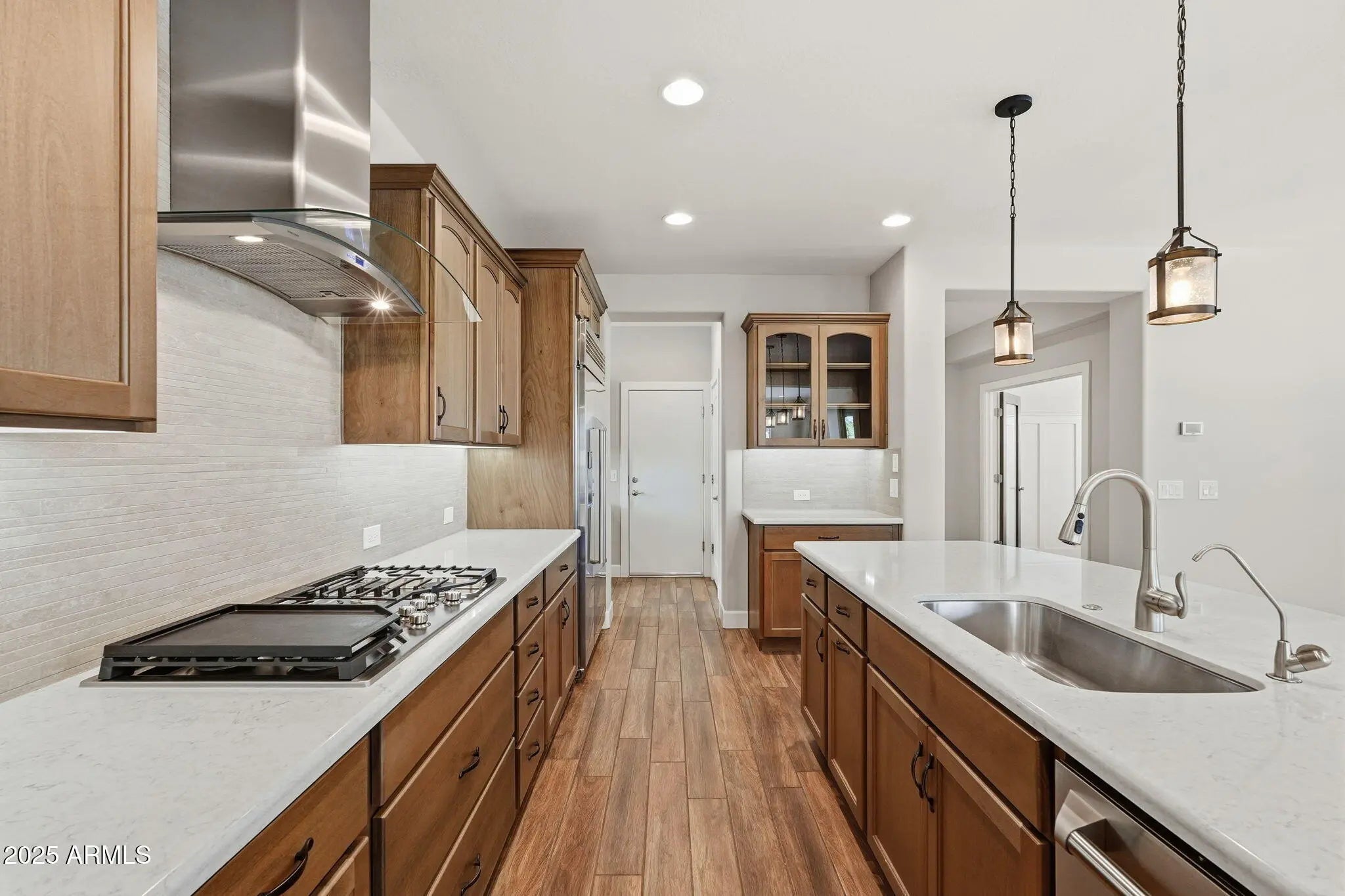Encanterra Nice plan on a premium homesite backing open space and just a short walk to the Algarve. This light, open layout pairs everyday comfort with lock-and-leave ease. The gourmet kitchen takes center stage with upgraded cabinetry, oversized island, stainless appliances, and plenty of prep and storage space, ideal for casual dinners and effortless entertaining. A den with French doors offers a quiet spot for work, hobbies, or extra guest overflow. Both bathrooms are tastefully upgraded with designer finishes, and the home features upgraded tile throughout for a clean, cohesive look and low-maintenance living. Outside, the private backyard looks onto open space with no neighbors directly behind so morning coffee feels a little more peaceful. Book your tour today!