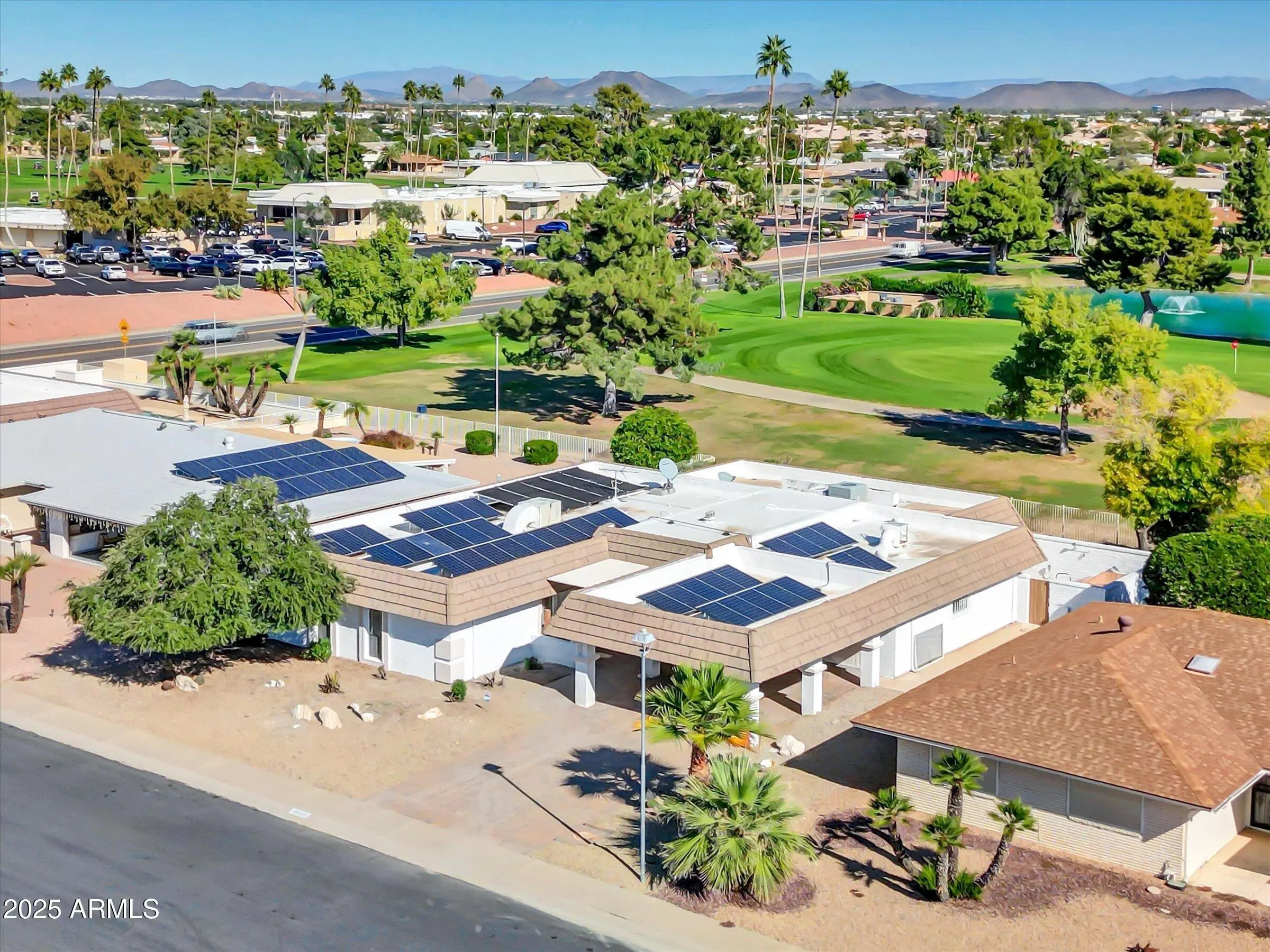 SELLERS LOSS IS YOUR GAIN. 18th-hole stunner with VIEWS--walk to Palmbrook Clubhouse (~100 yards)! This upscale 3,018 SF home brings major WOW with 3BD/4BA, NEW gorgeous porcelain flooring, and a new OVERSIZED PRIMARY SUITE with spa-style bath (dual closets, dual vanities- a standout in this community). Upgraded kitchen offers NEW stainless appliances, recessed lighting and breakfast bar. Big-ticket perks include PAID SOLAR, POOL + spa, plantation shutters, paver drive/entry, plus a 2-car garage and large 2-car carport. Plus excellent STORAGE throughout. The family room's wall of glass frames incredible golf views. Outside, relax and enjoy your backyard oasis for Arizona living. Enjoy as your FOREVER HOME or leverage as a high-performing short-term RENTAL.