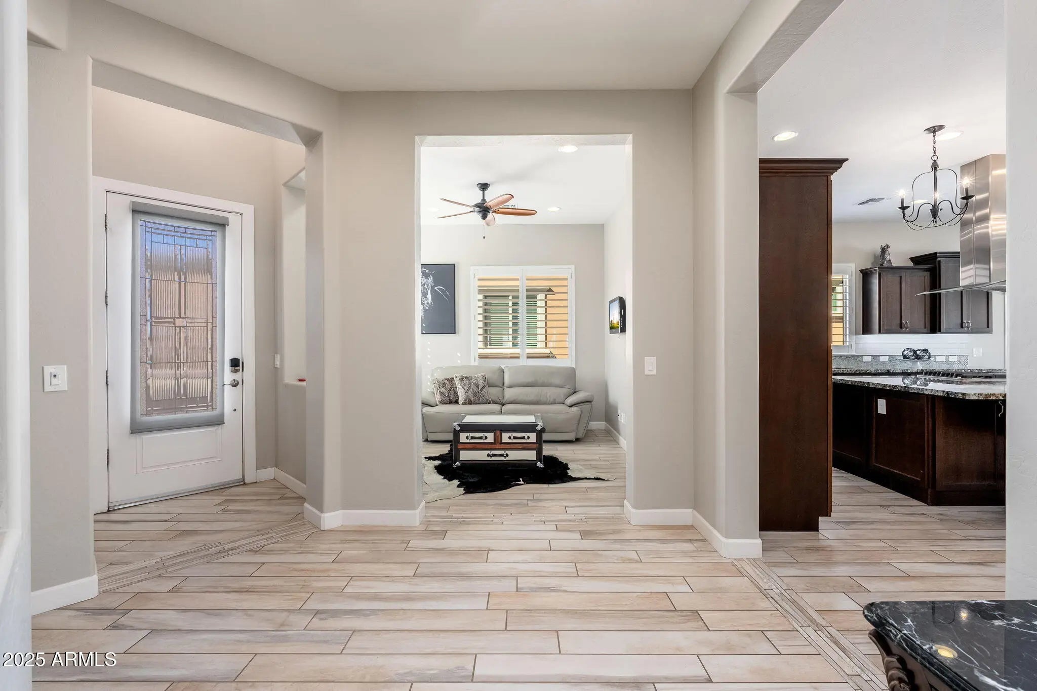 Welcome to 56 E Camellia Way, a beautifully finished home in the prestigious, gated community of Encanterra®. This all-ages enclave is ideal for retirees, part-time residents, or anyone seeking a refined, low-maintenance Arizona lifestyle. The open-concept floor plan features designer touches throughout, including upgraded cabinetry, granite countertops, stainless-steel appliances, custom lighting, and luxury flooring. The chef's kitchen flows seamlessly into the living and dining areas; perfect for entertaining or relaxed everyday living. The primary suite offers a peaceful retreat with a spa-inspired bathroom and a generous walk-in closet. A split layout provides excellent privacy, with a guest suite featuring its own en-suite bath. The versatile flex space is ideal for a home office, hobby room, or fitness area, offering flexibility for every lifestyle. Enjoy Arizona indoor-outdoor living through expansive sliding doors that lead to a covered patioyour ideal space for morning coffee or evening sunsets. Encanterra® delivers a world-class resort experience with championship golf, multiple heated pools, tennis and pickleball courts, fine dining, a full-service spa, state-of-the-art fitness facilities, and year-round community activities. Outside the gates, you'll find boutique shopping, local restaurants, and nearby medical services for exceptional convenience. Perfect as a full-time residence, winter retreat, or investment in a premier community, 56 E Camellia Way offers an elevated and easy-care living experience in a stunning resort community.