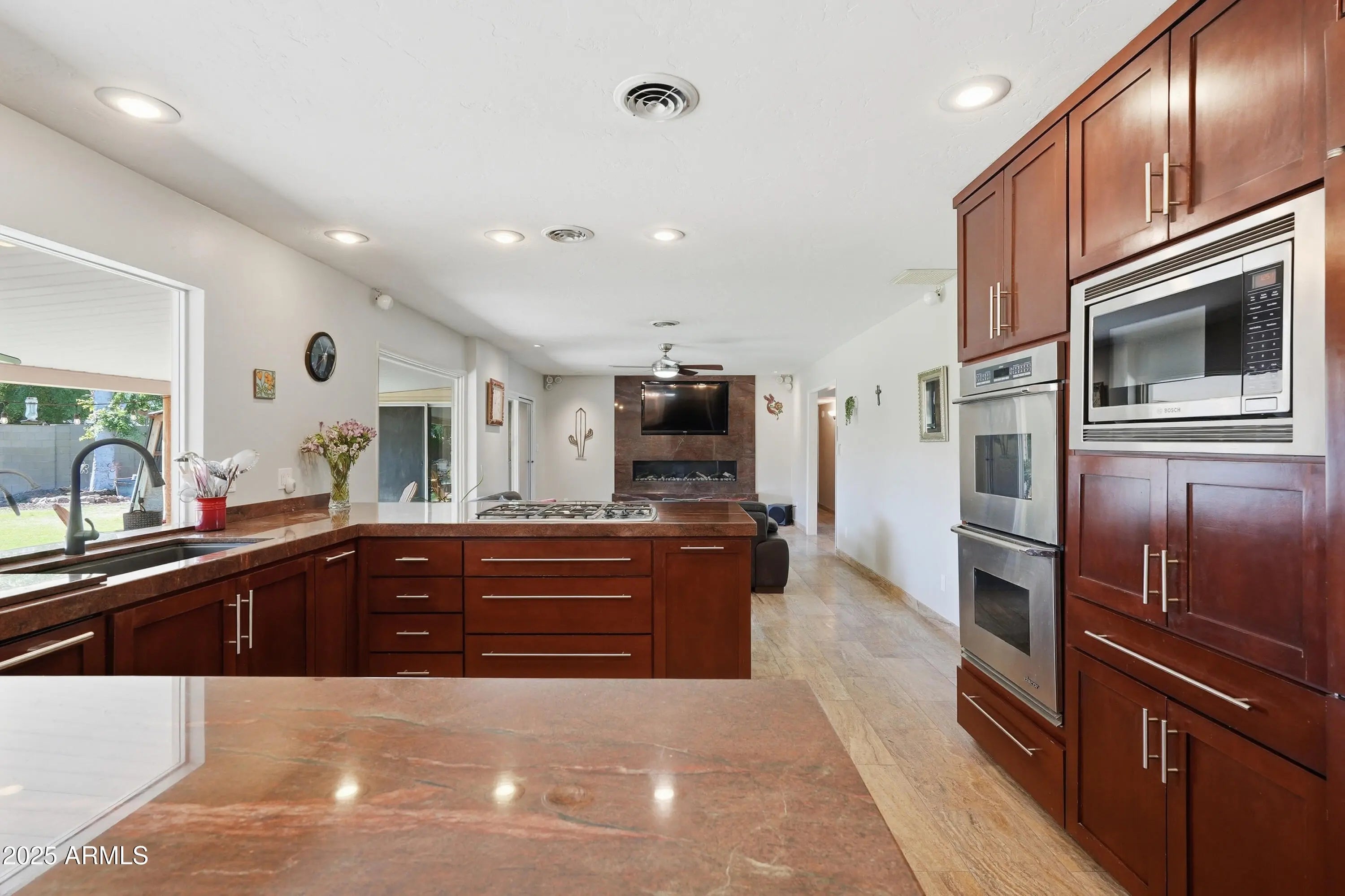 Beautifully updated 4BD/2.5BA home in desirable Moon Valley! Spacious 2,380 sq ft floor plan on 1/3 acre lot with mountain views. Remodeled baths, new 50-year stone-coated steel roof, owned solar panels, new pool pump & filter, and full sewer line replacement to main line. Kitchen features dual Sub-Zero refrigerators, gas cooktop, wine cooler, solid maple cabinets, & soft-close drawers. $25K custom granite fireplace w/remote & $25K custom front door. 4th bedroom ensuite perfect for guests. Large backyard w/extended covered patio, sparkling pool, & mountain backdrop. Oversized garage w/workbench. Private U-shaped street, central vac, underground return, no HOA. Move-in ready with premium upgrades throughout.