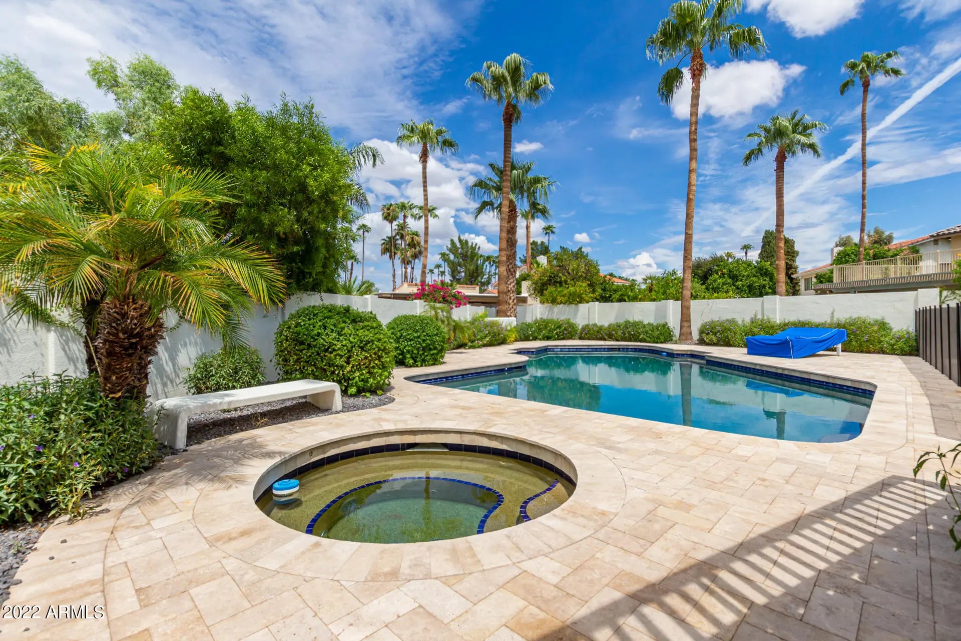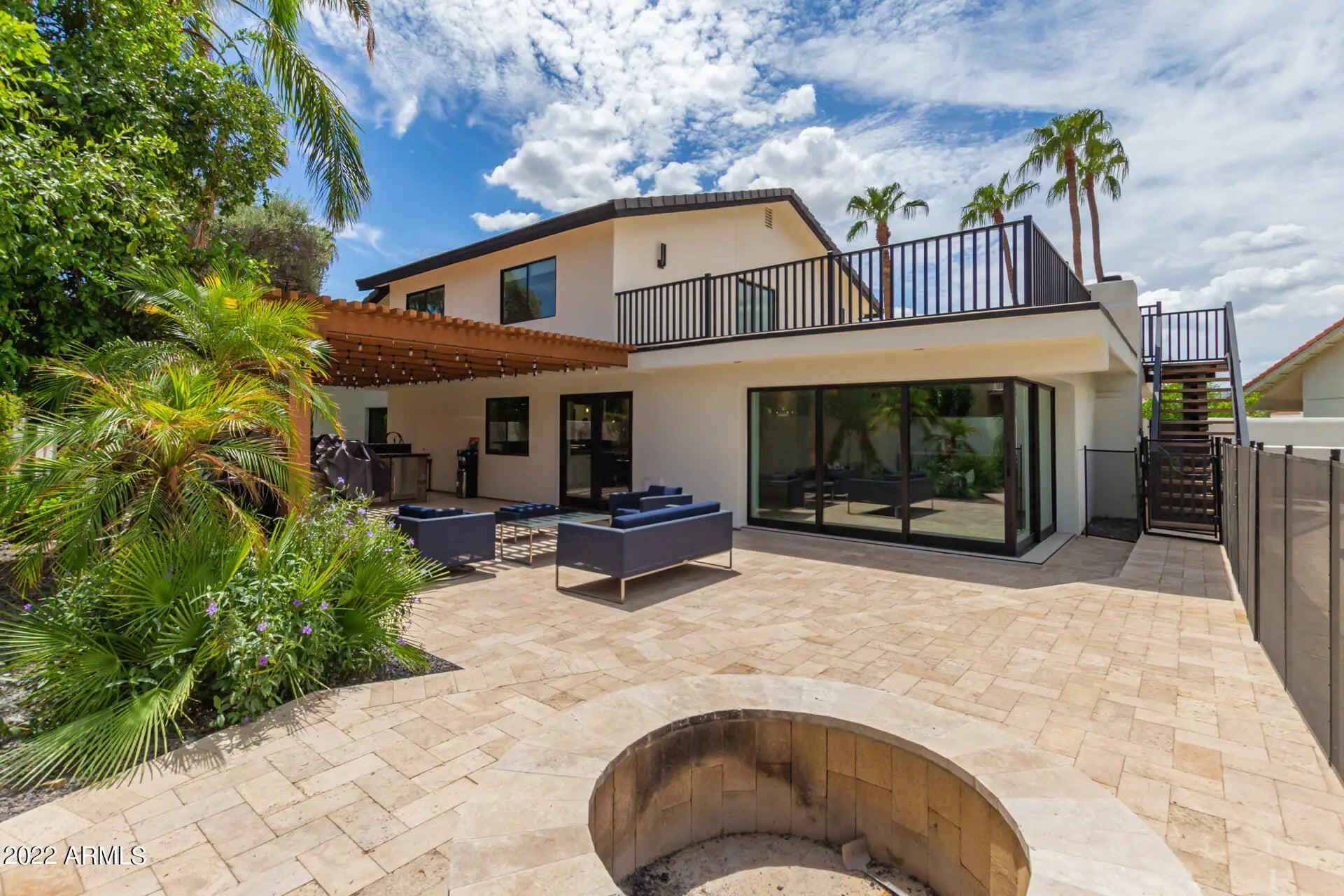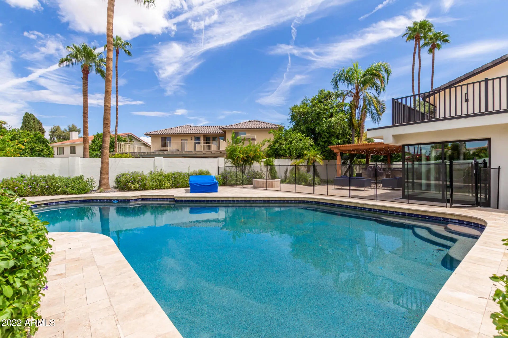 Beautifully updated turn-key home blends modern luxury with timeless design. Major upgrades include new plumbing, electrical, windows, doors, roof, and HVAC for peace of mind and lasting value. Situated in a prime location near top-rated schools, premier dining, entertainment, and golf. Inside, you'll find luxury finishes, designer lighting, and elegant tile flooring throughout. The gourmet kitchen boasts Wolf, Sub-Zero, and Cove appliances, sleek cabinetry, marble countertops, pendant lighting, and a large center island ideal for entertaining. The spacious primary suite features balcony access, a cozy fireplace, and a spa-style bath with high-end finishes. Enjoy a resort-style backyard with a covered Ramada, built-in BBQ with bar, paver patio, firepit, and a fenced pool and heated spa. The pool was recently renovated with a new Baja shelf, pebble tec finish, and brand-new equipment. A perfect blend of comfort, style, and functionality, this exceptional home won't last long!