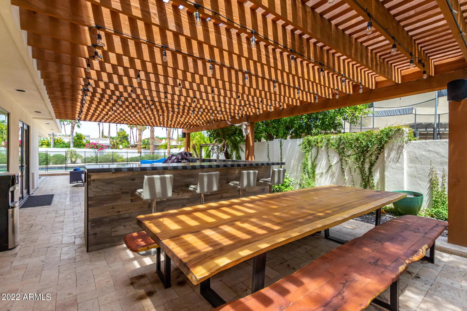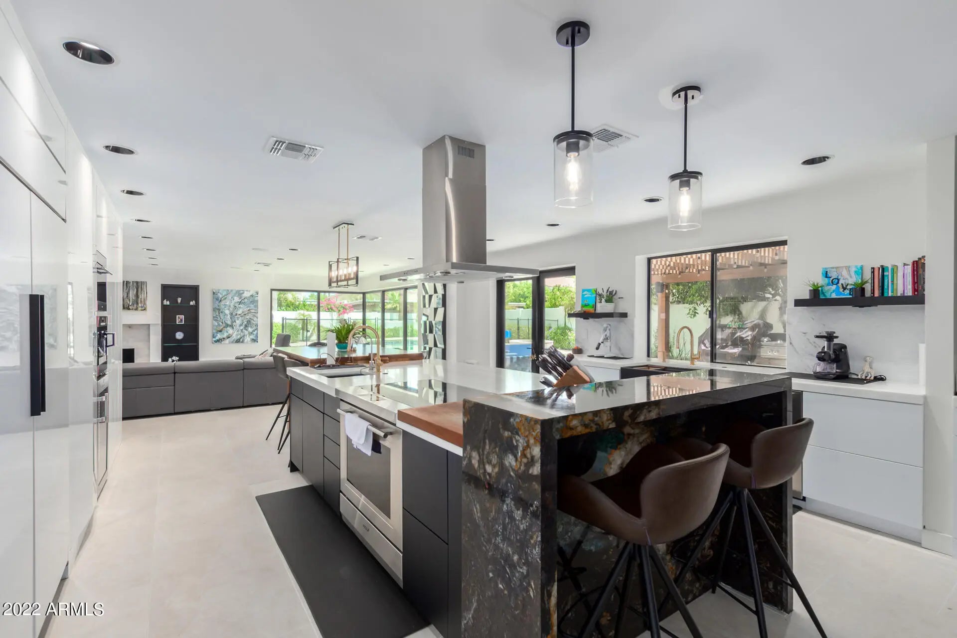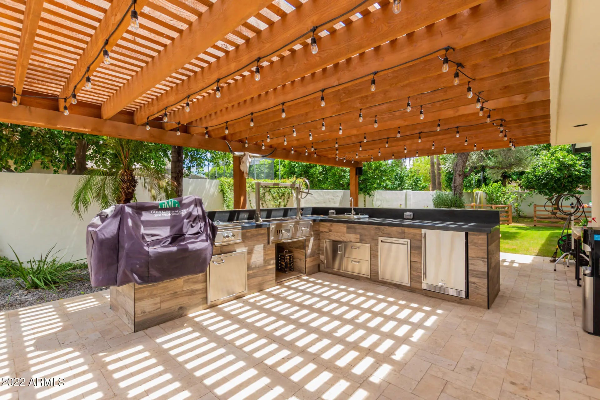Beautifully updated turn-key home blends modern luxury with timeless design. Major upgrades include new plumbing, electrical, windows, doors, roof, and HVAC for peace of mind and lasting value. Situated in a prime location near top-rated schools, premier dining, entertainment, and golf. Inside, you'll find luxury finishes, designer lighting, and elegant tile flooring throughout. The gourmet kitchen boasts Wolf, Sub-Zero, and Cove appliances, sleek cabinetry, marble countertops, pendant lighting, and a large center island ideal for entertaining. The spacious primary suite features balcony access, a cozy fireplace, and a spa-style bath with high-end finishes. Enjoy a resort-style backyard with a covered Ramada, built-in BBQ with bar, paver patio, firepit, and a fenced pool and heated spa. The pool was recently renovated with a new Baja shelf, pebble tec finish, and brand-new equipment. A perfect blend of comfort, style, and functionality, this exceptional home won't last long!
