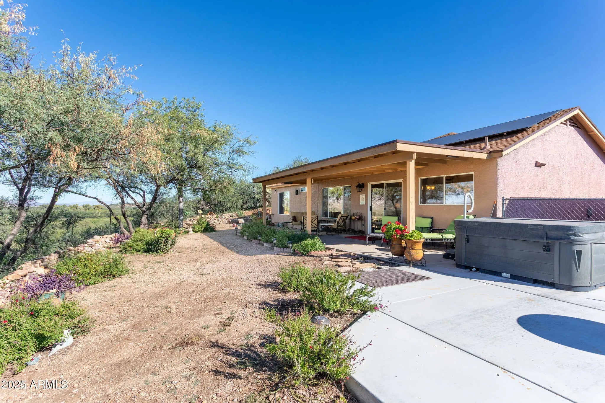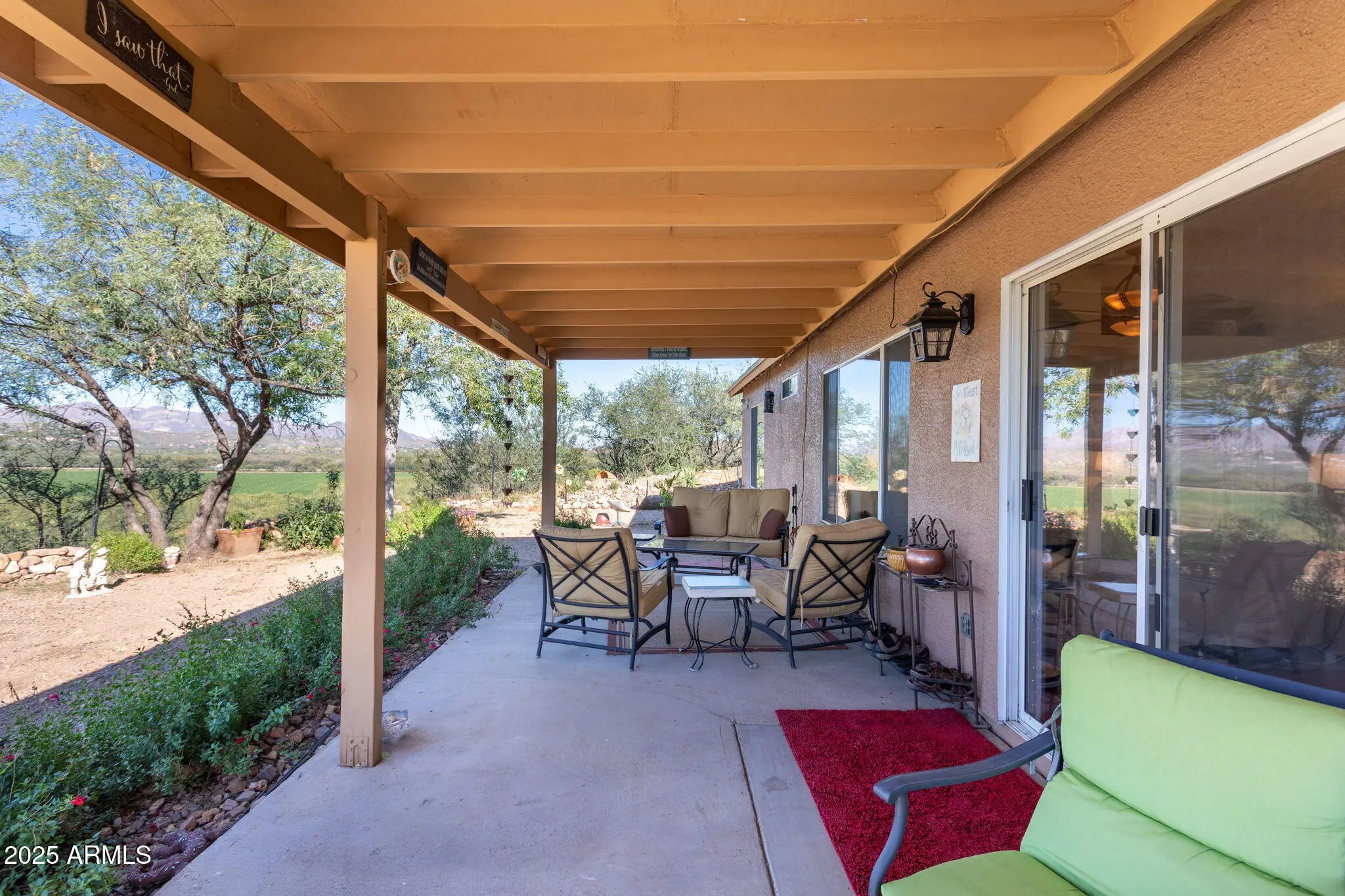 This beautiful home sits at the end of a long private driveway on almost an acre with stunning views of the mountains and Rio Rico's amazing riparian area. Enjoy your privacy and the beautiful sunsets on the covered back patio. This immaculate home has granite counters throughout, a large primary bedroom with en-suite and a spacious guest room. Plus, it is conveniently located off of Rio Rico Dr. just minutes from the freeway , grocery store and dining. Your home in Rio Rico awaits!