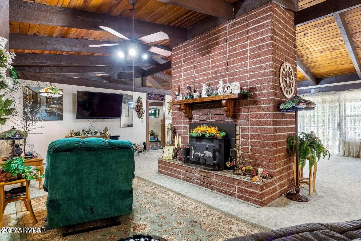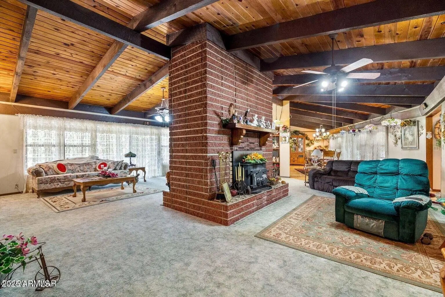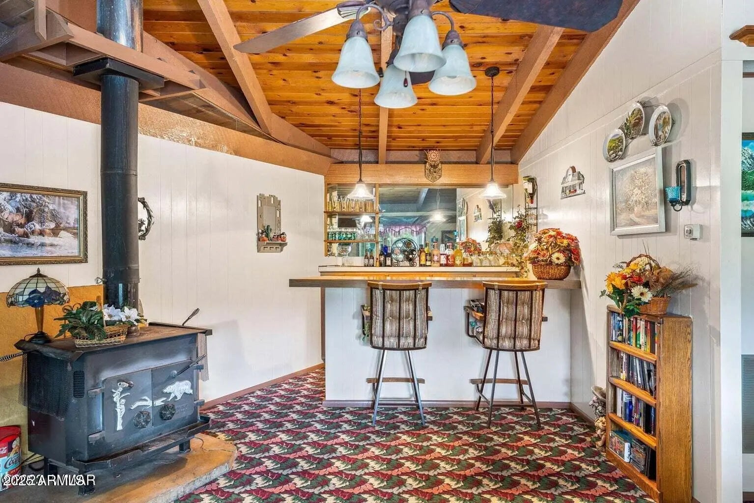3,597 Sq.ft. 3 BD/2 BA home located in the Alpine Country Club Estates overlooking the No. 9 Fairway and Green on a 1.59 forested acre parcel with mountain views. Features a Living Room/Family Room with a double-sided fireplace with a wood burning insert on one side and a wood burning fireplace on the other side; kitchen/dining room combination; library with a wet-bar area; large recreation/pool table room with fireplace; utility/pantry room. Detached 3 car garage with storage room. Covered front porch; and enjoy the views from the covered back deck.