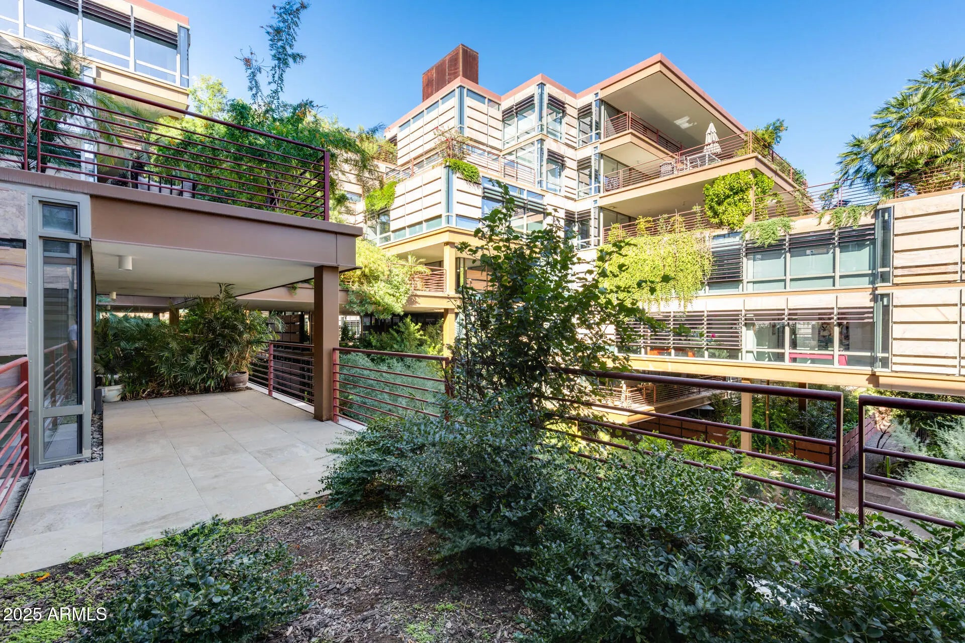 Chic City Oasis! Sleek & modern condo offering an open living area with abundant natural light & courtyard views. The gourmet kitchen features quartz countertops, stainless steel appliances, custom backsplash & premium cabinetry—flowing seamlessly into the spacious living area with a stunning floor-to-ceiling sliding glass door to the balcony. Flexible bonus space ideal for dining, office or den. The large primary suite includes built-in cabinetry & a custom walk-in closet, plus an ensuite featuring upgraded dual vanities & a walk-in glass shower. Enjoy large tile flooring, high ceilings, dual A/C units, NEST thermostat & upgraded washer/dryer. The balcony offers both covered & open-air seating overlooking tranquil gardens. Includes 2 garage spaces. Optima Camelview community includes multiple indoor & outdoor pools, fitness center, spa & sauna, basketball & racquetball courts, outdoor putting green & dog park - all near Scottsdale's premier dining, shopping & entertainment. Experience effortless living surrounded by resort amenities & vibrant city life.