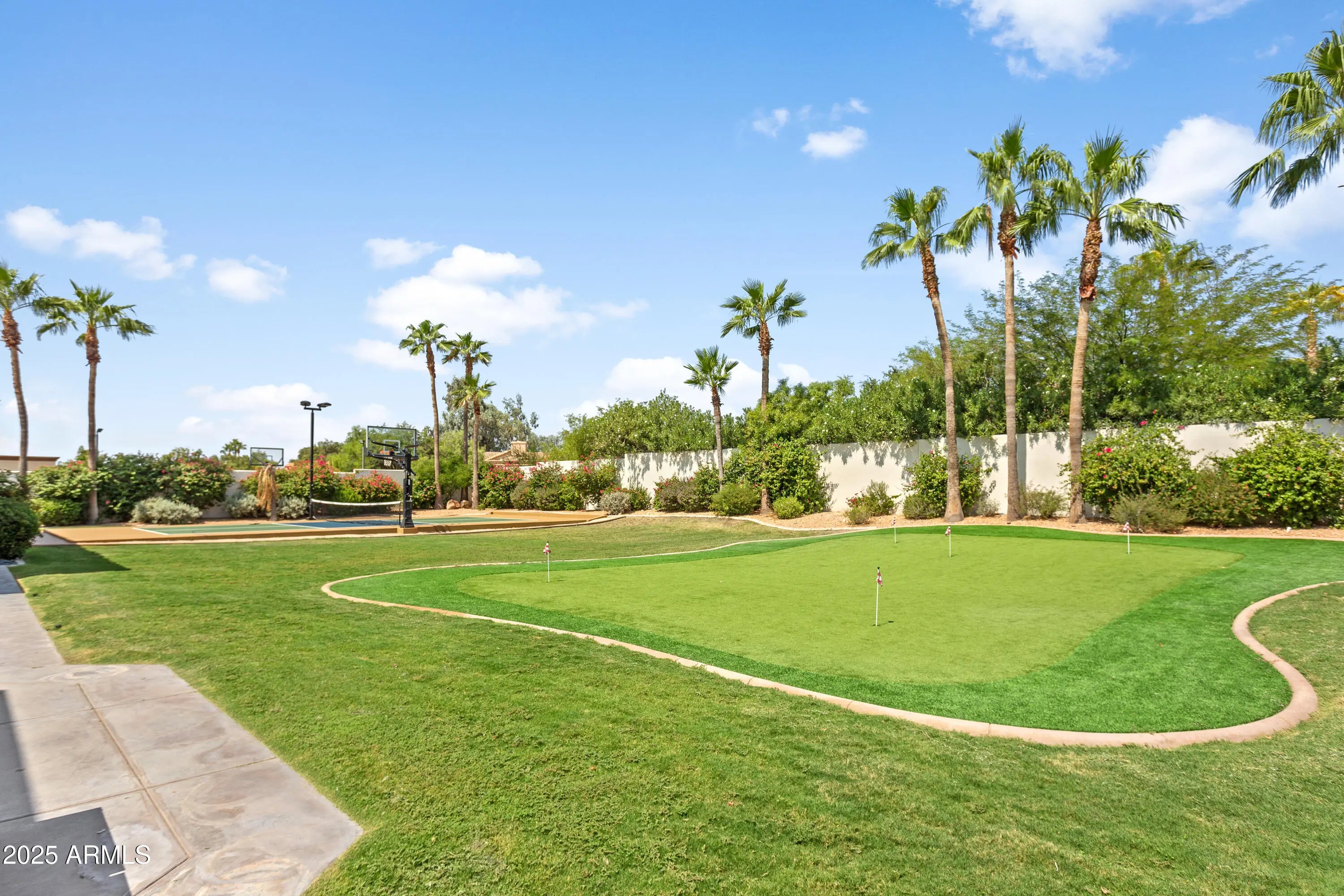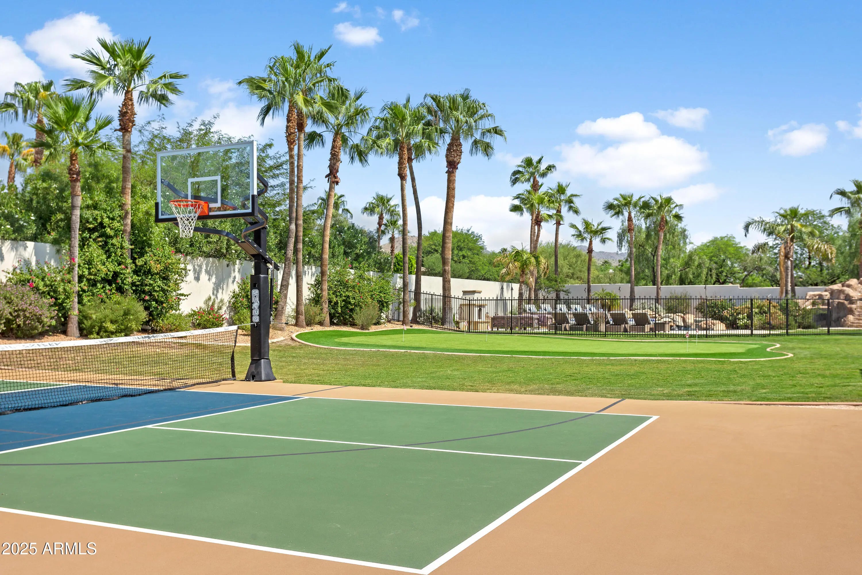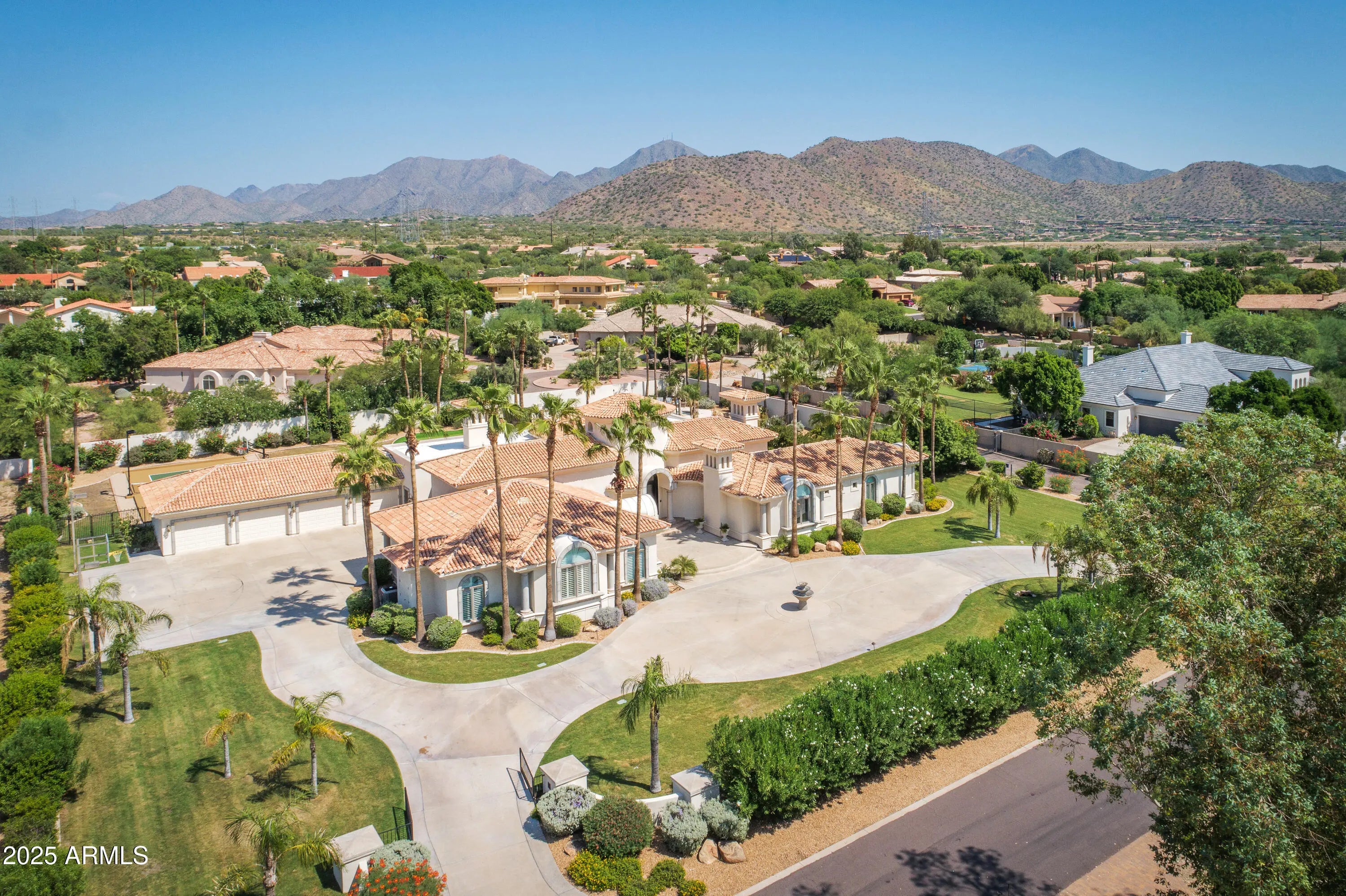 Experience resort-style living in this 5,775 sq ft Cactus Corridor estate on 1.2 acres of luxury. Framed by mountain views, this Laurel Lane masterpiece welcomes with striking curb appeal and a grand arrival court. The split floor plan showcases an opulent primary retreat with fireplace, sitting area, and marble spa bath. A chef's kitchen featuring Wolf/Sub-Zero appliances overlooks the 60,000-gallon pool and sweeping vistas. Outdoor amenities abound—custom waterslide, pickleball and basketball courts, putting green, and water features create a true entertainer's paradise. A separate guest wing with 4 bedrooms ensures comfort and privacy for all. Large bonus room is great for entertaining. The home also offers formal living and dining rooms, a large bonus room perfect for entertaining, and a full pool bath for added convenience. The resort-style backyard is designed for ultimate outdoor enjoyment, featuring a 60,000-gallon pool with a custom waterslide and cascading water features. Additional amenities include a regulation-size pickleball court with lights, a basketball court with hoops in both the front and back, a poolside fireplace, and a large putting green. The 4-car garage offers an additional rear garage door for backyard access. There is also ample space to add a casita on the southwest corner of the lot, providing even more flexibility for the new owner . This is a rare opportunity to own a spectacular estate in one of Scottsdale's most sought-after neighborhoods, offering both luxury and convenience in an unparalleled setting.