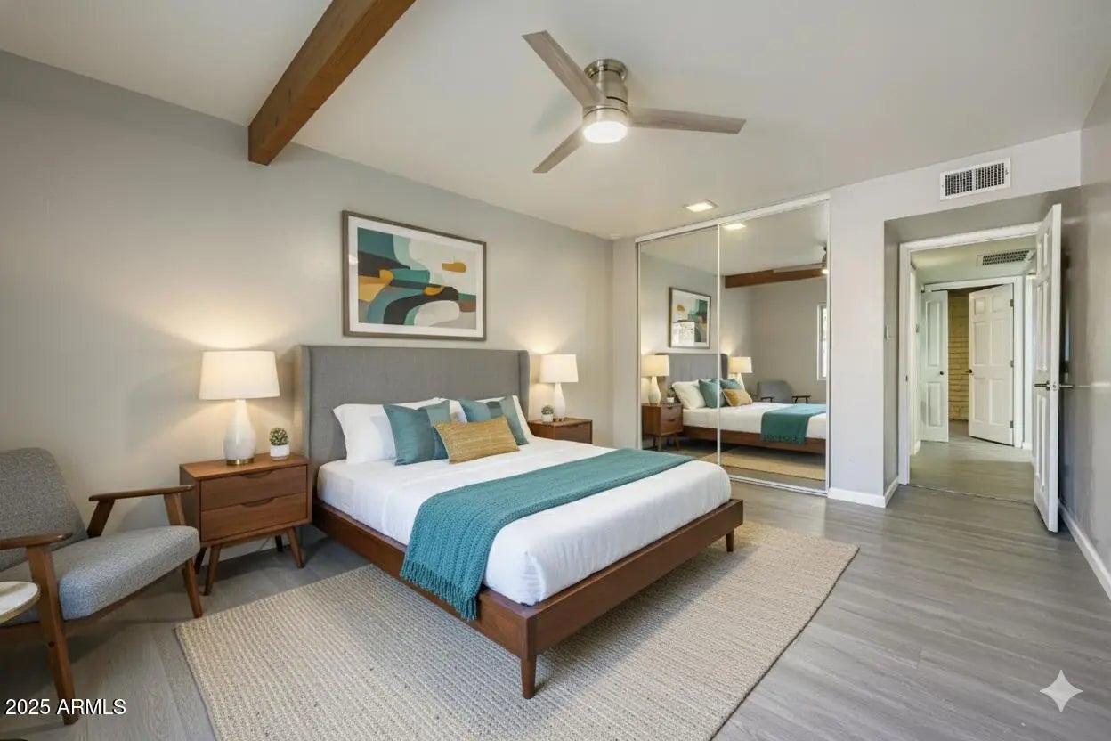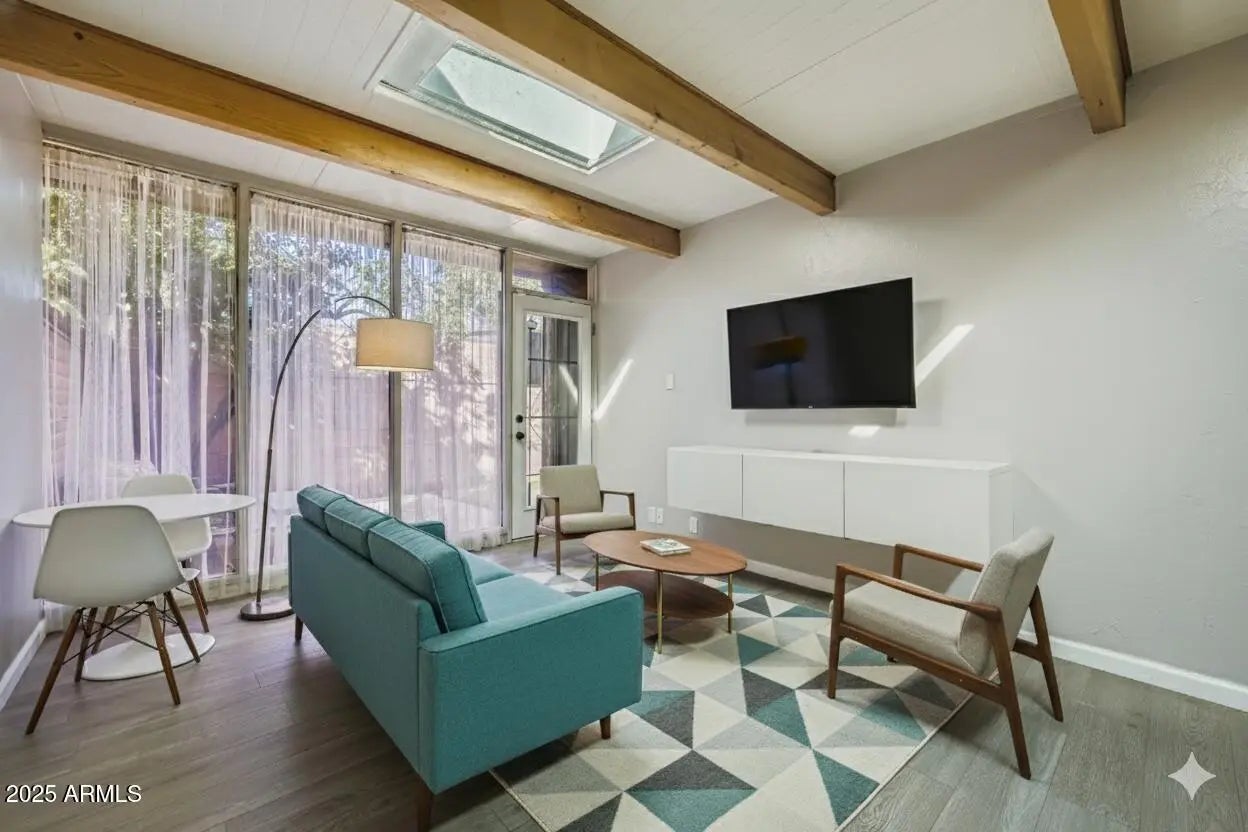 Enjoy a charming 2 bedroom townhome in Arcadia! Recent upgrades include a remodeled kitchen, new HVAC in 2025 with transferable warranty, remodeled bathroom, upgraded electric panel with higher amps, inside washer/dryer, installed tankless water heater, new dishwasher, R/O system & blinds in 2024. The kitchen showcases granite countertops, new appliances, plenty of cabinet space and an eat-in dining area. Spacious living room has beautiful exposed beam ceiling with a skylight to allow plenty of natural light in. The back private patio has a large shade tree and space to relax to enjoy a nice dinner outdoors at the end of a long day. Located just minutes to Biltmore Fashion Park, Celebrity Theater & Sky Harbor Airport and freeways for plenty of shopping, dining & entertainment option!
