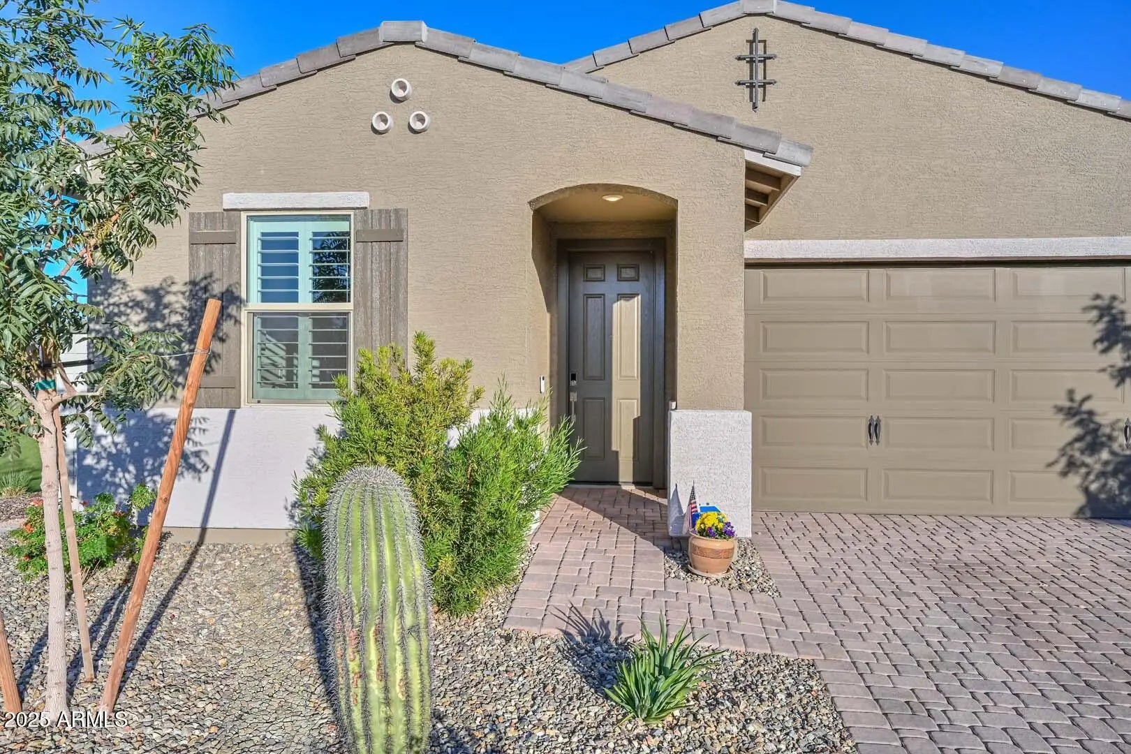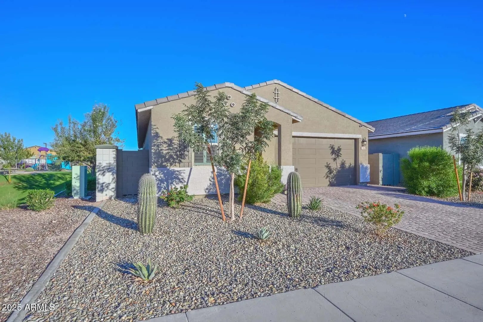 Modern Luxury Meets Everyday Livability...Discover this impeccably upgraded 4-bedroom residence where sophisticated design meets effortless comfort in Camino Crossing, the only all age neighborhood of SCW! Perfect for the executive seeking a low-maintenance lock-and-leave home or a growing family craving functional luxury. Elevated design throughout — custom lighting and cabinetry, sleek wall tile work and modern bath finishes create a fresh, contemporary vibe. The open-concept kitchen, anchored by a generous granite island is open to the great room, inviting all to gather in style. 2 of the 4 bedrooms feature private en-suite baths, making this an ideal setup for multi-gen living,teens& guests, needing their own retreat. Laundry room has custom cabinetry & sink. OVER $70K IN UPGRADES !! The versatile flex/teen room can easily transform into a gaming lounge, fitness area, or hobby studio. Step outside to your own backyard oasis, a designer-inspired landscape with a putting green and clean geometric paver design that's as striking as it is low-maintenance. Enjoy peaceful evenings under the covered patio or grill out with friends as the sun sets over the nearby park. Situated on a premium lot adjacent to lush green space and playground, this home perfectly balances tranquility with convenience. Located just South of Loop 303 off El Mirage Road for super easy access to all ends of the Phoenix Valley and 3 minutes from Corte Bella Golf Club for quick access to a round on resort style course! Don't miss this luxuriously appointed home in an excellent location! It is ALL done for you and you deserve it!