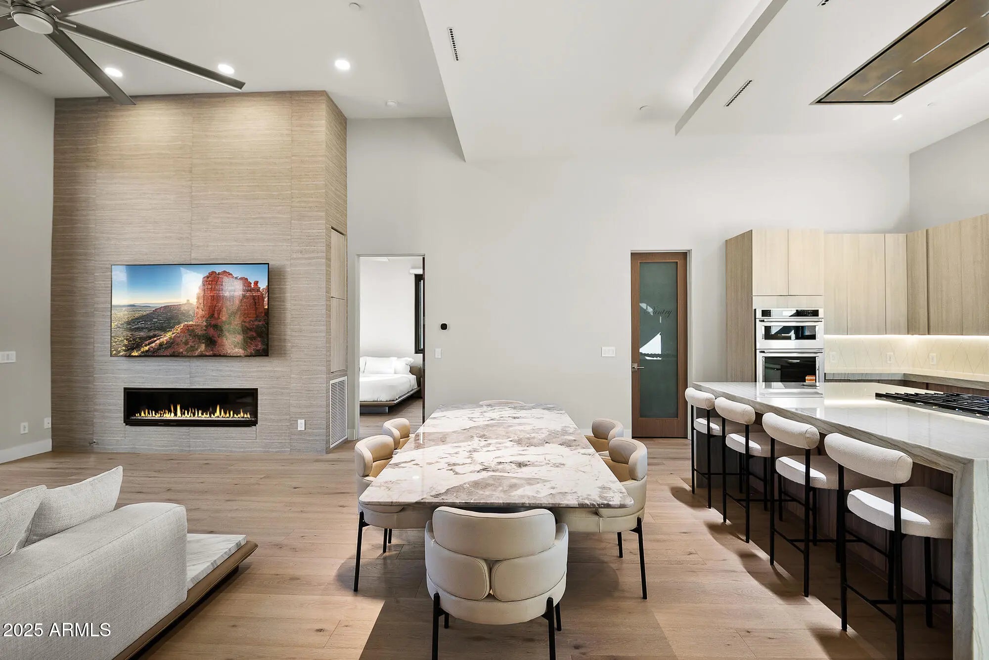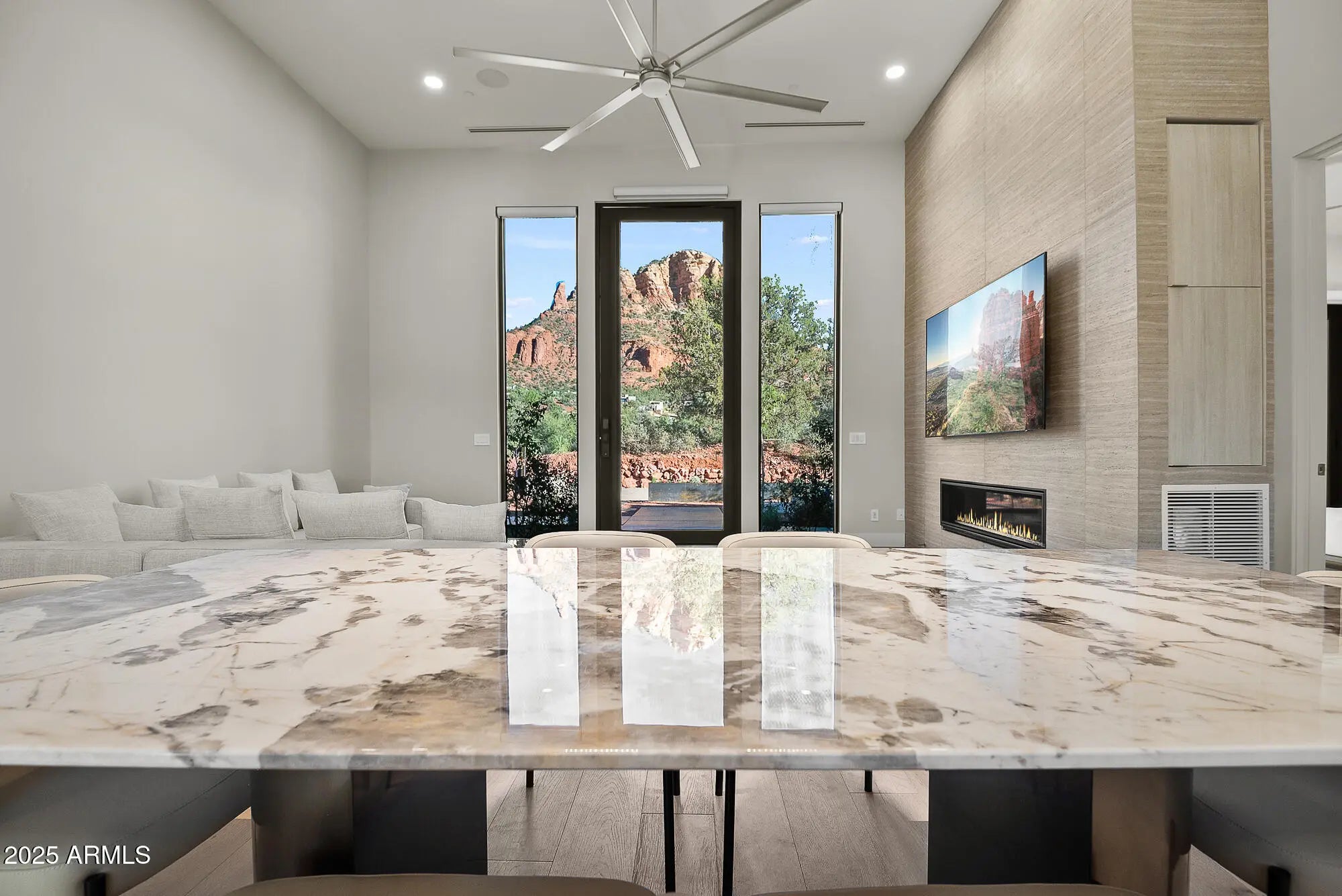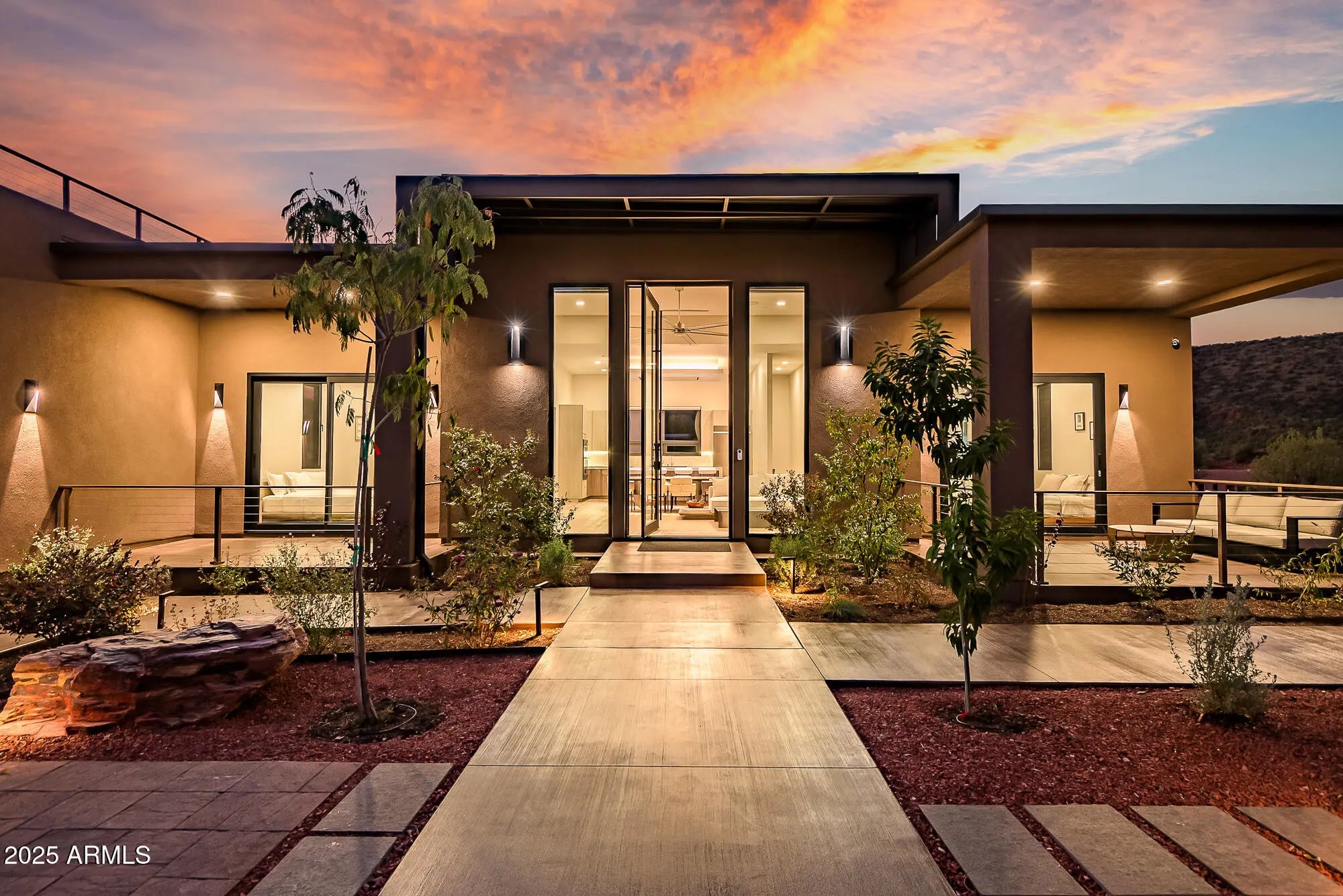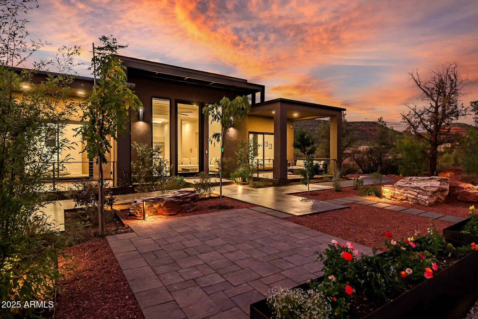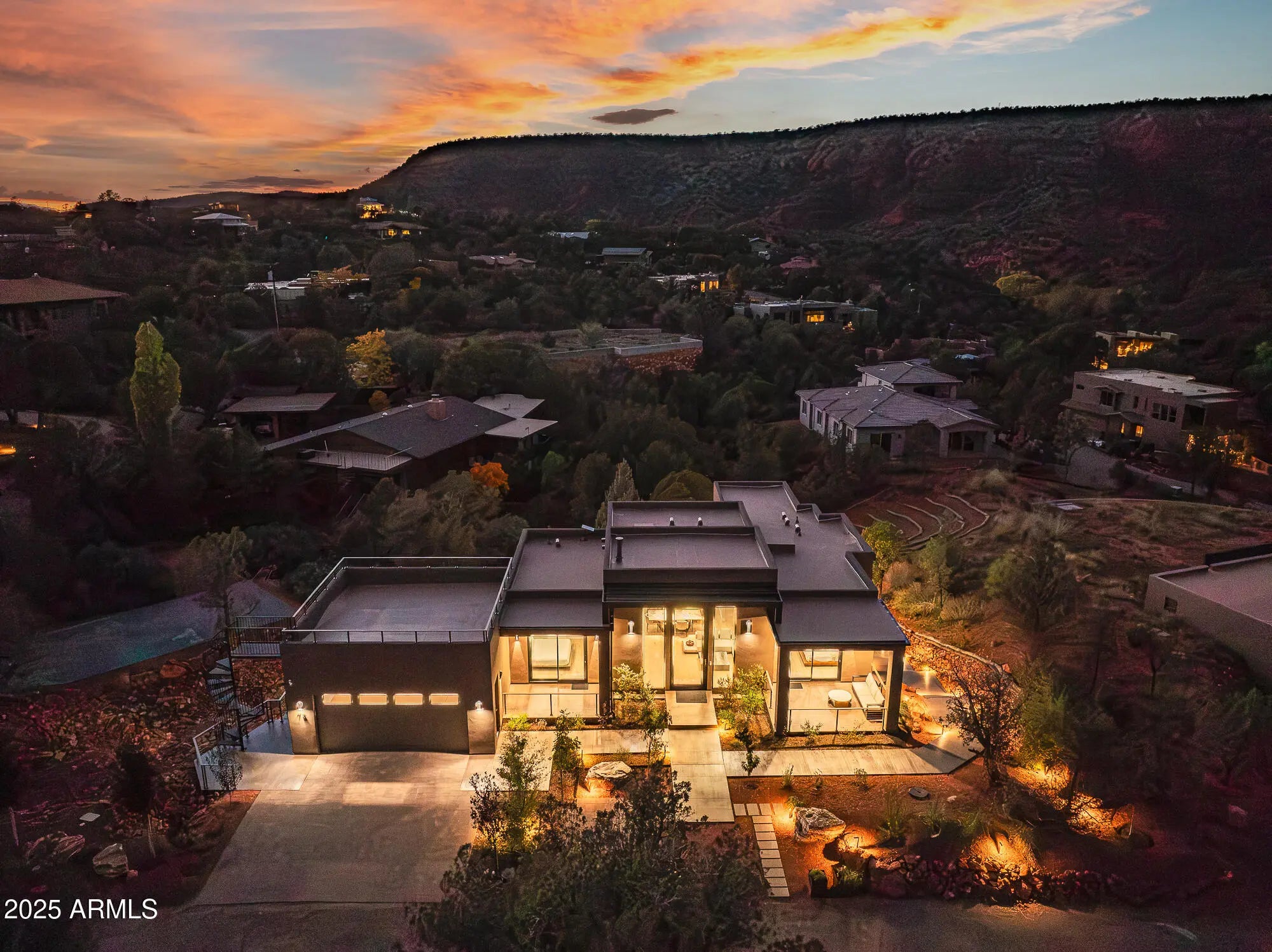 The Elephant Rock Residence redefines modern living perfectly positioned along the Bell Rock Trail, this architectural statement captures unobstructed views of Elephant Rock, a rare vantage point that balances design, privacy, and prestige. Every detail of this 0.59-acre property, 5 Bed, 5 Bath - 3,058 sq ft interior, 1,600+ sq ft of outdoor living, 786 sq ft of fully conditioned crawlspace with a concrete floor, 576 sq ft of Rooftop Deck with private road has been crafted to highlight Sedona's dramatic landscape. The home's clean modern lines and natural materials create a seamless connection between indoor comfort and outdoor beauty. ''Expansive windows'' frame the red rocks like living art, while 14-foot ceilings and an open layout invite light, air, and movement. From the rooftop deck to the chef's kitchen, this is a home designed for refined living and effortless entertaining where elegance meets ease. Key Features " Architectural Modern Design: 3,058 sq ft interior + 1,600+ sq ft of outdoor living, 5 Bed, 5 Bath, 786 sq ft of crawlspace with concrete floor, 576 sq ft of Rooftop Deck, Two Garage features a quiet, wall-mounted jackshaft opener for a clean, overhead-space-saving design " Rooftop Deck (576 sq ft): Panoramic vistas and unforgettable sunsets. Westcoat's, ALX waterproof deck 6 layer coating system - Waterproof sheet material, Metal lath, Base coat, Fiber lath, Slurry coat & Texture coat " Custom Details: 5ft wide 12ft high Iron pivot custom door, 6ft wide modern spiral staircase, Custom Awning / Trellis - all powder coated, European white oak floors, Custom Railing & Custom Window shades motorized " Gourmet Kitchen: Quartzite waterfall island, GE Café Gas range in the Island + KitchenAid appliances - 42" wide refrigerator, Unique "Best" Rangehood in the Island soffit as not to interrupt views and abundant natural light " Wet Bar: Quartzite waterfall countertop, KitchenAid appliances - Microwave, Dishwasher & Refrigerator " Smart Home Systems: Lutron lighting, Smart switches, Smart Toilets, EV-ready garage, integrated sound, Smart landscaping lights, B-Hyve Smart Irrigation System, Smart Facial Recognition Locks " Enhanced Crawlspace - This home features an upgraded, fully conditioned crawlspace with a concrete floor giving you peace of mind and an excellent area for storing out-of-season items in a clean, dry environment. " Outdoor Finishes: Grand Canyon Onyx & Paint boulders, professional desert landscaping, LED lighting accents, Wide steps and walkways create a sense of grandeur, provide easier access, and can be a significant boost to a home's curb appeal. " Mechanical Room - Dedicated mechanical room houses the tankless water heater and furnace, ensuring easy maintenance and quiet operation. Dedicated system for both level. " Utilities - BOSCH a premium Heat Pump with inverter technology and the A2L refrigerant, R-454B, meets low-global warming potential (Low-GWP) requirements, Sound levels as low as 59 dBA. Navien Tankless water heaters and 500 Gallon Underground Propane Tank. " Prime Investment Opportunity: An exceptional retreat or investment opportunity in one of Sedona's most desired, energy-rich locations with proven short-term rental demand in Sedona " Landscape - Shrubs & Plants - Start your day on the patio, surrounded by the serene scent. The meticulously landscaped boasts an array of fragrant plants that welcome awaits at the front entrance. " Custom Furniture - Modern custom furniture designed for optimal flow and visual harmony throughout each room. Every piece crafted with premium materials and attention to architectural details available for the purchase with Bill of sale. Imagine moving right in without the stress of furnishing. The Elephant Rock Residence offers an exceptional blend of architecture, technology, and location a modern sanctuary at the edge of Sedona's red rock horizon. Whether as a private retreat or a premier investment, it's a property that commands attention and delivers lasting value. Co-listing Agent is a Registered General Contractor in Arizona state.
