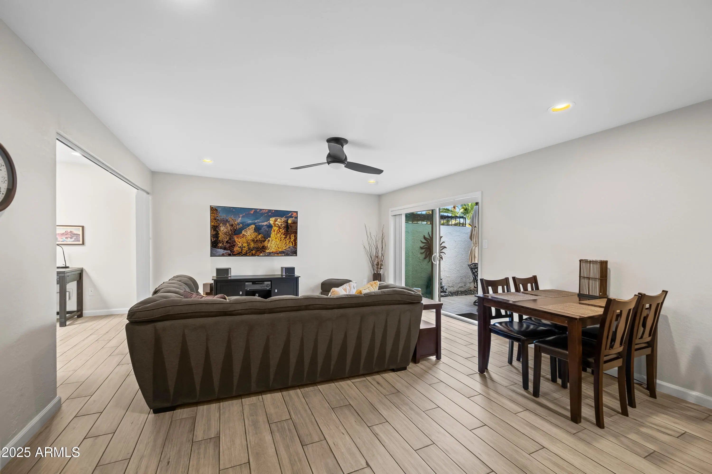 Welcome to Casita Real, a charming South Scottsdale community! This beautifully updated 1-bedroom plus den condo offers style, flexibility, and an unbeatable location just minutes from some of Arizona's best shopping, dining, and entertainment. Updated in 2019, it features wood-look tile floors, granite countertops and white cabinets in the kitchen, and an in-unit washer and dryer. This private interior unit is conveniently located near the community pool, surrounded by mature landscaping and plenty of green space. Enjoy community amenities including a pool, spa, grills, doggy stations, and a gated dog exercise area. Assigned covered parking and plenty of visitor parking add to the convenience. Perfect as a primary home, lock-and-leave getaway, or short-term rental with proven STR income.