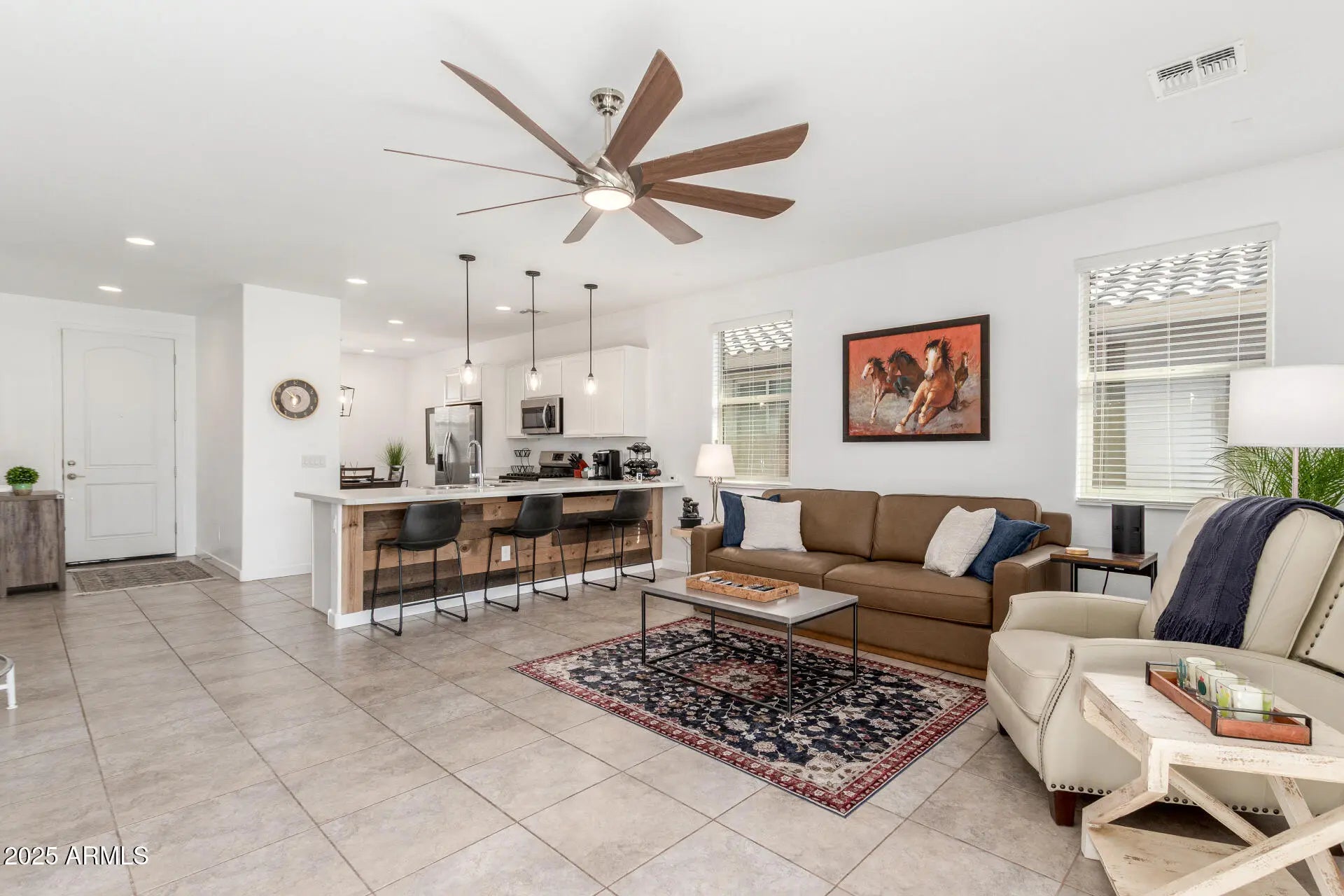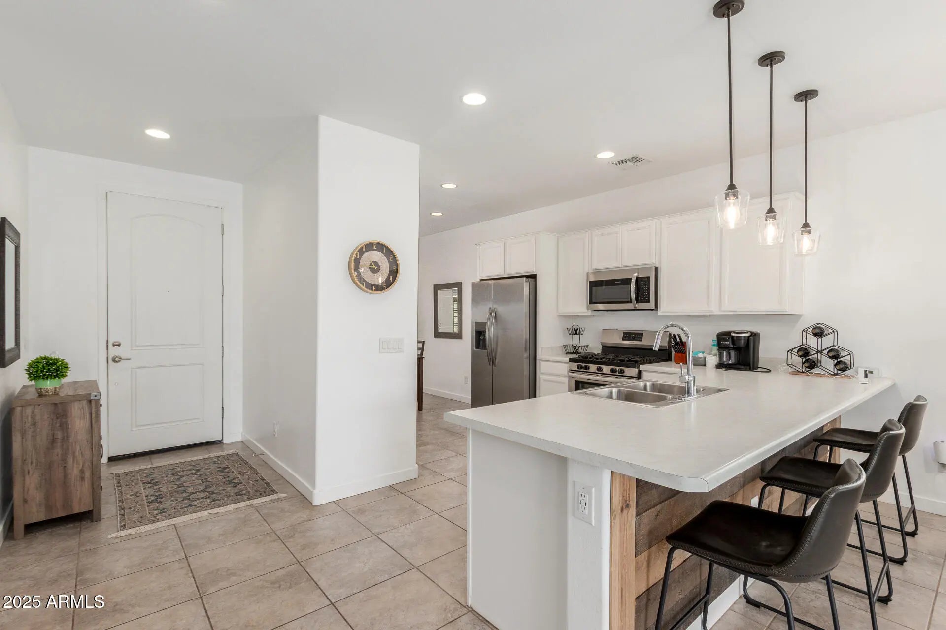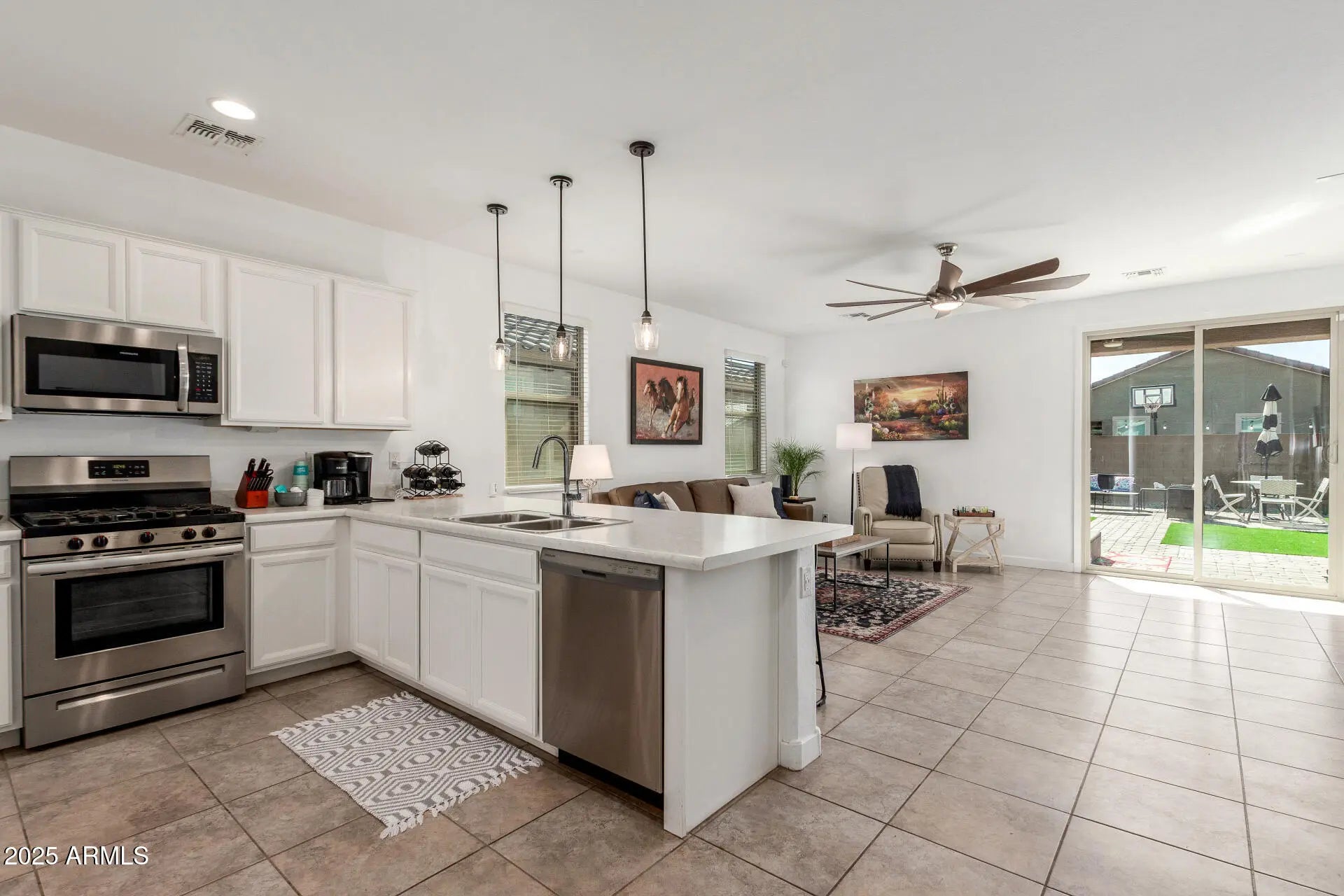 Step inside this beautifully refreshed home where modern comfort meets timeless charm. Tile floors flow throughout the main living areas, while plush new carpet in the bedrooms adds warmth and coziness. The interior has been freshly painted, and a stunning reclaimed-wood accent wall adds just the right touch of character. The kitchen is bright and functional, featuring durable countertops and plenty of space to create your favorite meals. Outside, discover your own private retreat — a backyard oasis with brand-new turf, a large paver patio, and thoughtfully designed rock landscaping. There's even a gas stub ready for a BBQ or firepit, perfect for outdoor entertaining all year long. Move-in ready, stylish, and full of personality this home is waiting for you to make it your own!