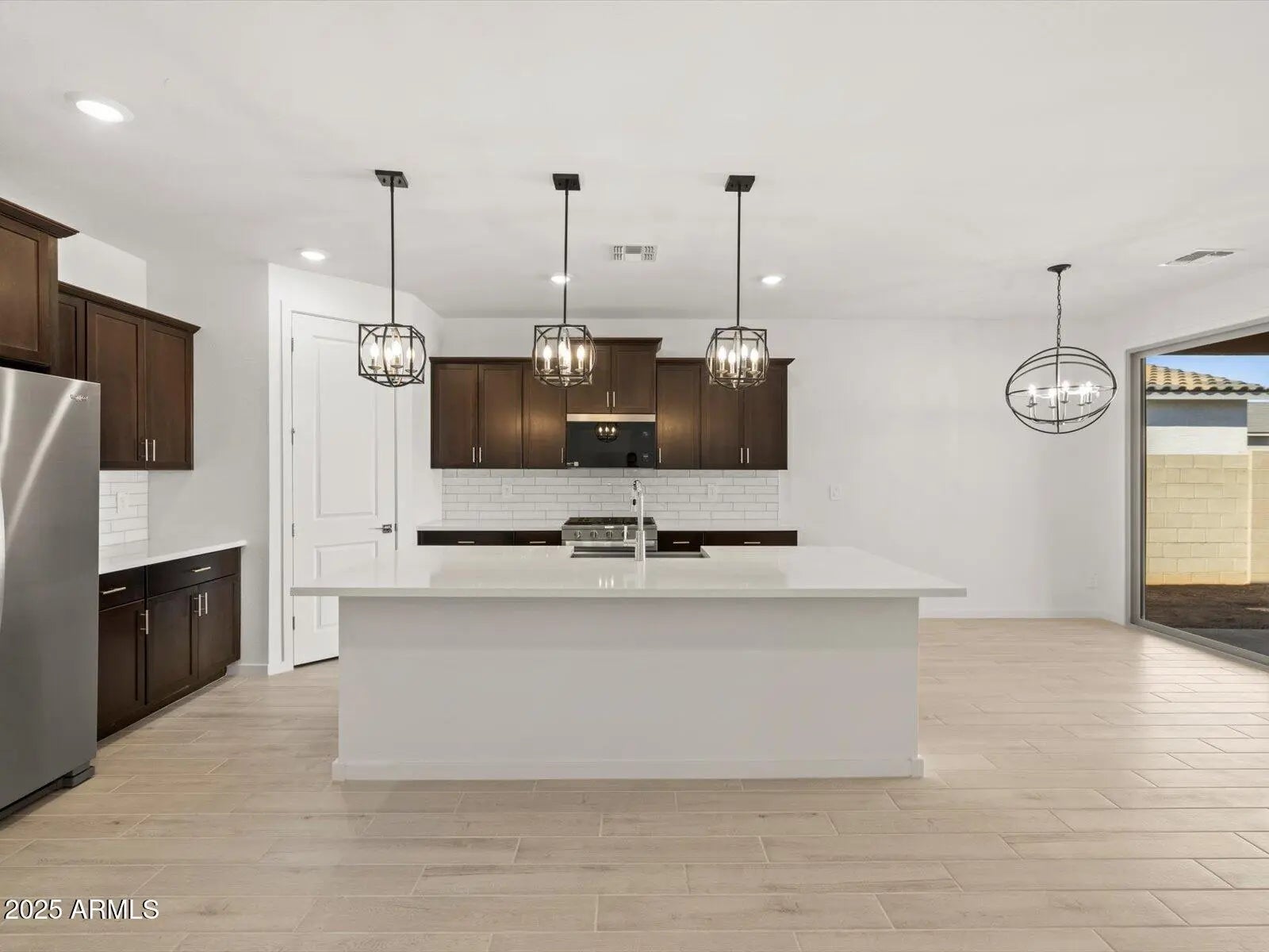 The Arlo boasts a thoughtfully designed single-story layout with 4 spacious bedrooms, 2 bathrooms, and a 2-car garage. Its open floorplan seamlessly connects the living, dining, and kitchen areas—ideal for entertaining guests or enjoying everyday moments with family. Whether you're hosting a gathering or savoring a quiet evening in, The Arlo offers the perfect blend of style, space, and functionality. This home has umber cabinets with marble-look white quartz countertops, backsplash, wood-look tile flooring with beige carpet! INCLUDED - washer, dryer, window blinds, refrigerator and MORE! Residents enjoy EXCLUSIVE resort-style amenities. Shopping, restaurants, entertainment nearby. Each home is built with innovative, energy-efficient features designed to help you ENJOY more SAVINGS!