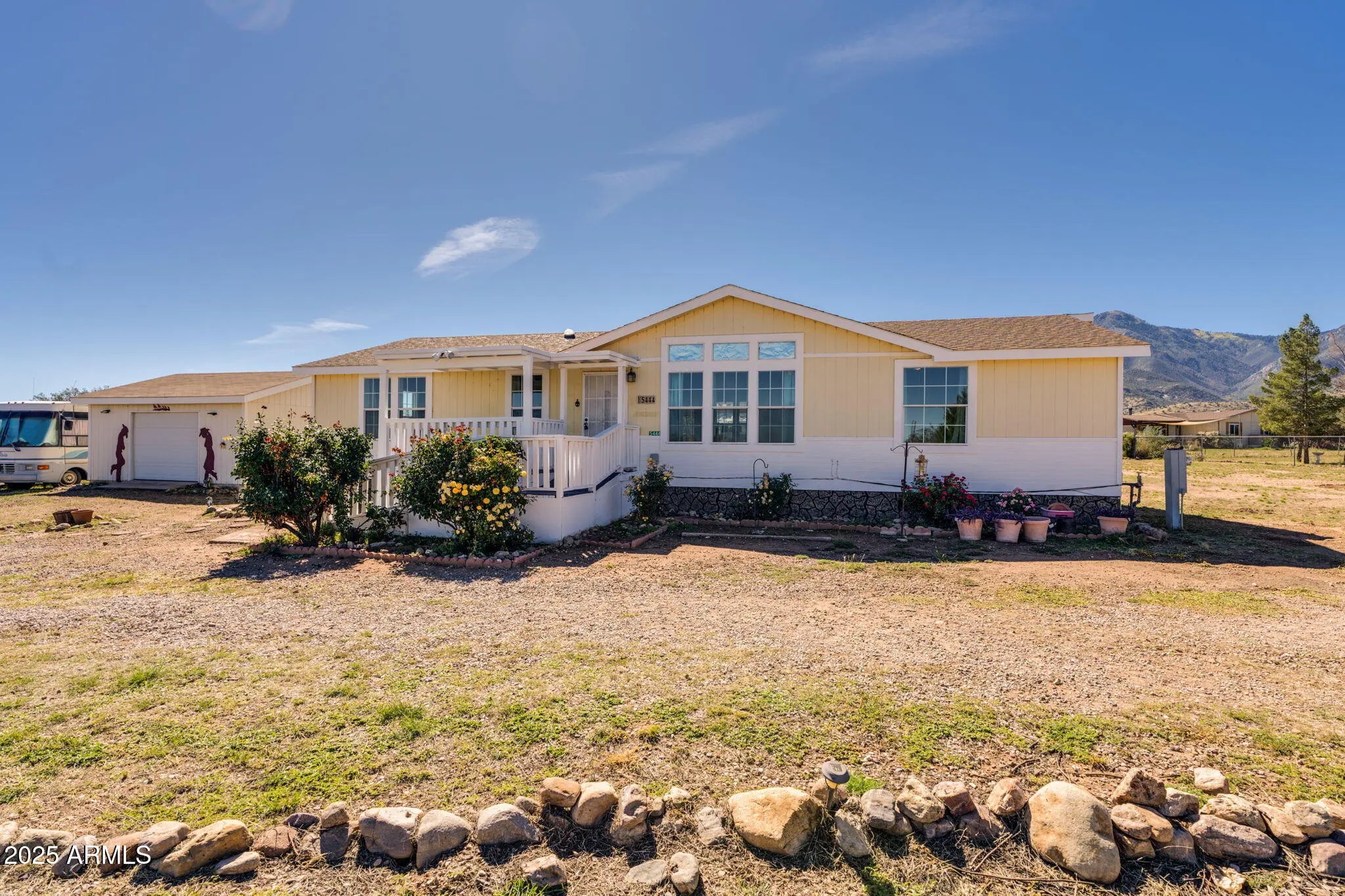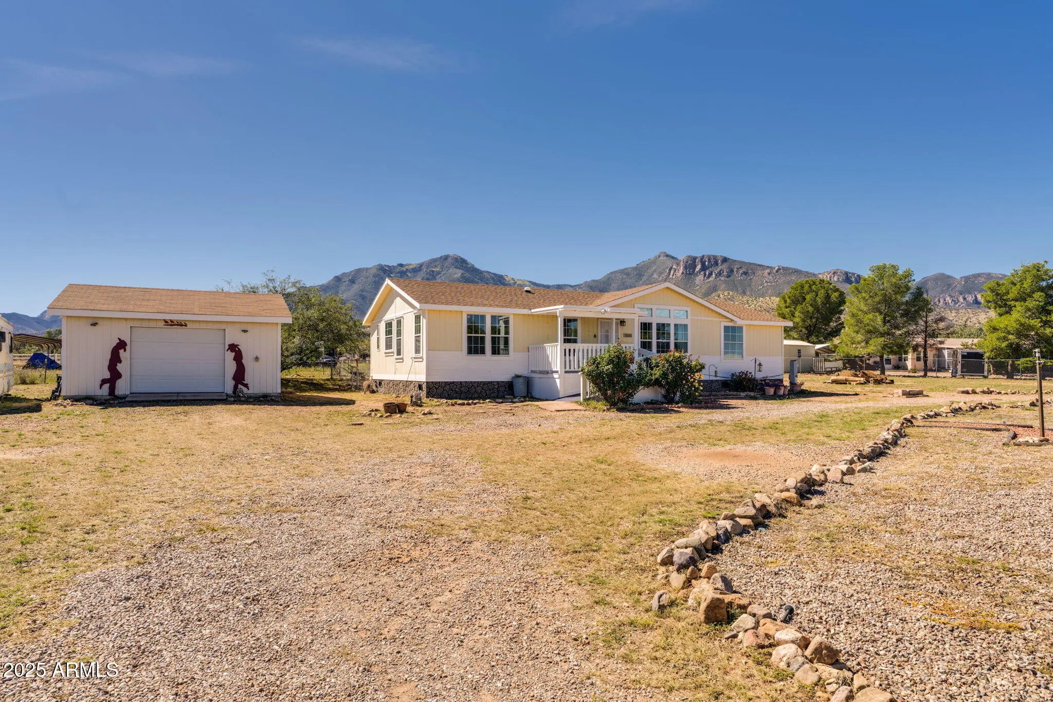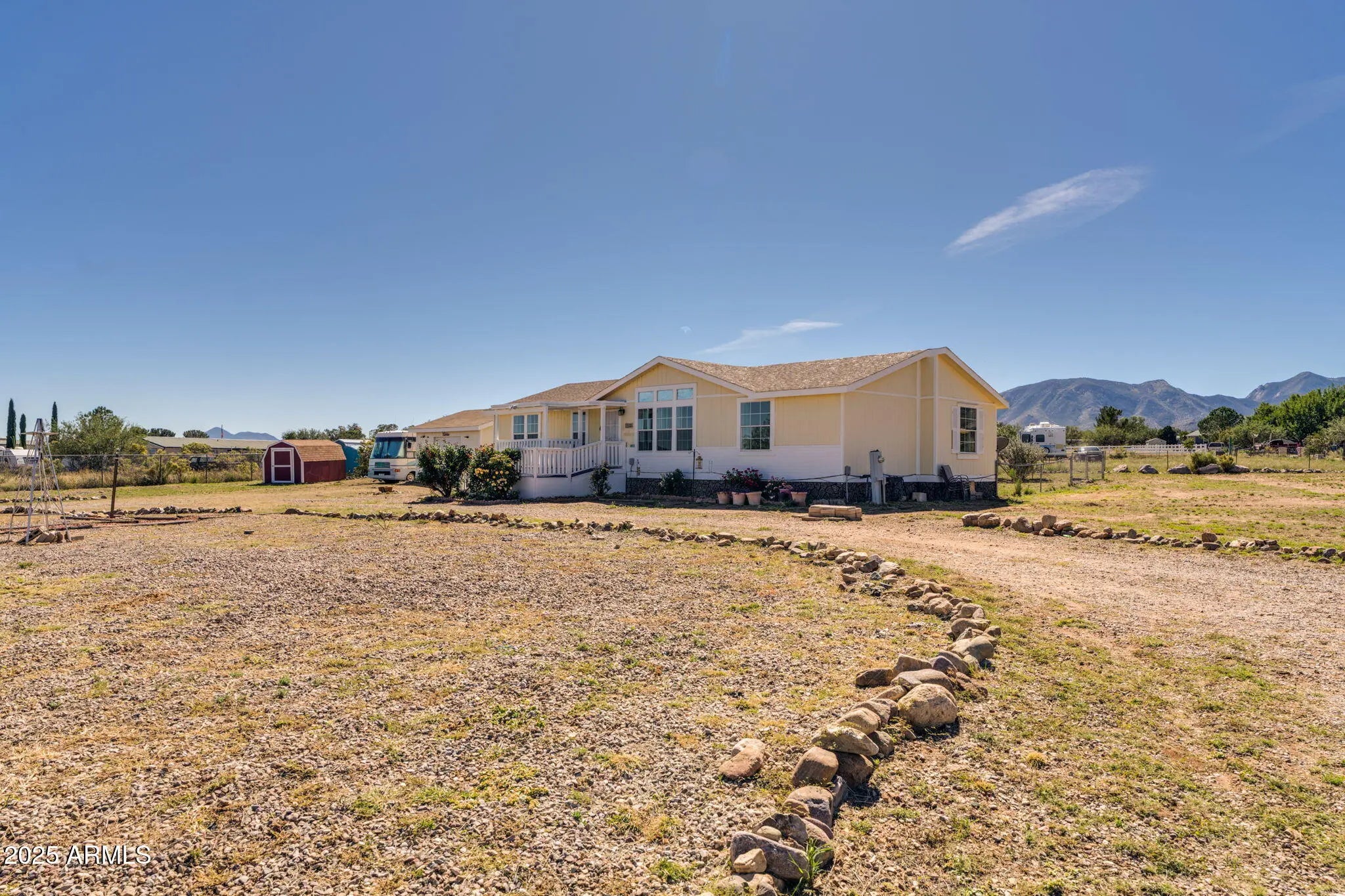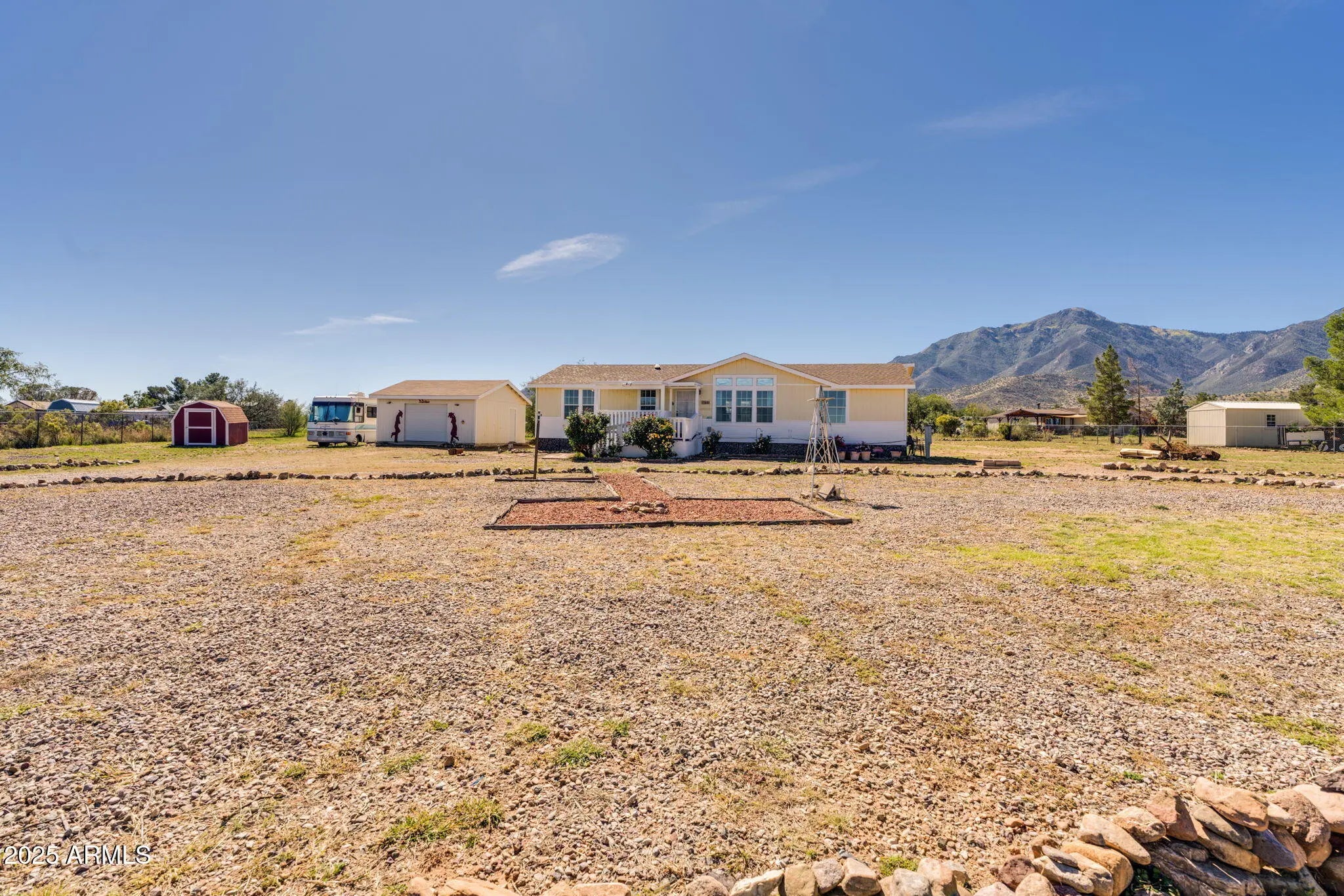 Welcome to your desert retreat! This beautifully updated 3-bed, 2-bath home offers stunning mountain views and the peaceful lifestyle you've been looking for. Situated on a large lot in a quiet neighborhood, there's plenty of room to relax and enjoy the Southern Arizona sunshine. Inside, you'll find no carpet throughout, creating a clean and modern feel that's easy to maintain. The spacious layout is perfect for entertaining or unwinding after a long day. Step outside to enjoy the wide-open space—ideal for gardening, gatherings, or simply soaking in the views. A detached garage provides ample parking and storage, while the RV lot makes it easy to bring your adventures home.