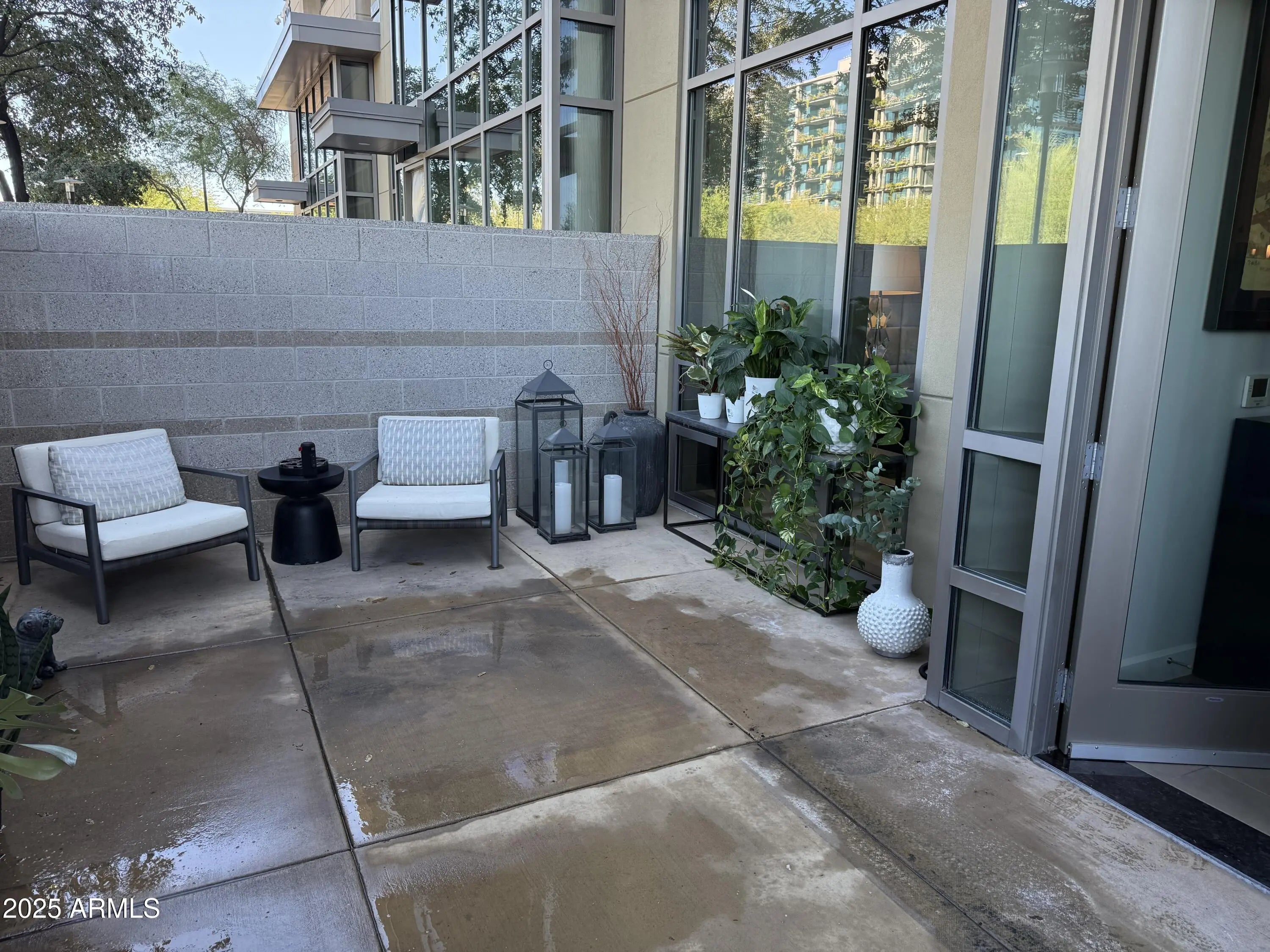 Luxury living meets effortless convenience at this ground-floor Kierland Commons loft. Featuring private street-level access, soaring ceilings, and expansive glass walls, this residence offers a seamless blend of indoor/outdoor living with a spacious patio complete with turf and seating. The gourmet kitchen has been elevated with stunning Taj Mahal countertops, stainless steel appliances, and bar seating, perfect for entertaining. The open layout flows into a serene primary suite with a spa-inspired bath and generous closet space. Enjoy resort-style amenities including 24-hour concierge, fitness center, heated pool, rooftop lounge, and secure gated parking. Water, Trash, Wi-Fi, and one assigned garage space are included. Steps from Scottsdale's premier shopping, dining & entertainment.