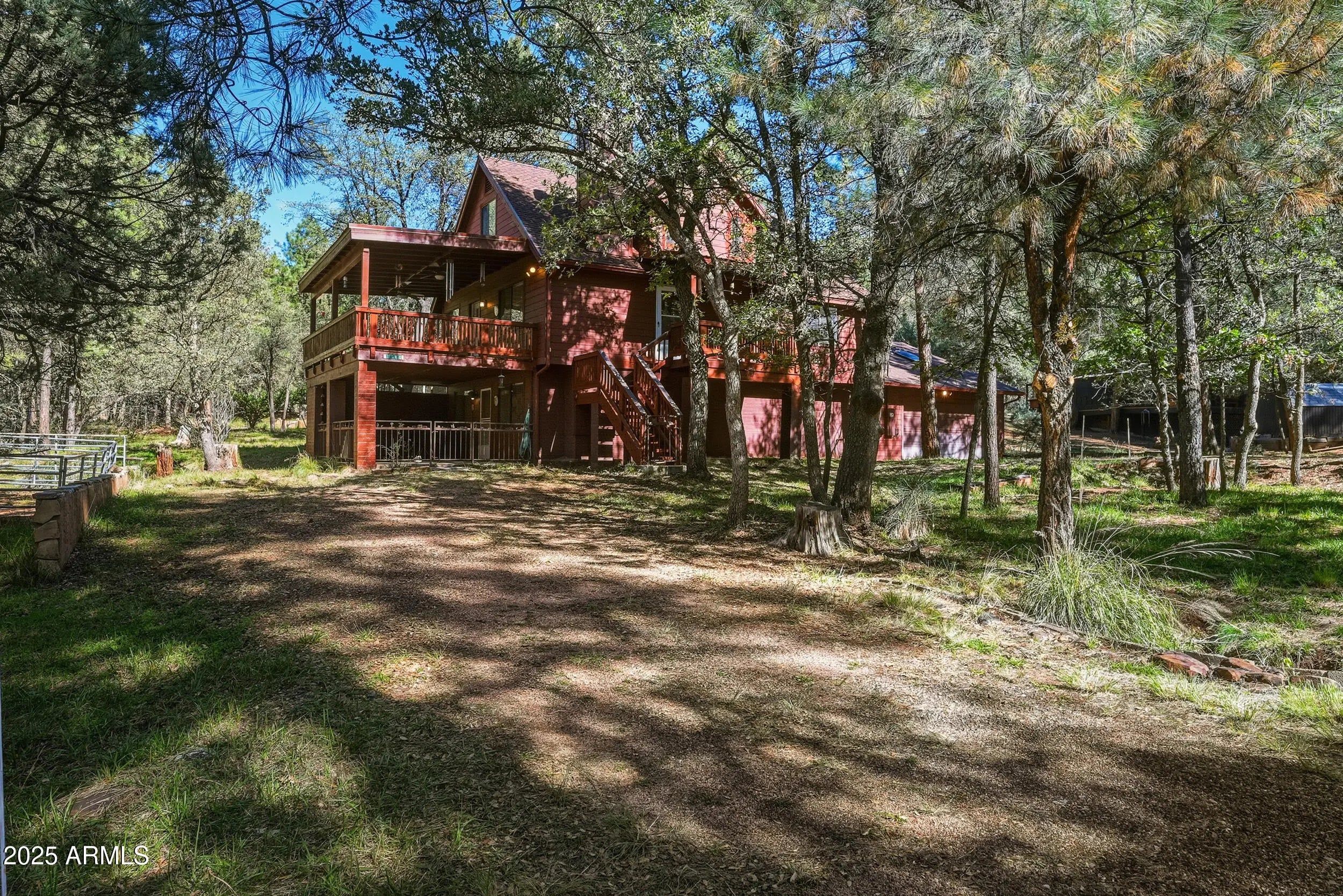Nestled beneath the towering Ponderosa pines in picturesque Strawberry, AZ, this exceptional property offers the rare combination of a cozy cabin feel, modern comfort, and unparalleled preparedness. This is more than a home—it's a self-sufficient, multi-generational retreat where tranquility meets capability. Step inside to discover a spacious 4-bedroom, 2-bathroom home featuring a charming loft, providing plenty of room for family and guests. The interior offers that quintessential mountain cabin warmth while boasting modern amenities for comfortable living. The true value extends far beyond the main house. Located on a flat, usable 0.36-acre horse property, the land is perfect for enjoying the cool mountain air and the surrounding natural beauty. With Tonto National Forest practically at your doorstep, you have immediate access to endless horseback riding trails, hiking, and abundant wildlife viewing. For the practical-minded, this property is truly "prepper ready." It features a robust suite of self-sufficiency upgrades, including a 2,200-gallon in-line water storage tank with a pump, a 250+ gallon fuel storage tank in a fire-resistant building, and a dedicated generator-ready setup. The oversized, mechanic's dream 977 sq ft, 4+ car garage sets this home apart. It features a rare 3' x 6' x 5' deep grease pit, making it an ideal space for servicing vehicles, working on hobbies, or setting up a major workshop. Enjoy the extreme quiet of the neighborhood from your large covered patio or expansive decks. This is the perfect sanctuary for full-time living, a peaceful family compound, or the ultimate prepared vacation escape.