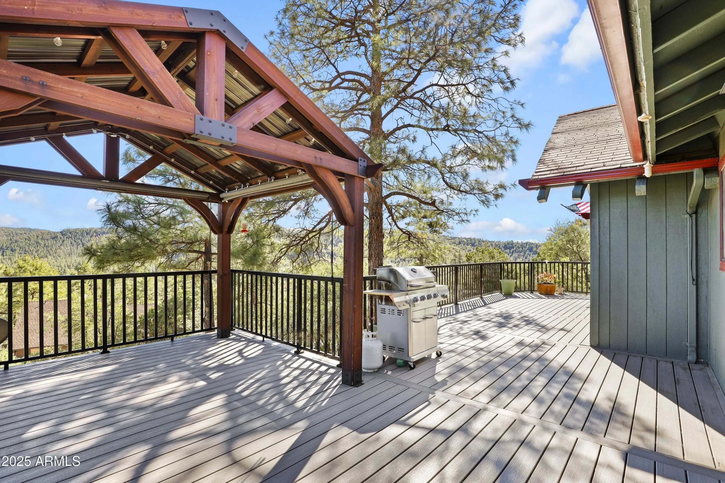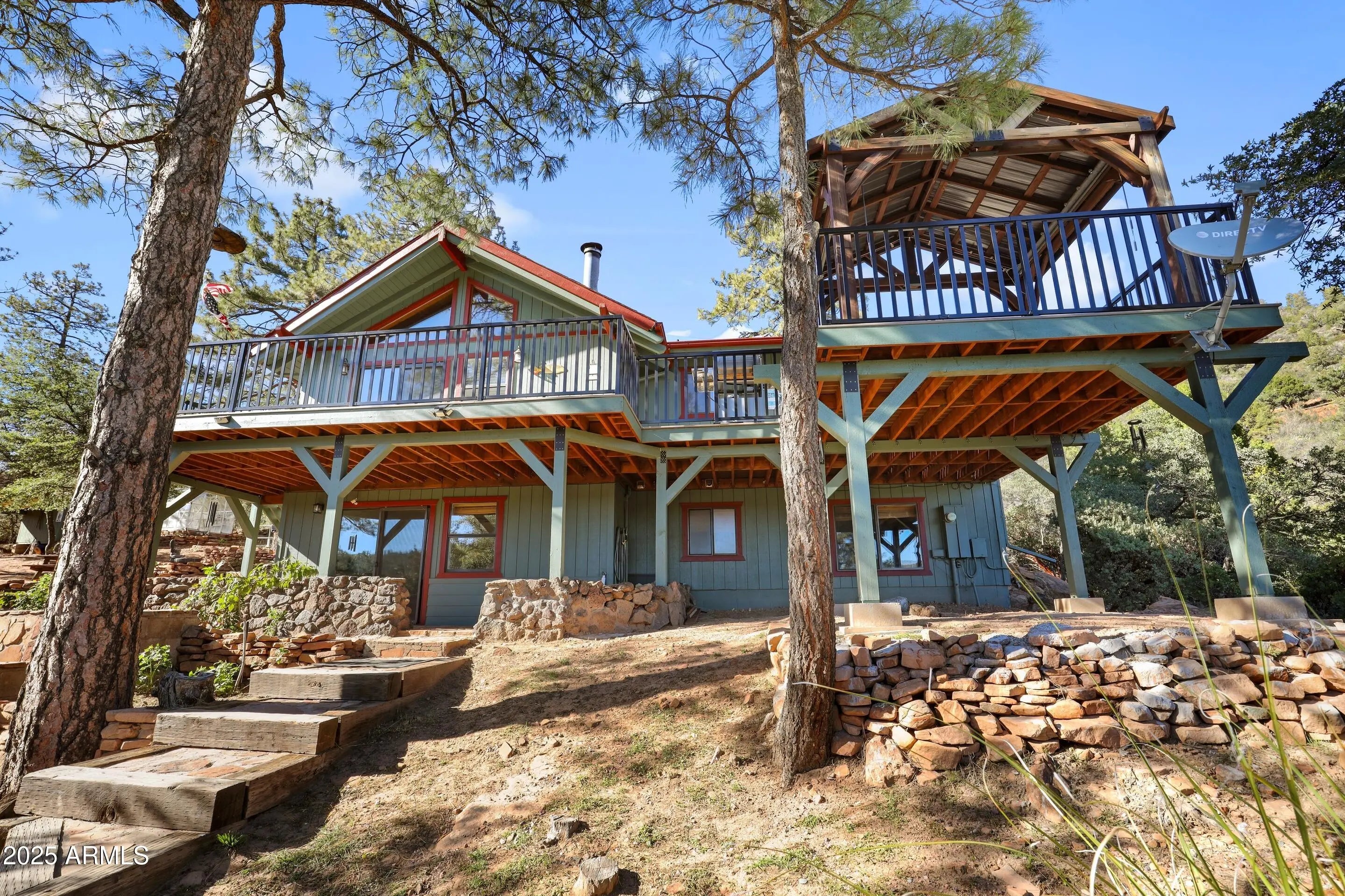 Take in sweeping views of Strawberry Mountain from nearly every room of this 4-bed, 3-bath chalet-style cabin. With 2,526 sq ft of thoughtfully designed living space, this multi-level home has versatility and function. The open living room features a fireplace and a remodeled kitchen with hickory cabinets & bay window. The vaulted t & g ceilings, wooden accent walls and large wooden beams give a true cabin feel. The main level has a primary bedroom with ensuite bathroom and two additional bedrooms with wooden wall accents. The primary and one additional bedroom both have deck access. Both upstairs bathrooms have been tastefully updated, and flooring updated to luxury vinyl plank. The walkout lower level features another primary suite with bathroom and walk-in closet, a spacious family room with a pellet stove, a versatile office area with a large walk-in closet, and a separate laundry/utility room. Outdoor living shines here with a newly built Trex deck and gazebo highlighting the views. Enjoy terraced landscaping, firepit, horseshoe pit and gardeners will love the greenhouse, separate grow room, and chicken coop, while the 20x30 metal RV garage provides ample storage for recreational vehicles and tools. Additional features include three efficient mini-split units, fresh interior & exterior paint completed within the last few years. Experience mountain living at its best... peaceful, private, and full of possibilities!