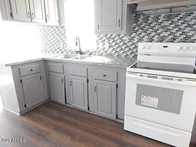 Eat in kitchen with built-in stainless appliances, custom cabinetry and granite counter tops. Huge living room with spacious master bedroom on the right that includes dual sinks and soaking tub. Attractive wood look floors in the living room. Bedrooms include walk in closets. This home is across the street from the community center, pool and park. Property is sold ''as-is, where-is'' with no reps or warranties. Seller will provide no CLUES or SPDS rpts. Seller will not pay for any fees associated with HOA transfer. Buyer may choose own title company. Buyer will be responsible for all title and escrow fees. This property may qualify for Seller Financing (Vendee)