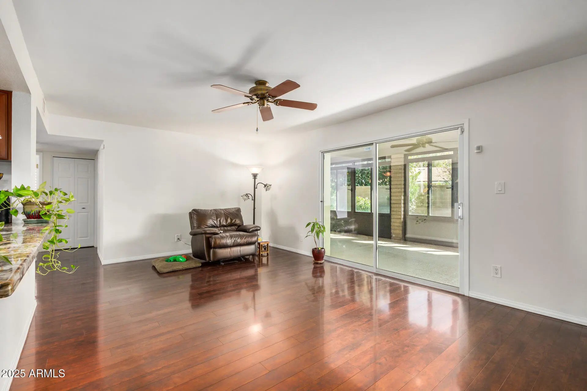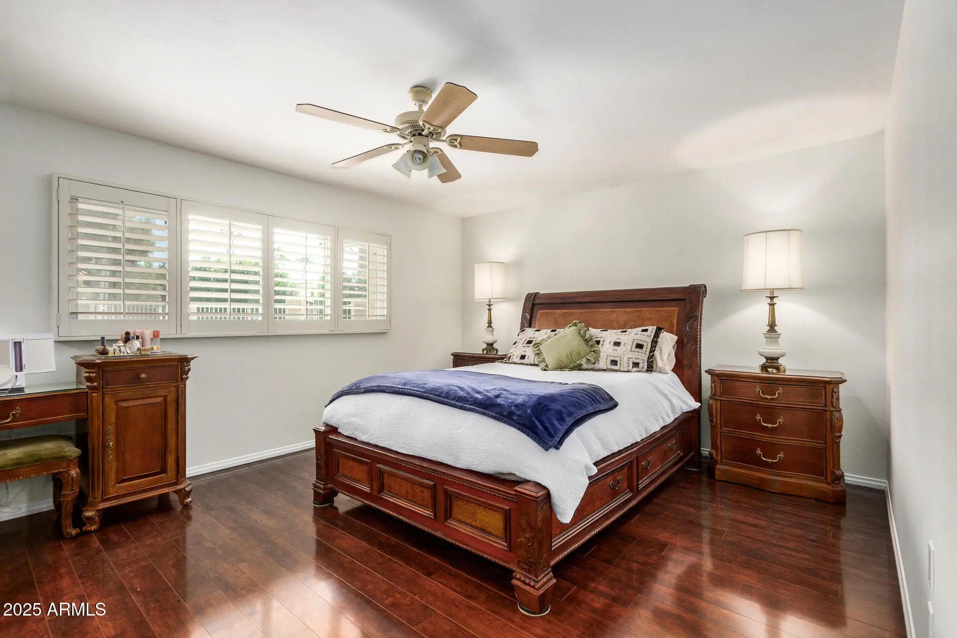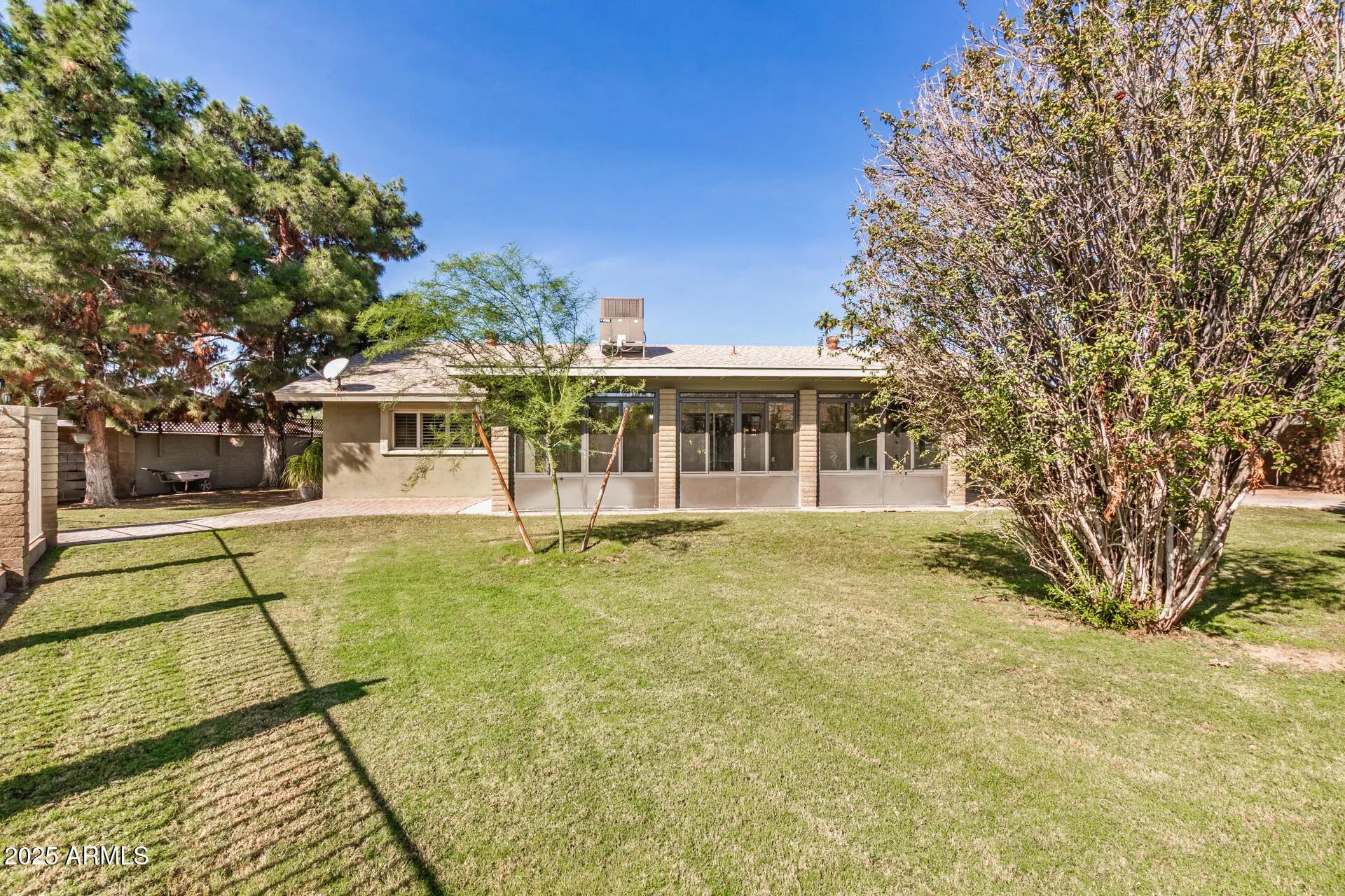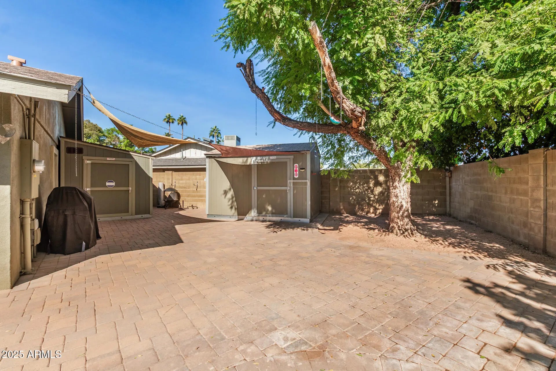 Beautiful home with pool on huge quarter acre lot, in a peaceful culdesac in Scottsdale! The cozy courtyard, 2-car garage & RV gates add to the charming curb appeal, inviting you to take a look inside. Fall in love with the bright and spacious living areas where you'll spend enchanting moments, showcasing wood flooring, abundant natural light & neutral paint. The impeccable kitchen boasts ample cabinetry, granite countertops, tile backsplash, built-in essentials & a pass-through window with a breakfast bar. The tranquil main retreat hosts a closet with mirrored doors and a private bathroom. Entertain guests and spend quiet evenings in the AZ room. Your private oasis is complete with plenty of sitting space with pavers, two storage sheds, a lush lawn & a sparkling pool to enjoy sunny days!