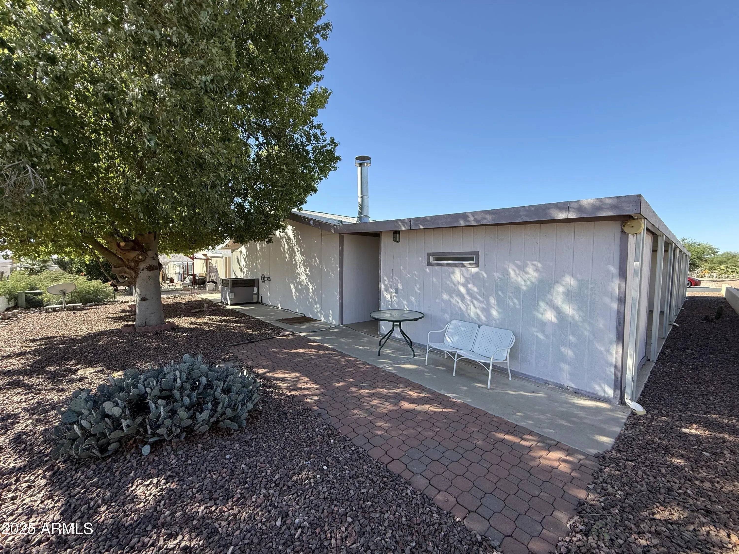 Looking for a larger furnished home with an open kitchen, a fireplace, inviting covered patio, large storage shed plus a 1 car garage where you own the lot? Well look no further, this is it!! What an amazing home, vaulted ceilings, split floorplan, wood fireplace, open kitchen, you name it! Kitchen has lots of counter space, breakfast bar and new refrigerator. Inside laundry room has newer front loading washer & dryer. Separate living and family rooms with dining just off the kitchen, built-in work space with beautiful stained glass windows above. Master bedroom has a newer adjustable queen bed, master bath has a separate tub & shower with new fixtures. New hot water heater installed Nov 2025. There's even a programmable doorbell! Don't miss this great home in Florence Gardens!