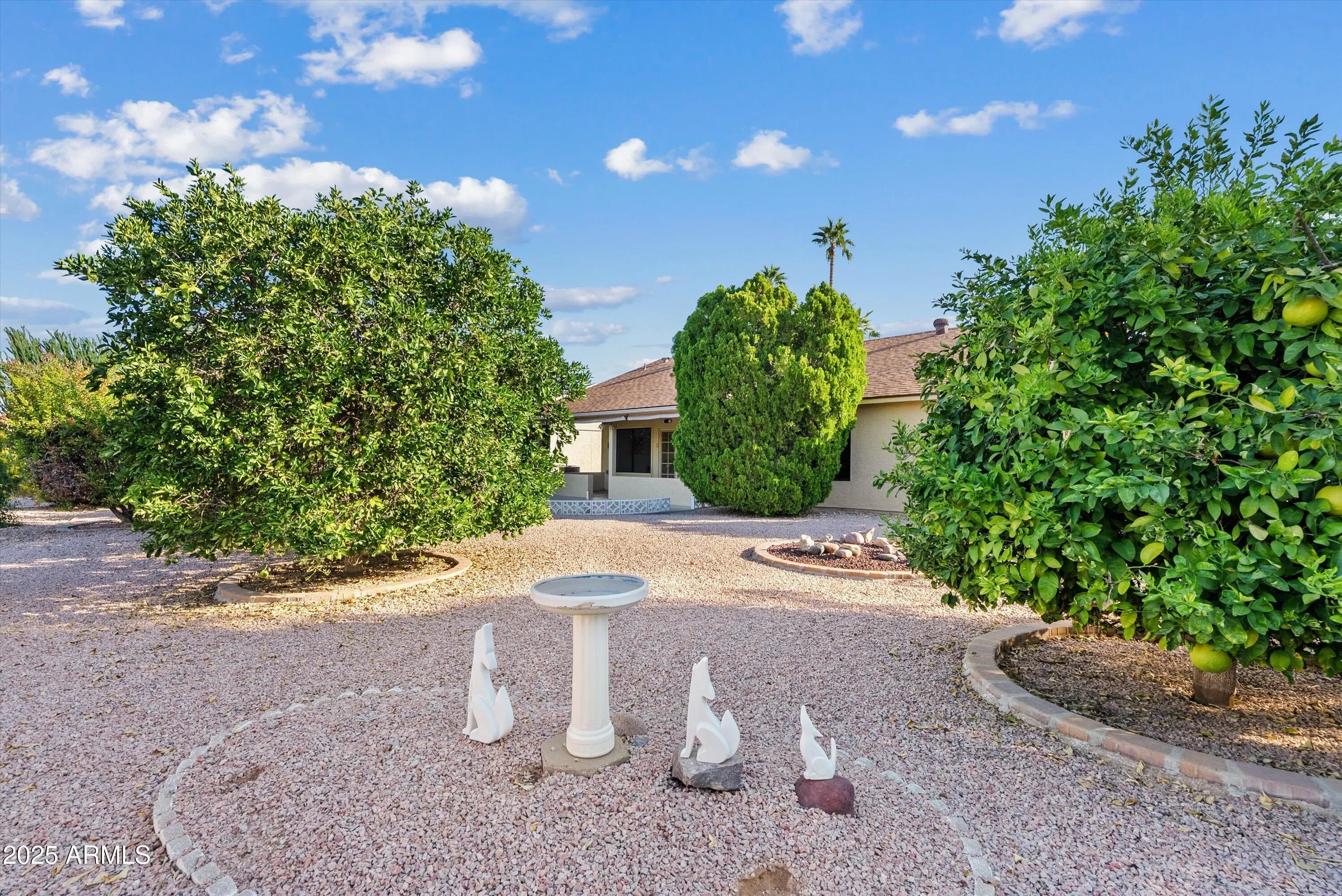 Located in the highly sought-after 55+ community of Fountain of the Sun, this 2-bedroom, 2-bathroom home offers a comfortable layout and low-maintenance living. Enjoy the convenience of a 24-hour guarded gate and access to an abundance of community amenities designed for active adults. Residents can take advantage of the golf course, clubhouse, fitness center, swimming pool, pickleball and shuffleboard courts, and a wide variety of clubs and social activities throughout the year. The home features an open floor plan with a bright kitchen, spacious living and dining areas, and a private primary suite. The backyard offers plenty of space to relax or entertain with easy-care landscaping—perfect for enjoying Arizona's mild winters. Fountain of the Sun provides an exceptional lifestyle with resort-style amenities, a secure environment, and a welcoming community atmosphere.