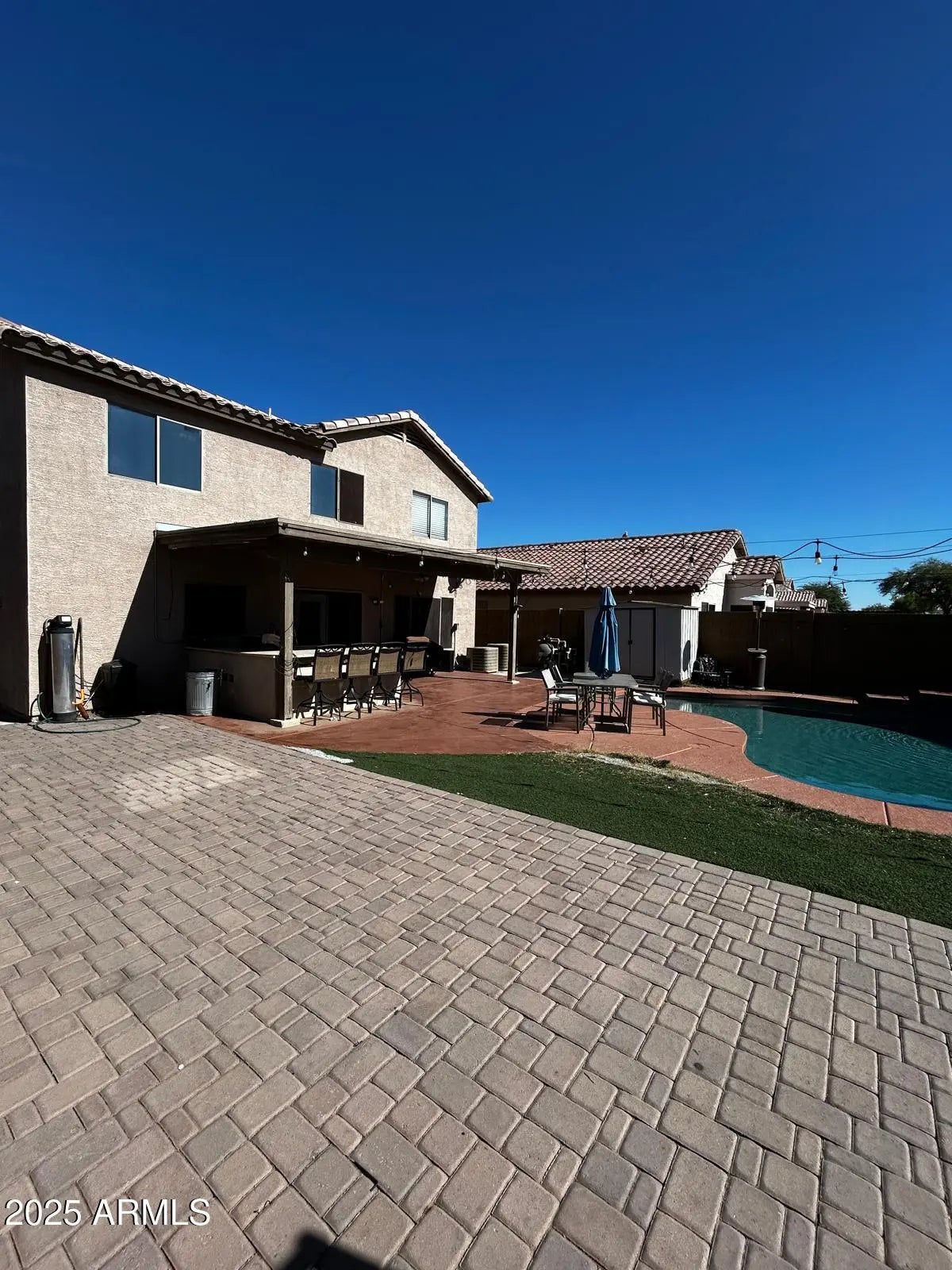 Family two-story home in Phoenix just down the street from school. Backyard features a covered patio, firepit, and sparkling PebbleTec pool. Store your pool supplies and yard tools in the backyard shed. RV gate and pad for convenient parking. Vaulted ceilings in formal living and dining rooms and custom color palette throughout. Wood floors in upper level master suite and secondary bedrooms. Ceiling fans in every room. single sink vanity. Kitchen is complete with granite and custom cabinets. Close to all major valley freeways