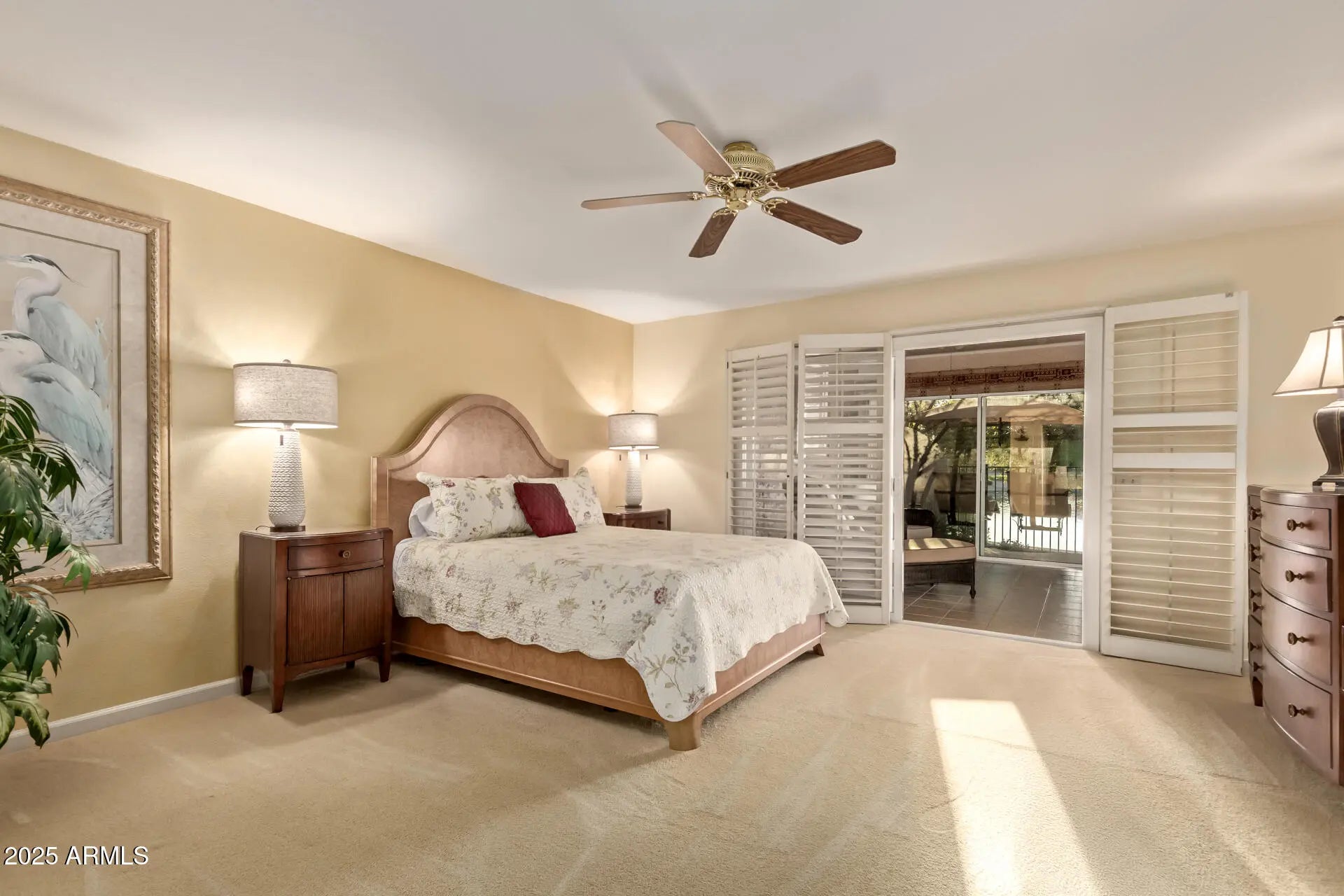 BREATHTAKING GOLF COURSE & WATER VIEWS await! Walk up the tasteful, BRICK PAVERED DRIVEWAY that leads you to lavish, DOUBLE WROUGHT IRON SECURITY DOORS where you are met w/timeless elegance to include vaulted, beamed ceiling, plantation shutters & updated kitchen/baths. A true ENTERTAINER'S PARADISE w/PREMIUM finishes & SMART UPGRADES thru/out. Step outside to the INVITING covered patio w/ TRAVERTINE surfaces & LUSH LANDSCAPE on a NEWER DRIP SYSTEM, a PEBBLETEC DIVING POOL, custom TRELLISES, high-end MISTING SYSTEM & ELECTRIC BLINDS all overlooking the 13th GREEN of Cottonwood golf COURSE w/ LAKE VIEWS. NEWER WINDOWS, electric panel, R/O & NUVO WHOLE-HOME water system all for functional efficiency. NEWER water heater (2024) & NEWER HVAC (2022) complete the home. EVERY DETAIL DONE RIGHT! An adorable den, also w/sunroom access, adds versatility! The cozy sunroom extends your living space & opens to the entertainer's backyard, featuring covered patio w/misting system, sparkling blue pool, & view fence to take in the breathtaking surroundings. This home truly has it all!