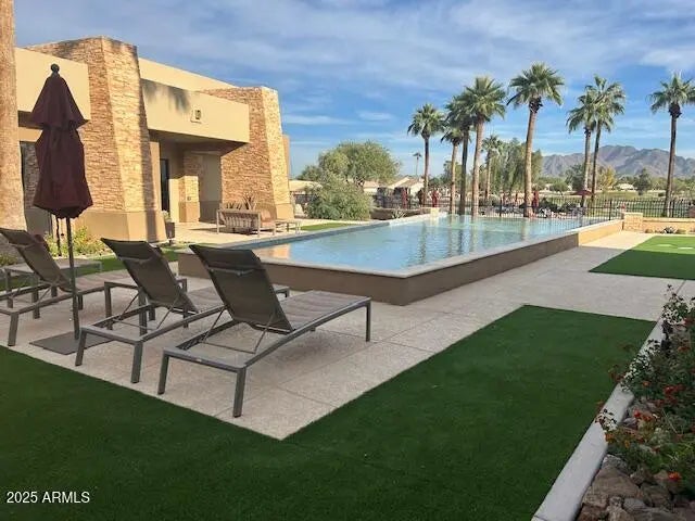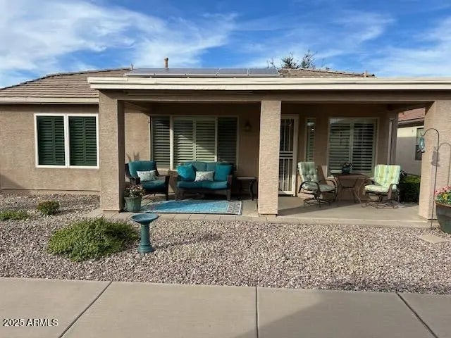 Experience resort-style living in Solera, Chandler's premier 55+ gated community nestled near the stunning San Tan Mountains. This beautiful home with OWNED SOLAR, split plan with 2 BEDROOMS, 2 BATHS, 2-CAR GARAGE WITH 4-FOOT EXTENSION. PLANTATION SHUTTERS THROUGHOUT, Granite countertops, R.O and soft water systems installed. Spacious storage throughout, including walk in closet in primary suite and double pantries. 2ND Bedroom doubles as a home workspace or office accommodates guests with a custom Murphy bed, utilizing space wisely. NORTH/SOUTH EXPOSURE! Enjoy exceptional amenities, including a heated pool, spa, private clubhouse, fitness center, tennis and pickleball courts, and an on-site restaurant. The Lone Tree Golf Club completes the charm of this vibrant, active adult community!