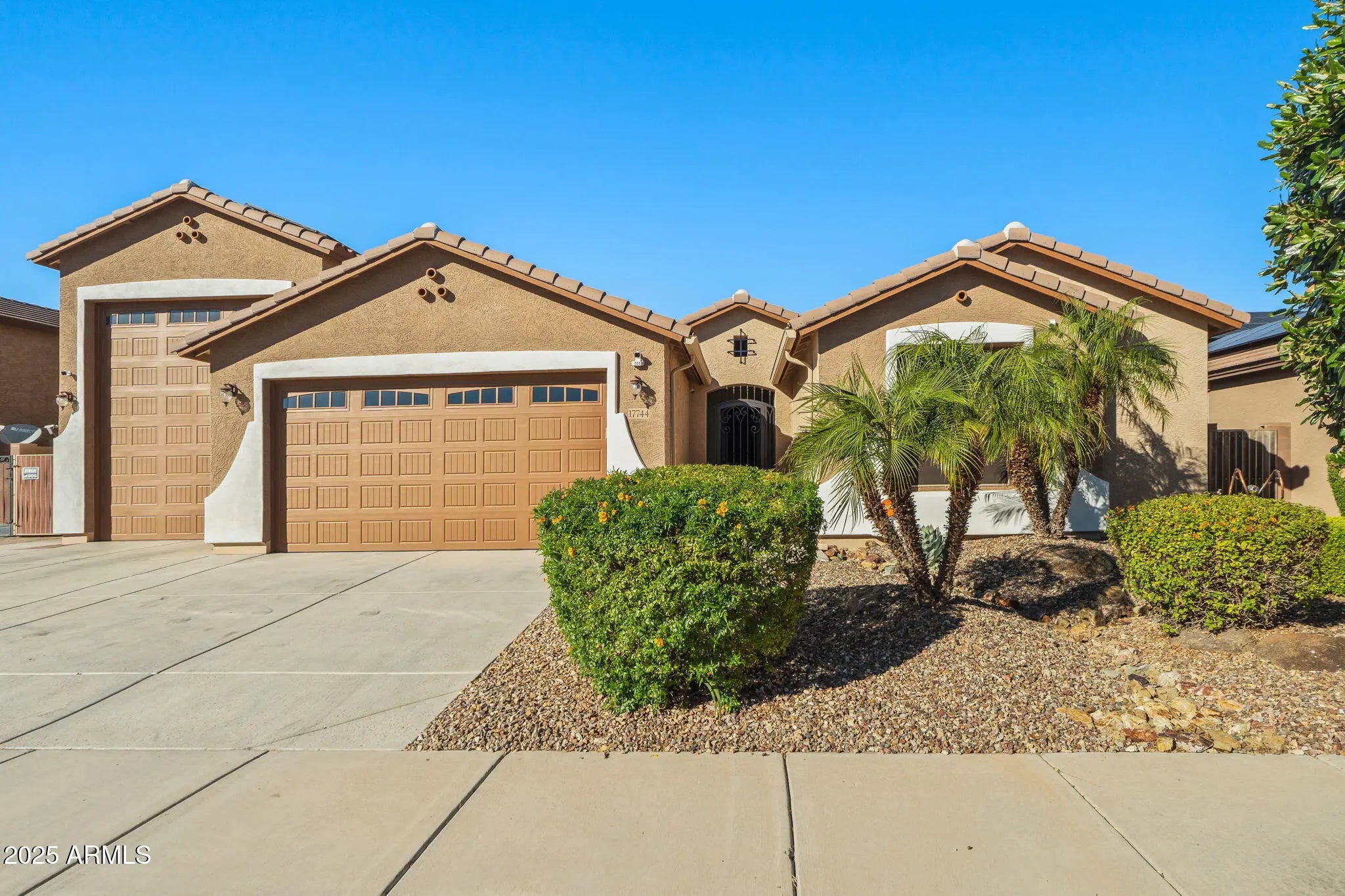 THIS IS THE ONE! BEAUTIFUL SINGLE LEVEL RV GARAGE HOME WITH PRIVATE COURTYARD AND A PLETHORA OF UPGRADES INSIDE AND OUT! BUYERS BONUS WITH SELLER PAYING OFF SOLAR AT CLOSING! GREAT ROOM OPEN FLOORPLAN WITH TILE FLOORING THROUGHOUT THE HOME. GORGEOUS CUSTOM STACK STONE WALL WITH FIREPLACE! NEW CUSTOM CHEF'S KITCHEN EQUIPPED WITH GE CAFE APPLIANCES, (6) BURNER CAFE GAS COOKTOP, BUILT-IN REFRIGERATOR, BUILT-IN WALL OVEN/MICROWAVE COMBO! CUSTOM SOFT CLOSE CABINETS, BACKSPLASH AND GORGEOUS UPGRADED CALCUTTA QUARTZ COUNTERTOPS! WAIT THERE'S MUCH MORE! NEW PRIMARY BATHROOM WITH A SPA LIKE WALK-IN TILED SHOWER, HIS AND HER SINKS, POP-OUT MIRRORS AND QUARTZ COUNTERTOPS. SPACIOUS PRIMARY SUITE IS EQUIPPED WITH A CUSTOM CLOSET! RELAX AND ENJOY OUTDOOR LIVING IN YOUR REFRESHING POOL (HEATED) OR UNDER THE MISTERS! SO MUCH SPACE FOR ENTERTAINING FAMILY AND FRIENDS! CHEF'S KITCHEN INSIDE AND YOUR OUTDOOR KITCHEN OUTBACK! HAVING AN RV GARAGE IS A BONUS AS IT PROVIDES MORE SPACE FOR YOUR RV, BOAT, CLASSIC CARS, HOBBIES AND MUCH MORE! NOTE: SELLER TO PAYOFF SOLAR AT CLOSING. BONUS AND INSTANT SAVINGS FOR THE BUYER! COME SEE FOR YOURSELF!