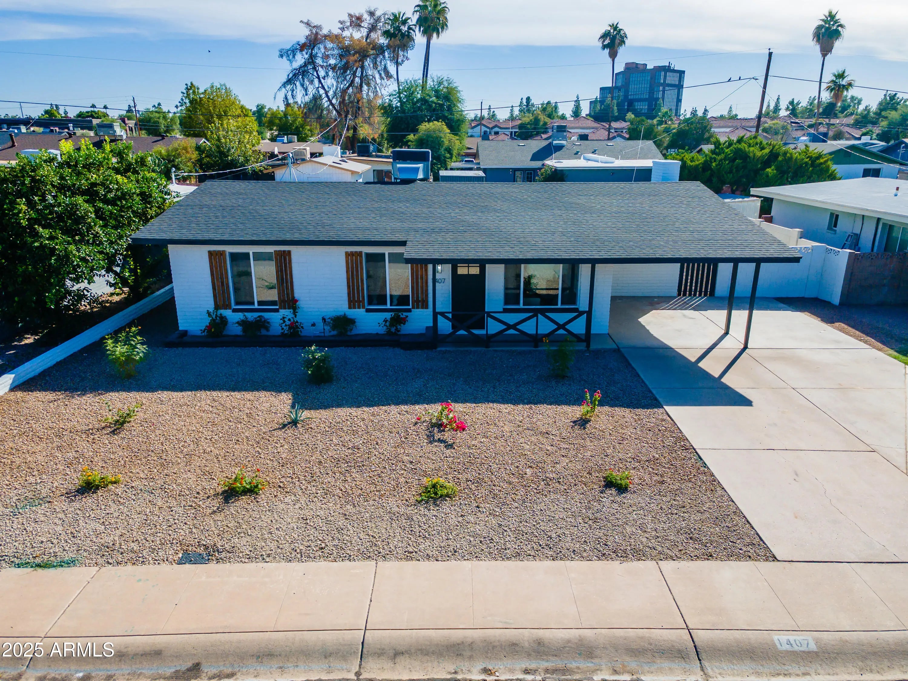 Welcome to this beautifully remodeled 3-bedroom, 2-bath home located in a highly desirable Tempe neighborhood! Step inside to find an open and inviting floor plan featuring modern finishes, dual pane windows, fresh paint, and updated flooring throughout. The fully renovated kitchen boasts sleek countertops, stainless steel appliances, and ample cabinetry—perfect for everyday living and entertaining. The spacious primary suite offers a private ensuite bath and generous closet space, while the additional bedrooms are ideal for guests, family, or a home office. Both bathrooms have been stylishly updated with contemporary fixtures and finishes. New roof, new electrical, new plumbing, new dual pane windows. Home is ready for it's new owner!