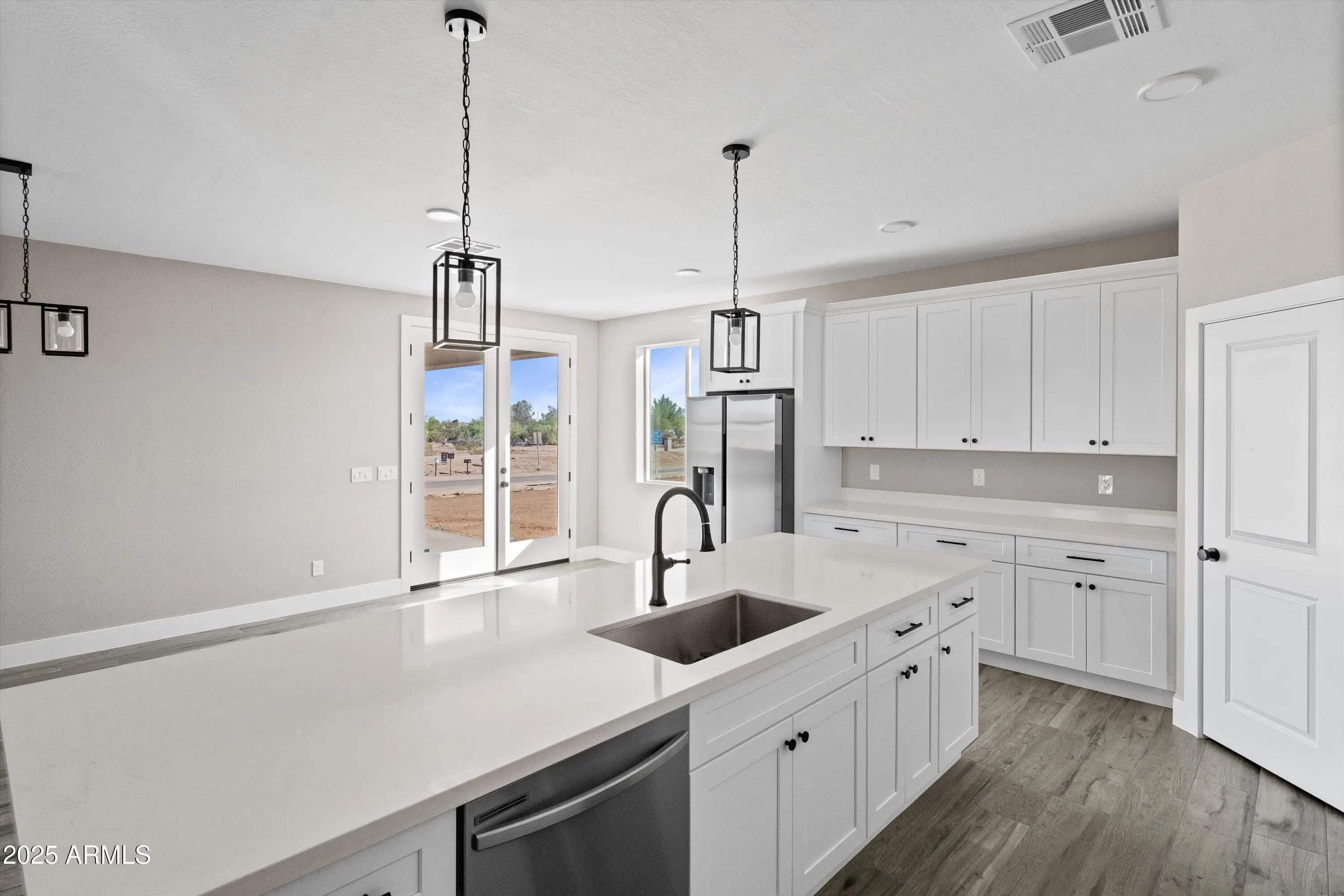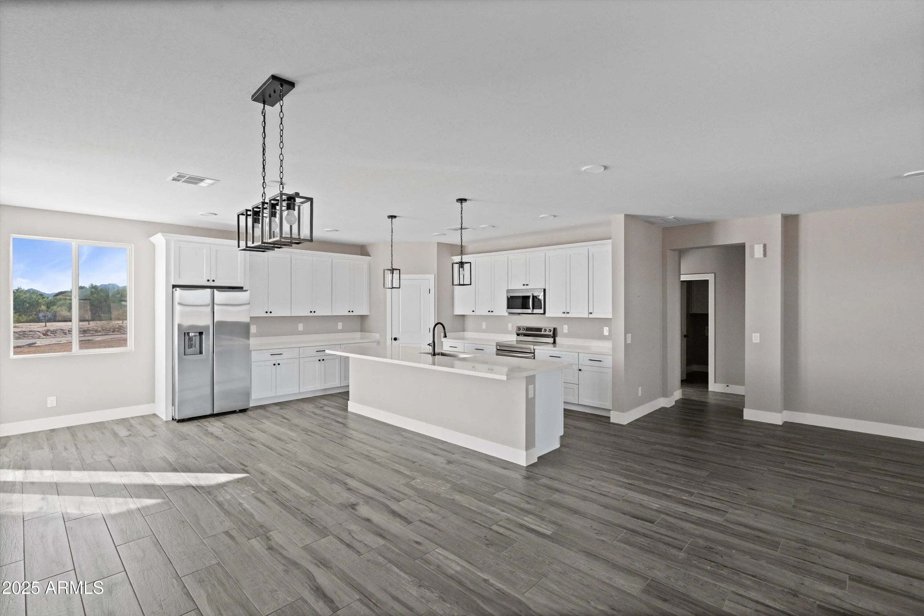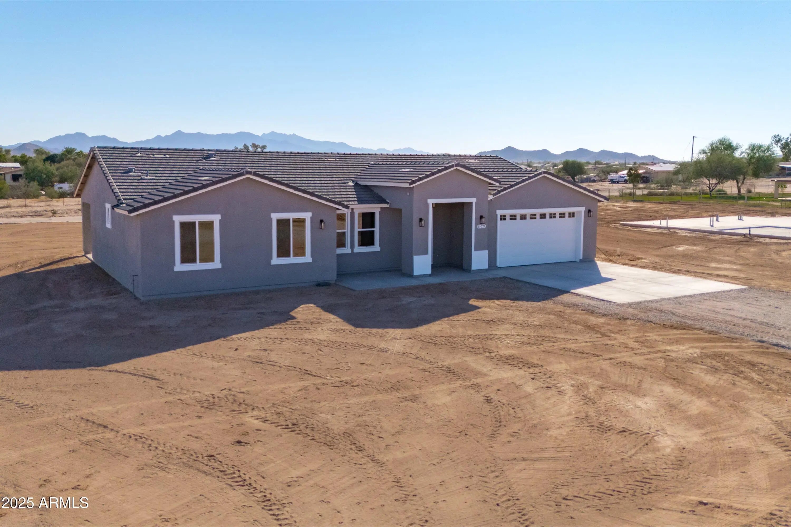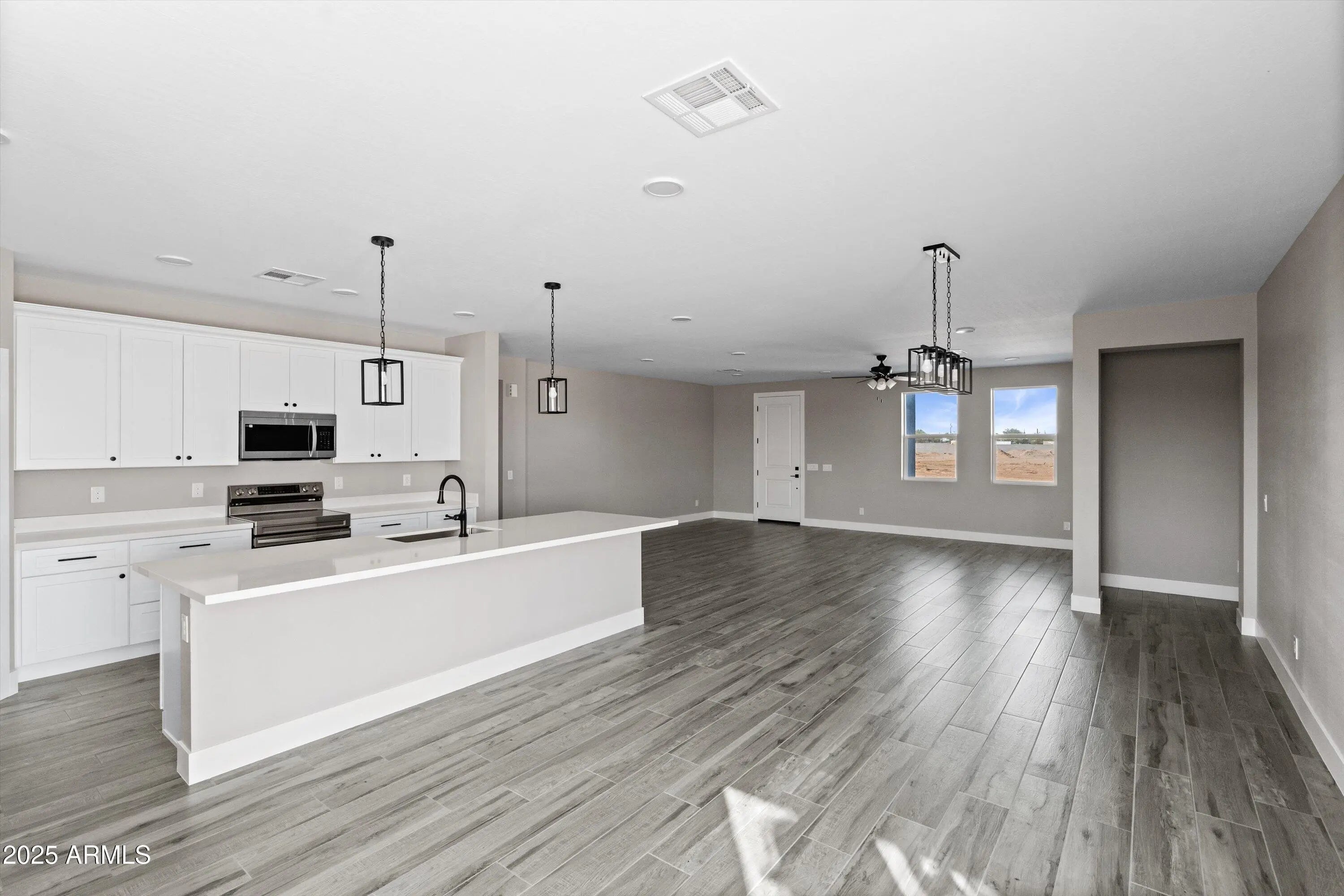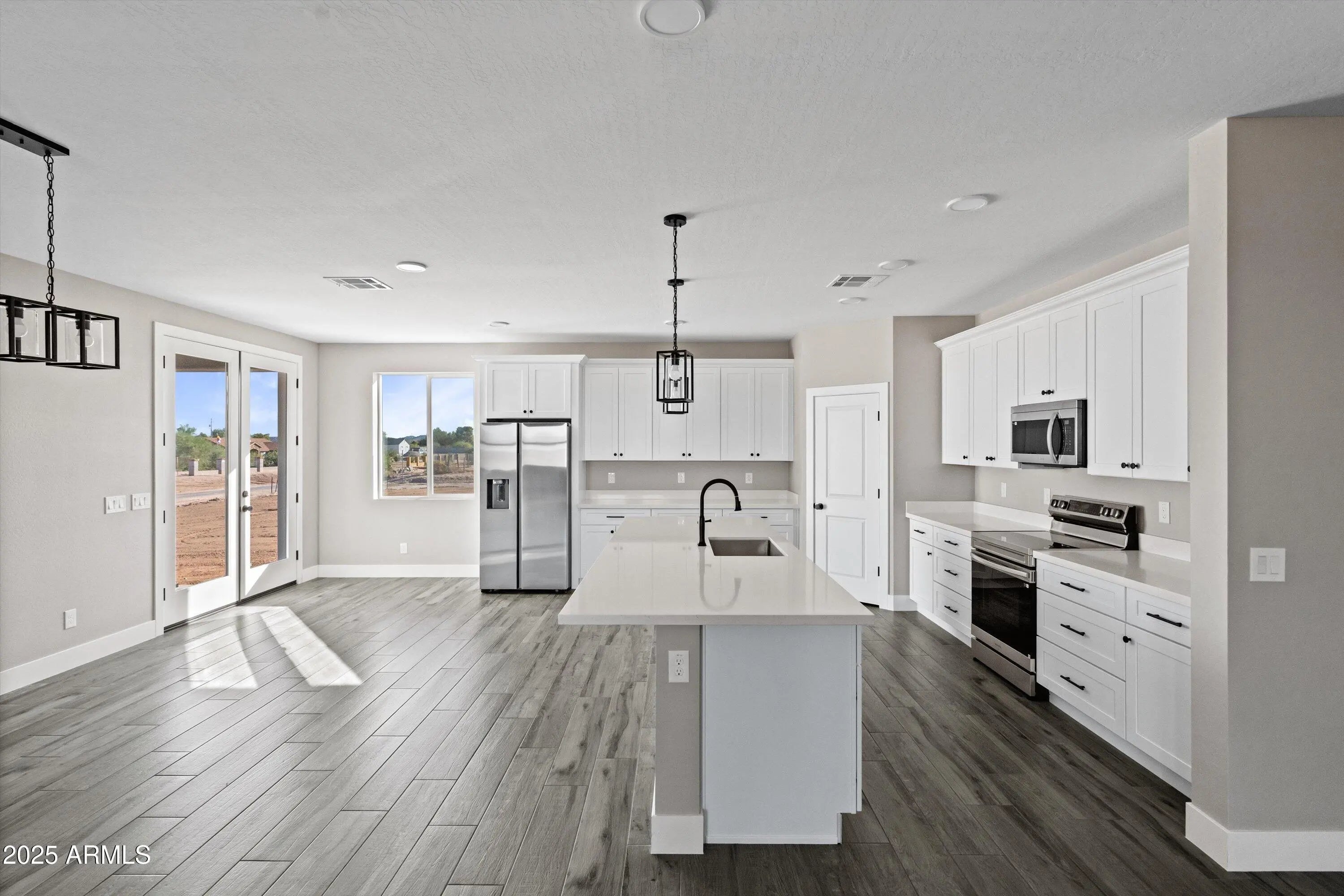 2025 BRAND NEW HOME BY CV HOMES! This beautiful 4 bedroom / 2.5 bath is on 0.8 acres of land with NO HOA and located on a corner! The home features an inviting and open floorplan with wood-look tile throughout the kitchen includes a large island, quartz countertops, stainless steel appliances, 42-inch cabinets, and a walk-in pantry. Top of the line black fixtures throughout the home, split floor plan, 9 ft ceilings etc. The double French doors lead to a covered patio to enjoy the mountain views with plenty of space for your RV and toys! This lot provides endless opportunities for your own landscape/design.
