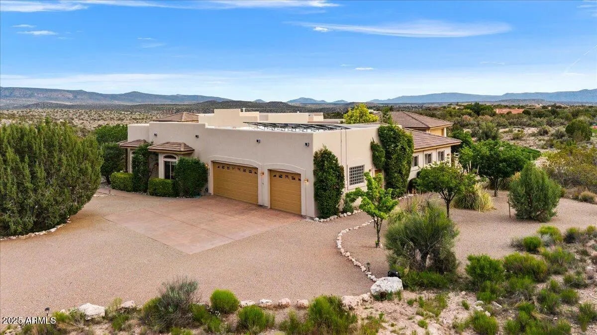 Experience breathtaking panoramas from this stunning custom home, perfectly perched on 2.515 acres, showcasing views of the National Forest at sunrise, moonrise & throughout the day. Thoughtfully designed for both relaxation & entertaining, this home offers an expansive covered patio & hot tub to soak in the serene landscape. The oversized 3-car garage is complemented by a large workshop plus separate RV garage, providing ample space for all your needs. Step into the center courtyard, surrounded by lush landscaping & fruit trees, creating a tranquil retreat. This home seamlessly blends nature & luxury, offering a rare opportunity to own an exceptional property in an awe-inspiring location. Don't miss the opportunity to make it yours, truly a must see!