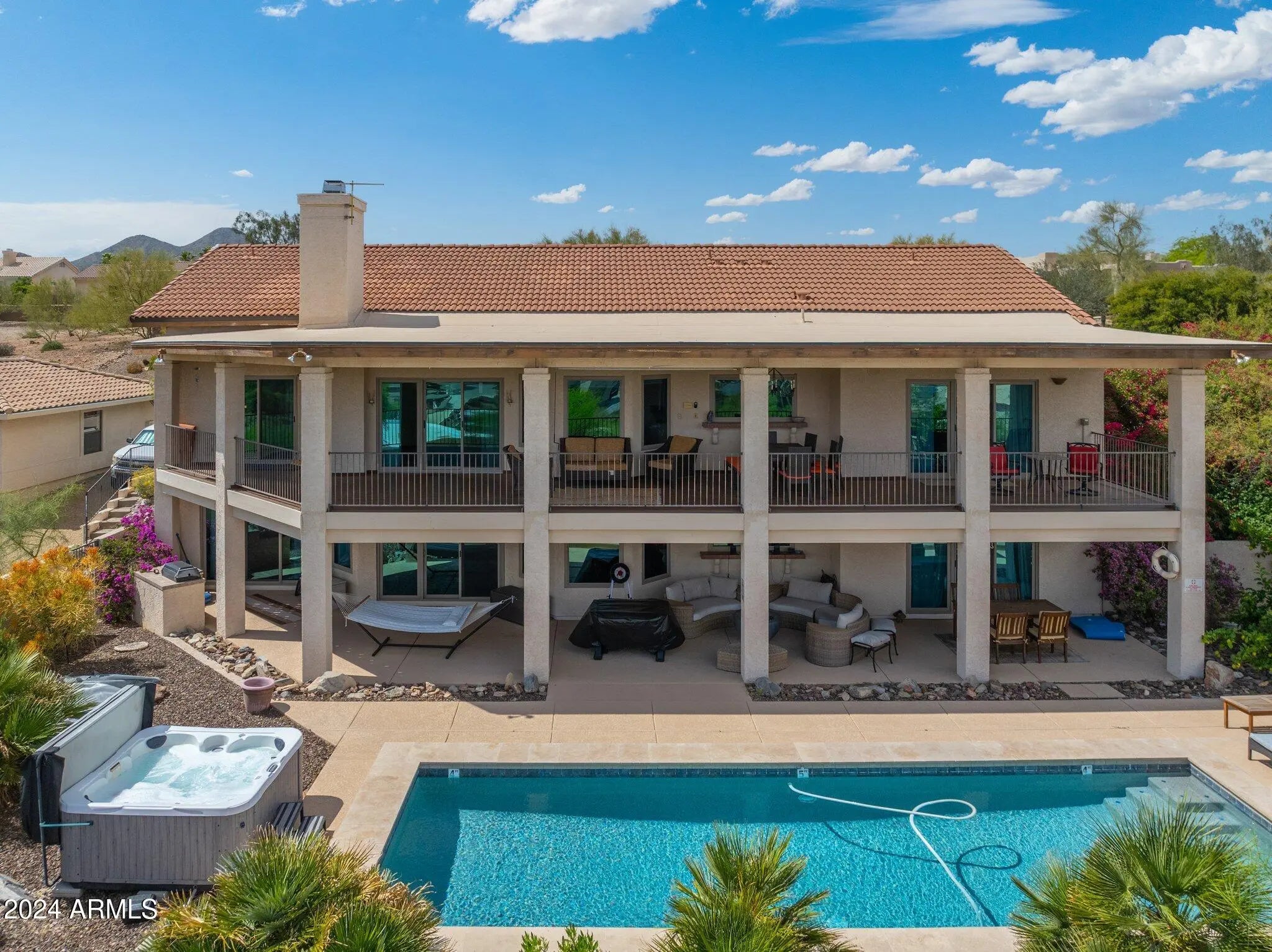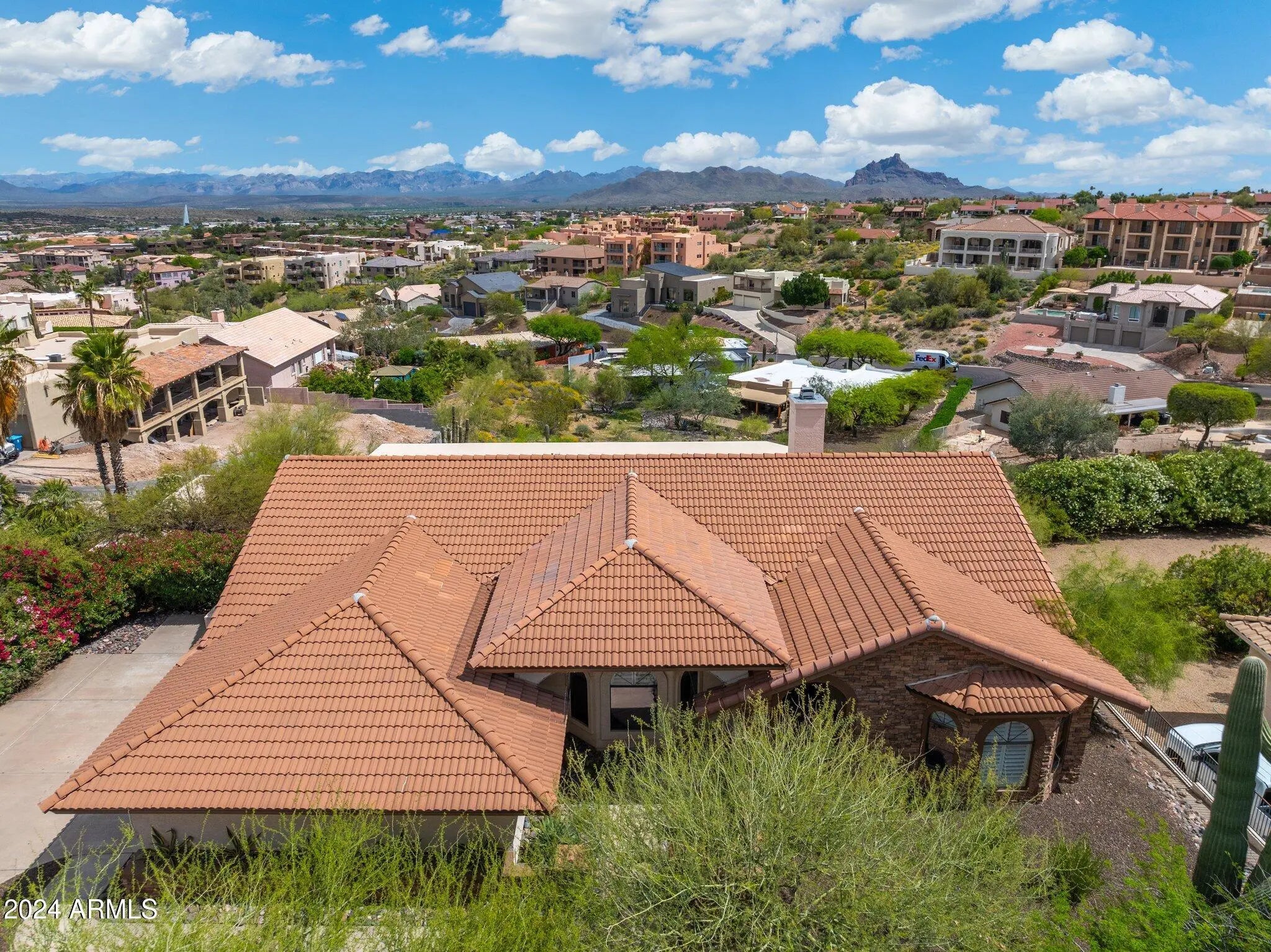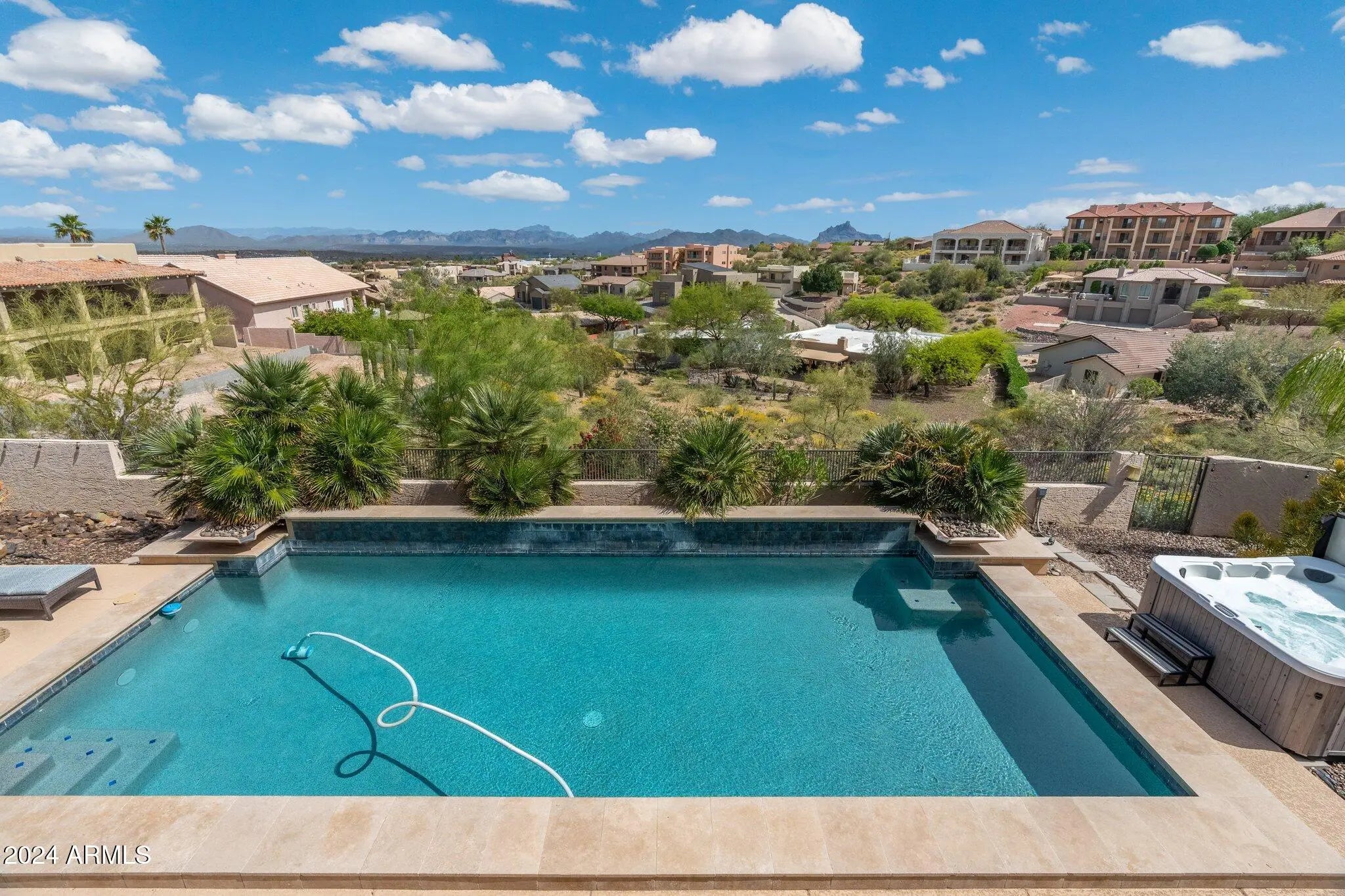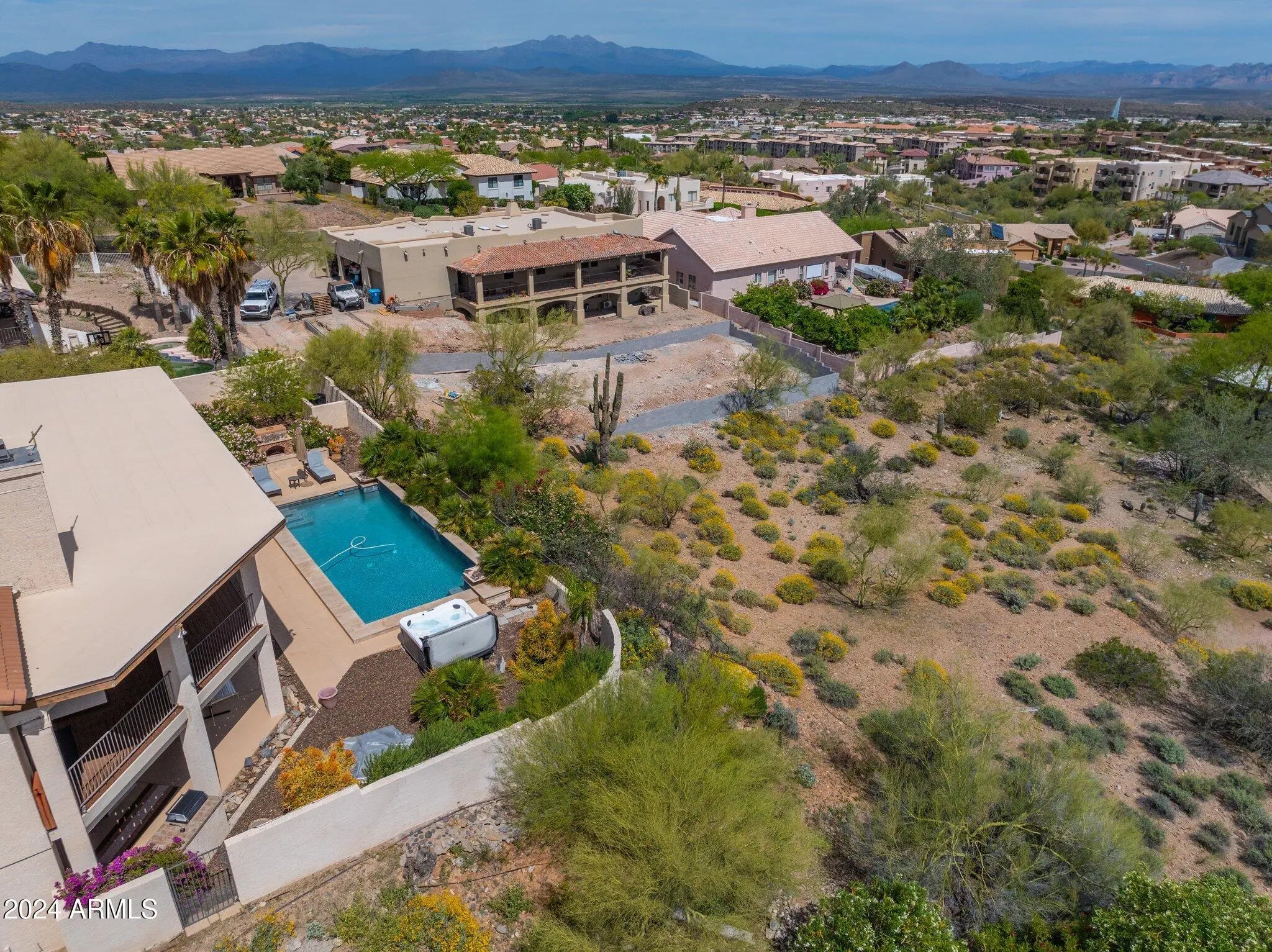 RECENTLY REMODELED!! New interior paint, light fixtures, fans & LED can lights, plus the cabinets have been meticulously & professionally painted, you've got to see this home, you'll love the changes, 4100 sq. feet on .4 acres, It seems the views go on forever! 180 degree views of the fountain, Red Mountain and Superstition Mountains, WOW! The home has so many living & hang out areas, a living room, 2 great rooms, beautiful kitchen plus a bar & kitchenette downstairs as well! A huge Storage room as well as a den, two breakfast eating areas & formal dining, outside, well the outside has 2 HUGE covered patios with multiple seating areas, dining room & built-in BBQ, The private pool area with a brand new jacuzzi, is a true oasis, an RV gate & driveway are perfect for RV parking, What a H