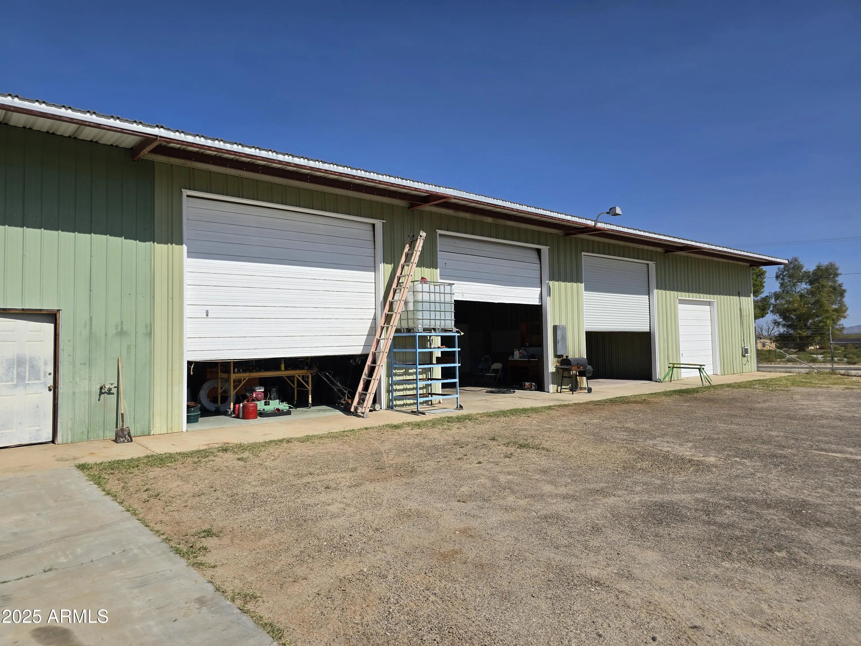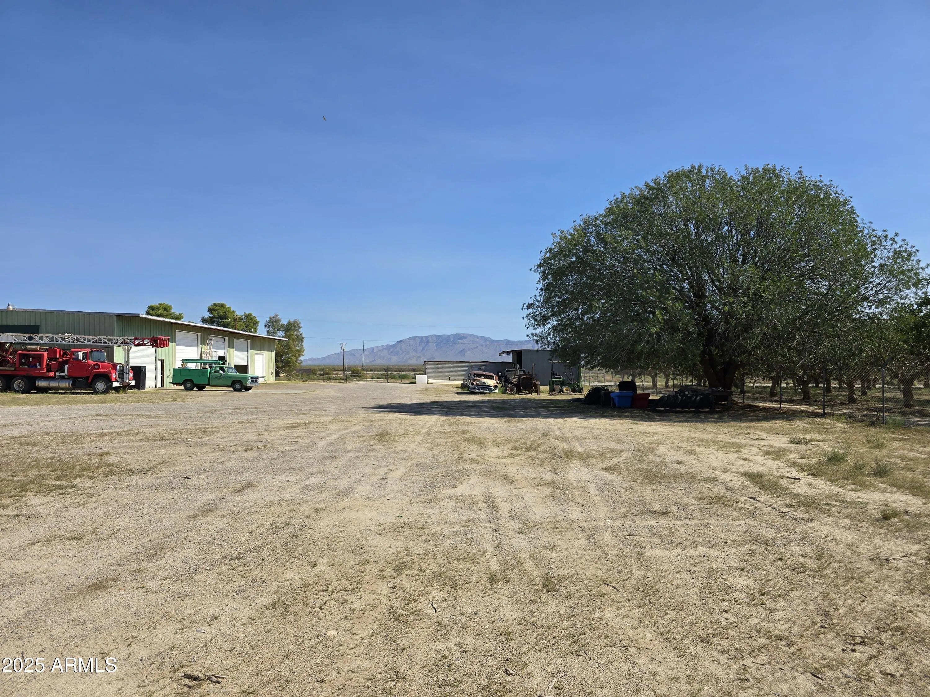 Located on a 3.14 acre corner commercial lot at the corner of Hwy 60 and Centennial Park Rd. Property includes a large 5070 sq ft metal building with five bay doors. Three center doors open up to one large area. The two end bays are separated, and one end bay has been converted into a living area, a garage and a loft. The other bay is being used as a workshop with a loft. There is an additional 820 sq ft metal building, a smaller 12x12 building, and a 4-car carport. The entire property is surrounded by a fence with 5 gates in various sizes. Property is on a private well with a septic system. Four large pistachio trees on the south side of the property provide plenty of shade. The property is located on the corner of Hwy 60 and Centennial which is a main thoroughfare. with approximately 2300 vehicles per day. This would be a perfect central location for warehousing, mechanic shop, retail, organic farm, coffee stand, restaurant, etc. Unleash your entreprenurial spirit.