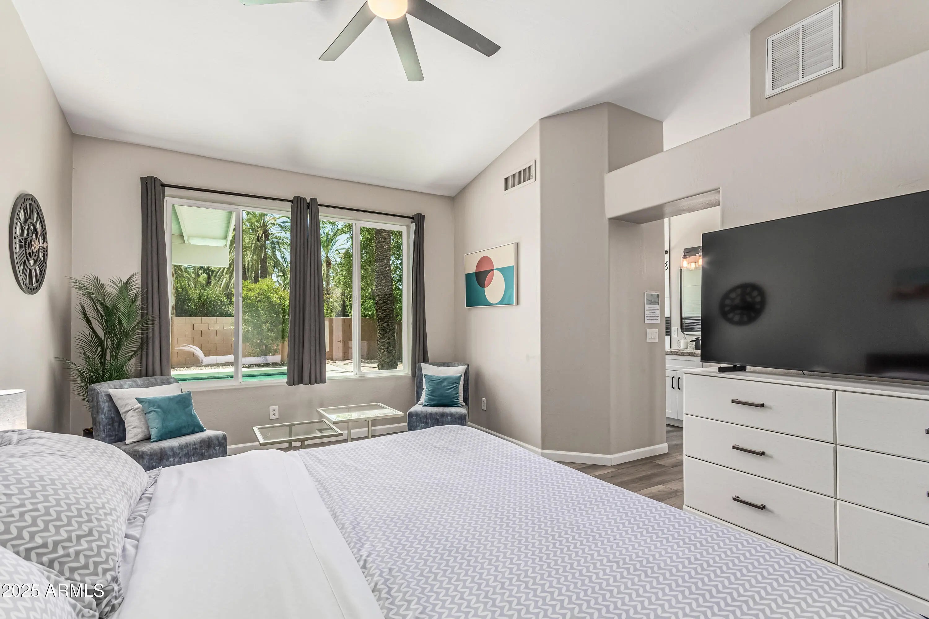 Idea for both corporate stays and getaways! A truly modern 3 bed, 3 full bath! Vaulted ceilings and a sleek, open layout greet you the moment you walk through the door. Remodeled in 2021 including flooring, kitchen, bathrooms, HVAC, windows, interior/exterior paint, tankless water heater, and pool pump— it's move-in ready! Drift off to the sounds of the backyard water feature just steps from the primary suite. This spacious primary bedroom checks all the boxes-- a walk-in closet, dual vanity and toilet room. The private backyard and pool + covered patio provide an ideal setting for relaxation and entertainment. There's not just one but two patios to enjoy outdoor living spaces. The 2nd bedroom has direct access to the front patio. Whether it's accomodationg guests or your daily crew, the driveway easily fits 4 cars side-by-side. Located near Arcadia, Biltmore, Downtown Phoenix, and Old Town Scottsdale, you'll be close to top-rated restaurants, golf, hiking, shopping and entertainment. This turnkey home delivers! See for yourself the unmatched value convenience in central Phoenix!