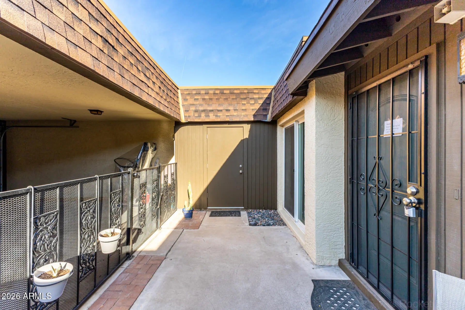 Showstopper! Ideally located in the heart of Phoenix. Thoughtfully designed for effortless living, this move-in-ready residence blends comfort, style, and everyday convenience. The open, light filled floor plan showcases tile flooring throughout, a cozy fireplace, and abundant natural light that creates a warm, inviting atmosphere. Modernized bathrooms add a fresh, contemporary feel, while the tastefully updated kitchen, highlighted by a skylight, flows seamlessly into the dining area perfect for both daily living and entertaining. Enjoy true indoor/outdoor living with a private front courtyard & patios off both the primary and secondary bedrooms, offering multiple outdoor retreats to relax and soak in Arizona's sunshine. An enclosed carport provides added privacy and convenience.Situated just minutes from popular dining, shopping, and entertainment, this home delivers the perfect balance of lifestyle and location. The community features a sparkling pool, with water and garbage collection included in the HOA for added ease and value.