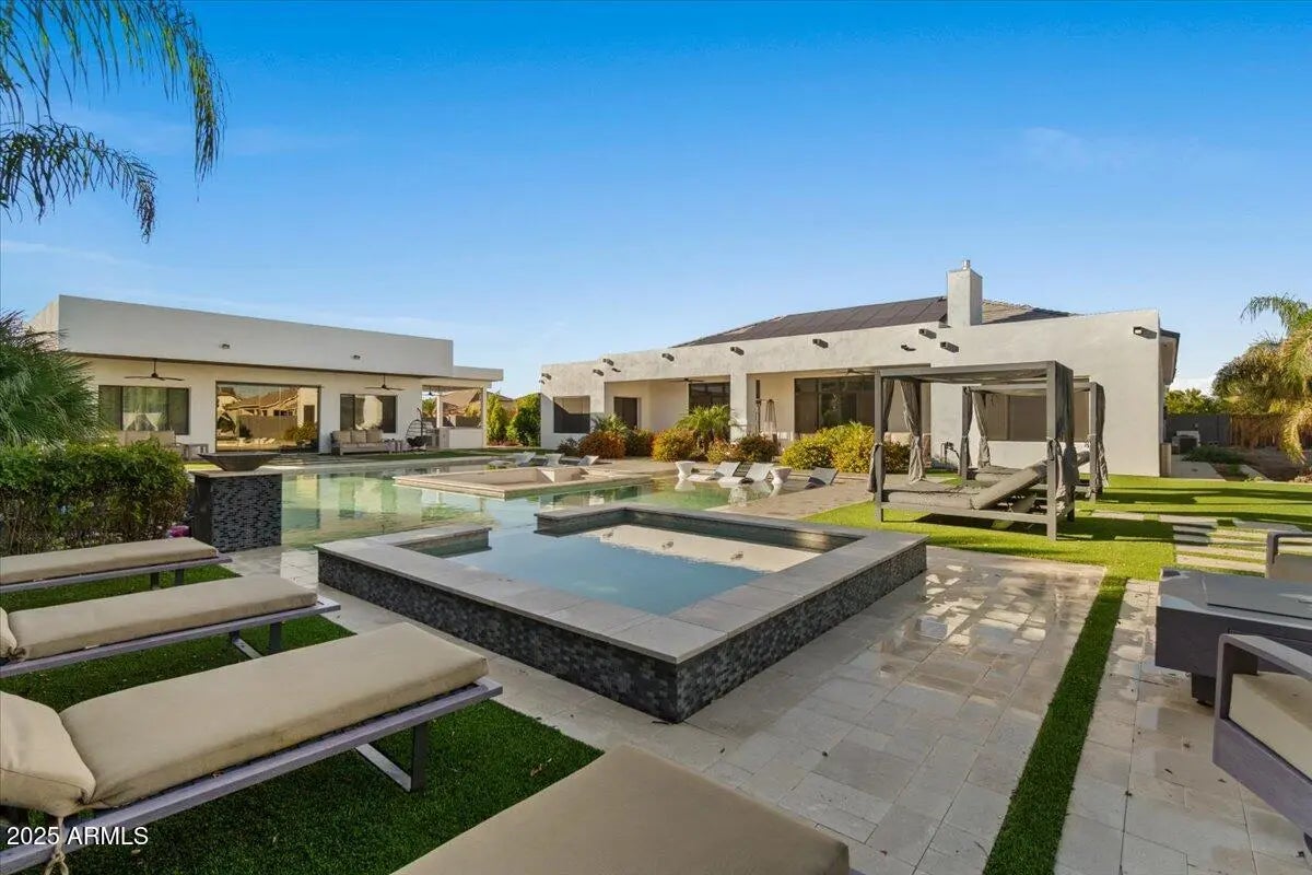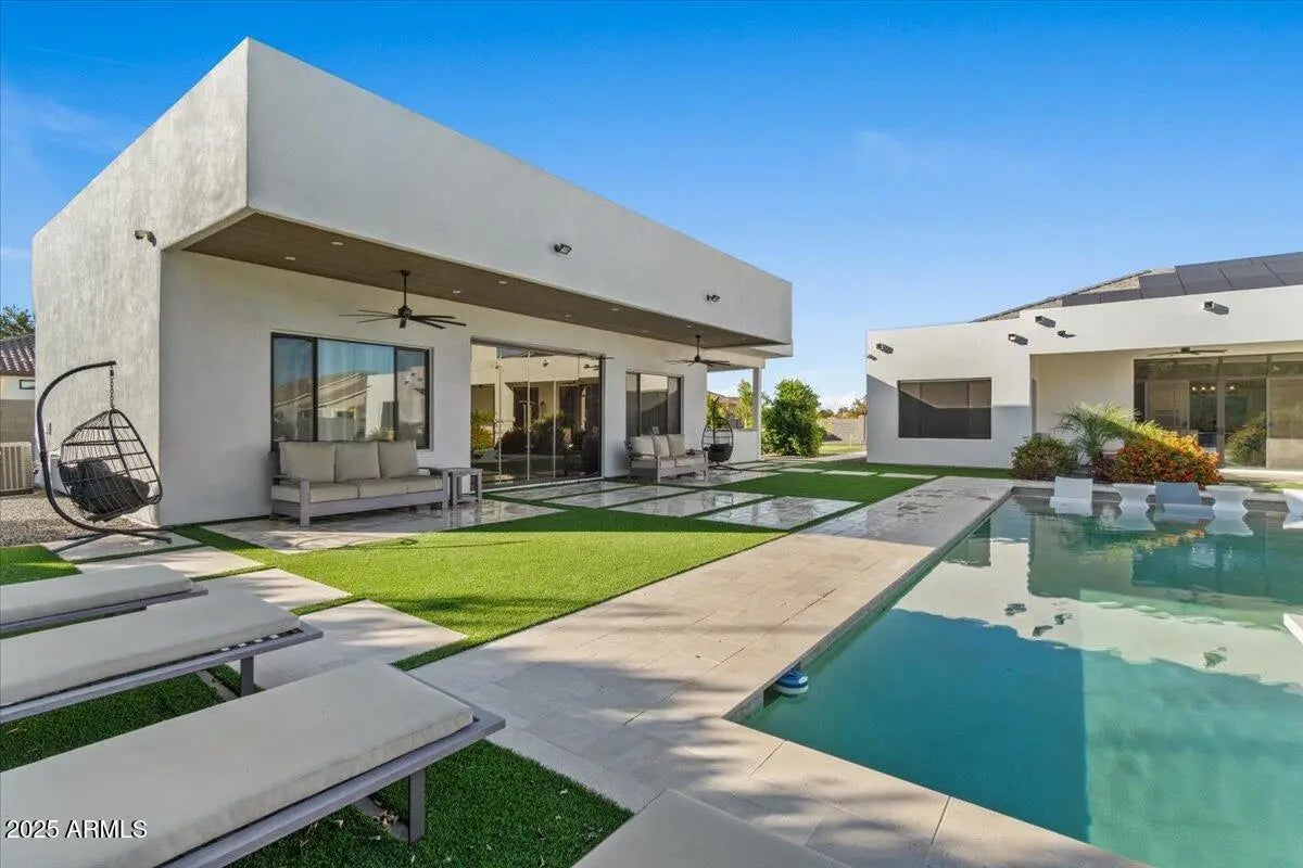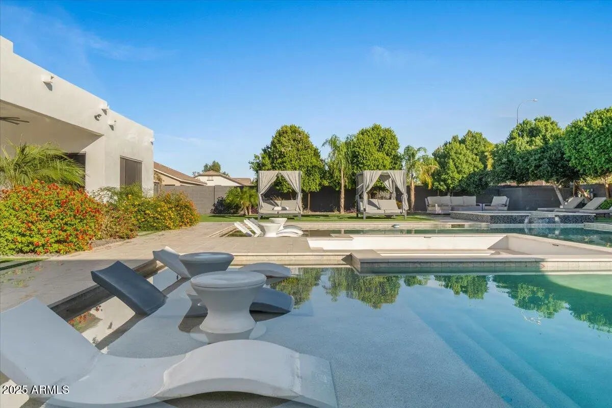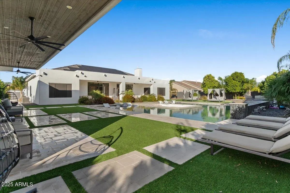 Stunning contemporary in gated Chandler community with true resort vibes! Luxury-inspired custom pool + spa w/ recessed fire lounge, Baja shelf & multiple lounge zones. Bright, modern interior w/ seamless indoor-outdoor living. 4,476 SF main home plus the newly added ~1,100 SF casita w/ private entry + full living quarters—ideal for multi-gen living, guests, or office/studio. Designed for high-end entertaining + year-round relaxation. Minutes from premium dining, shopping & freeway access. Rare mix of design, privacy & wow factor. (click more for full details) Welcome to 1161 E Birchwood Pl, an exceptional contemporary residence in a private gated community in Chandler where modern architecture meets true resort living. Designed for both style and function, this home delivers a rare level of luxury with seamless indoor-outdoor flow, intentional sightlines, and stunning natural light throughout. The backyard is a showpiece featuring a custom luxury-resort-style pool and spa, inspired by the elevated aesthetic of destinations like the Scottsdale Princess. A sleek recessed fire lounge, integrated Baja shelf, and multiple sun + shade zones create the perfect setting for golden-hour gatherings, intimate evenings, and year-round entertaining. Inside, the open-concept floor plan offers clean lines, designer finishes, and a chef's kitchen built for hosting. The main home is 4,476 SF plus a newly built ~1,100 SF casita features its own private entrance and full living quarters ideal for multi-generational living, long-term guests, or a premium office/creative studio. Quiet, private, and perfectly located just minutes to dining, shopping, golf, and freeway access this property is a rare opportunity to own a modern luxury home with the amenities and atmosphere of a high-end resort.