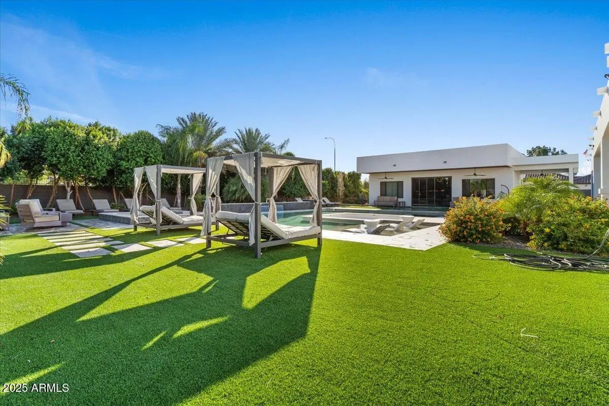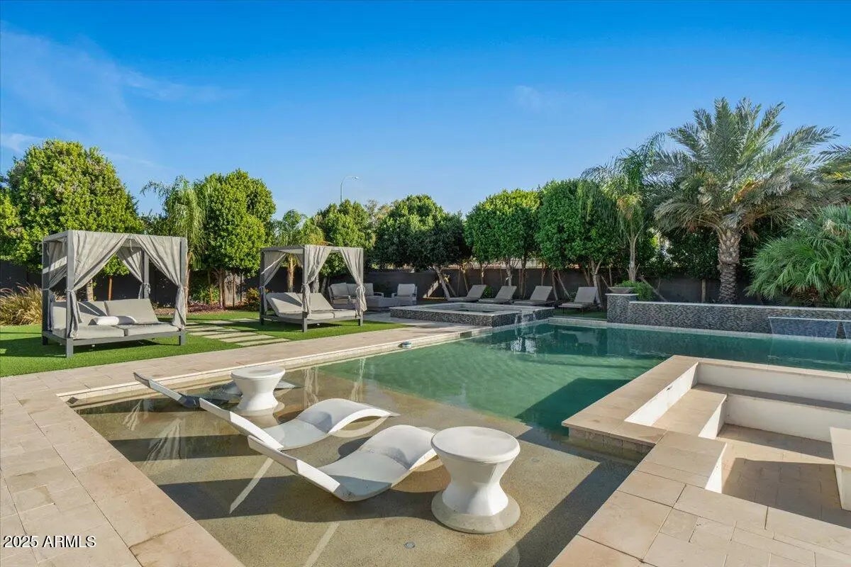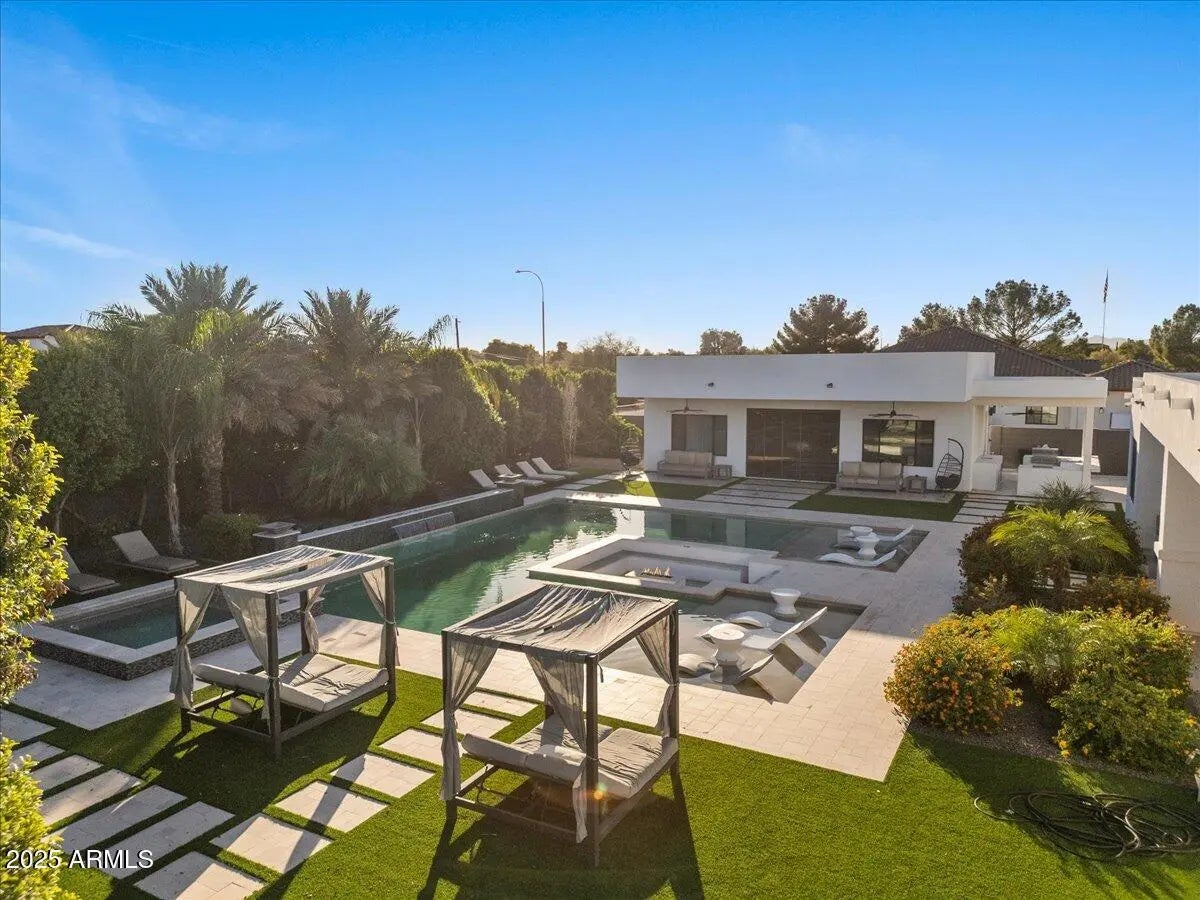 Stunning contemporary in gated Chandler community with true resort vibes! Luxury-inspired custom pool + spa w/ recessed fire lounge, Baja shelf & multiple lounge zones. Bright, modern interior w/ seamless indoor-outdoor living. 4,476 SF main home plus the newly added ~1,100 SF casita w/ private entry + full living quarters—ideal for multi-gen living, guests, or office/studio. Designed for high-end entertaining + year-round relaxation. Minutes from premium dining, shopping & freeway access. Rare mix of design, privacy & wow factor. (click more for full details) Welcome to 1161 E Birchwood Pl, an exceptional contemporary residence in a private gated community in Chandler where modern architecture meets true resort living. Designed for both style and function, this home delivers a rare level of luxury with seamless indoor-outdoor flow, intentional sightlines, and stunning natural light throughout. The backyard is a showpiece featuring a custom luxury-resort-style pool and spa, inspired by the elevated aesthetic of destinations like the Scottsdale Princess. A sleek recessed fire lounge, integrated Baja shelf, and multiple sun + shade zones create the perfect setting for golden-hour gatherings, intimate evenings, and year-round entertaining. Inside, the open-concept floor plan offers clean lines, designer finishes, and a chef's kitchen built for hosting. The main home is 4,476 SF plus a newly built ~1,100 SF casita features its own private entrance and full living quarters ideal for multi-generational living, long-term guests, or a premium office/creative studio. Quiet, private, and perfectly located just minutes to dining, shopping, golf, and freeway access this property is a rare opportunity to own a modern luxury home with the amenities and atmosphere of a high-end resort.