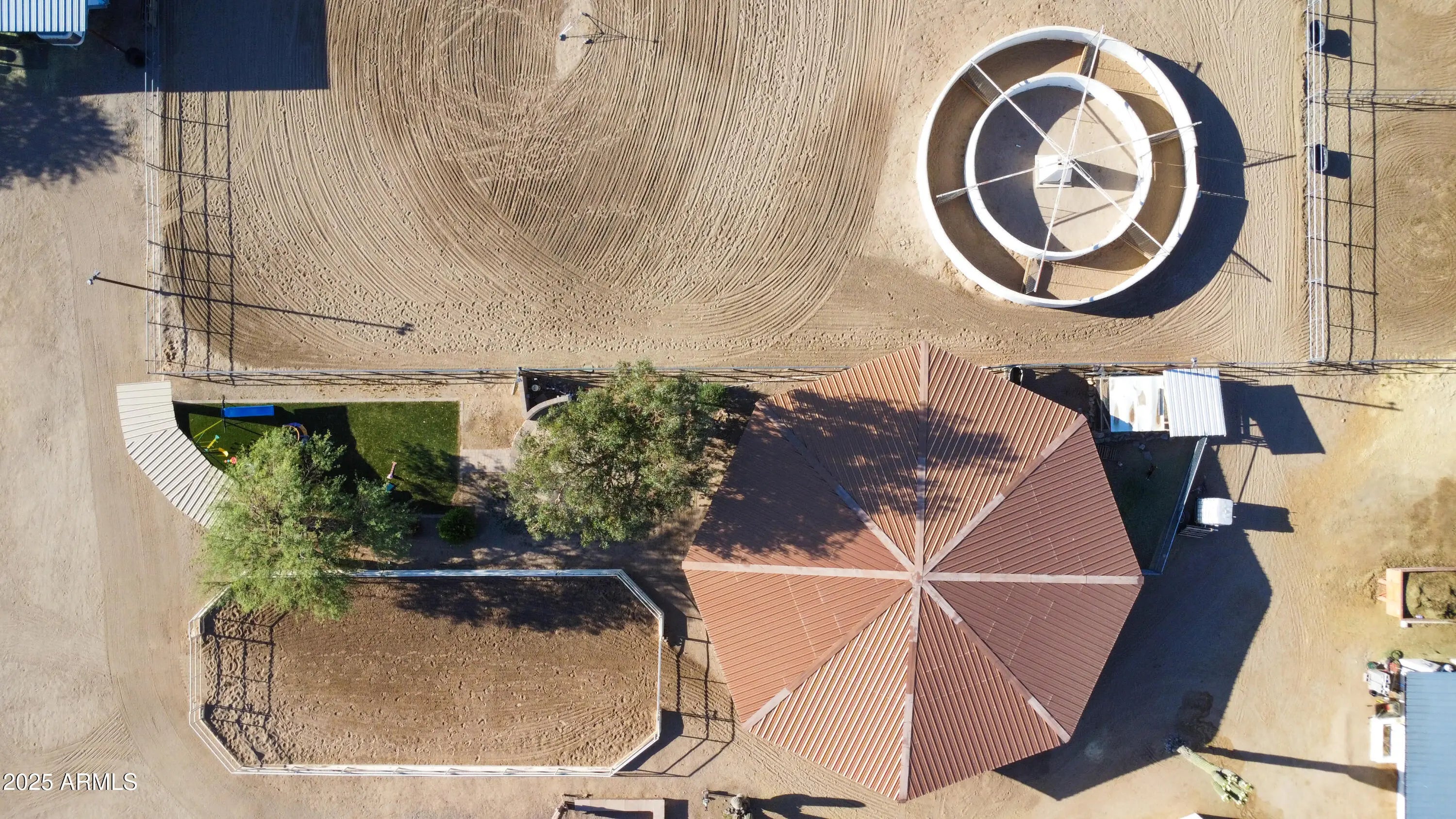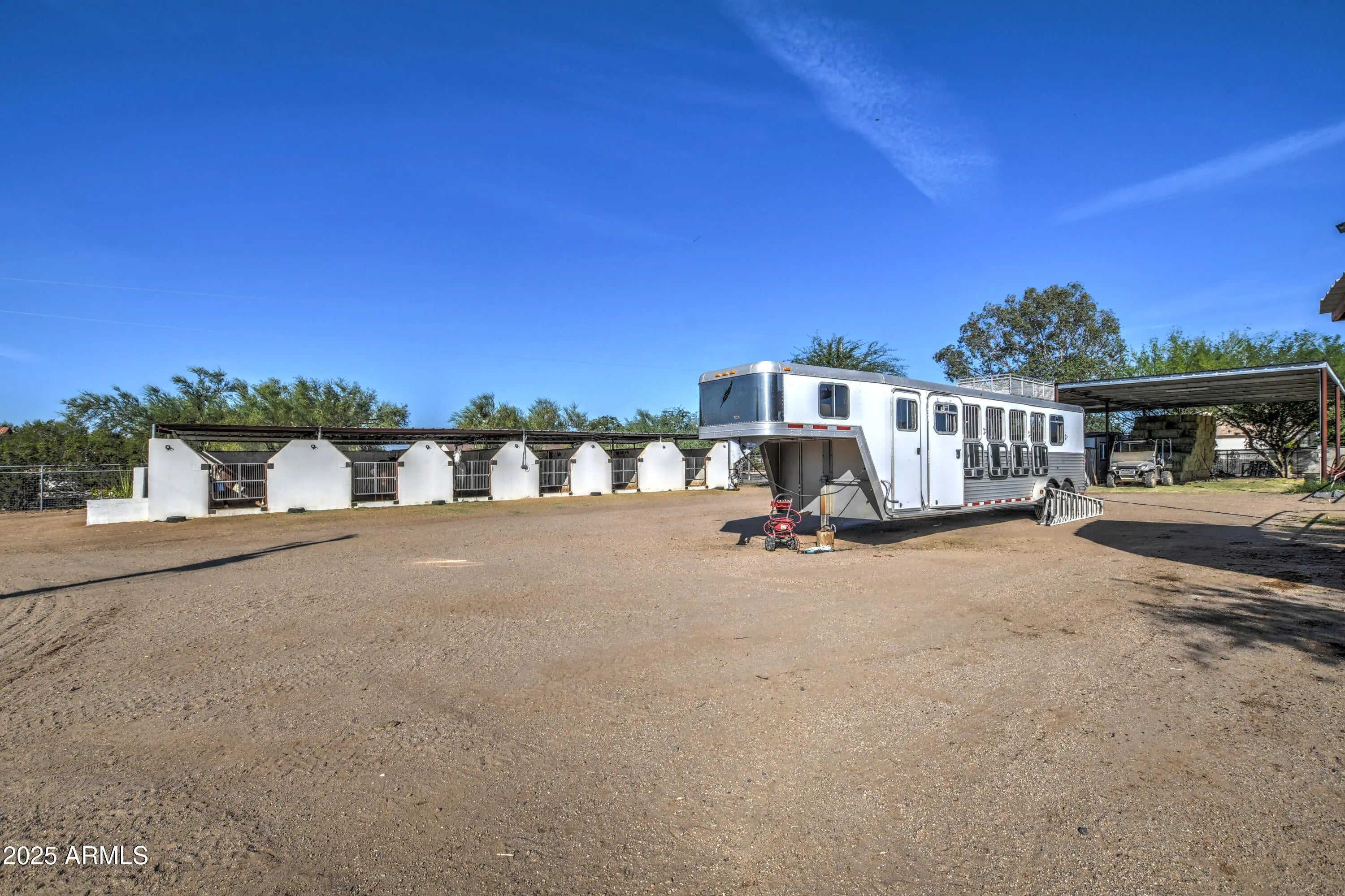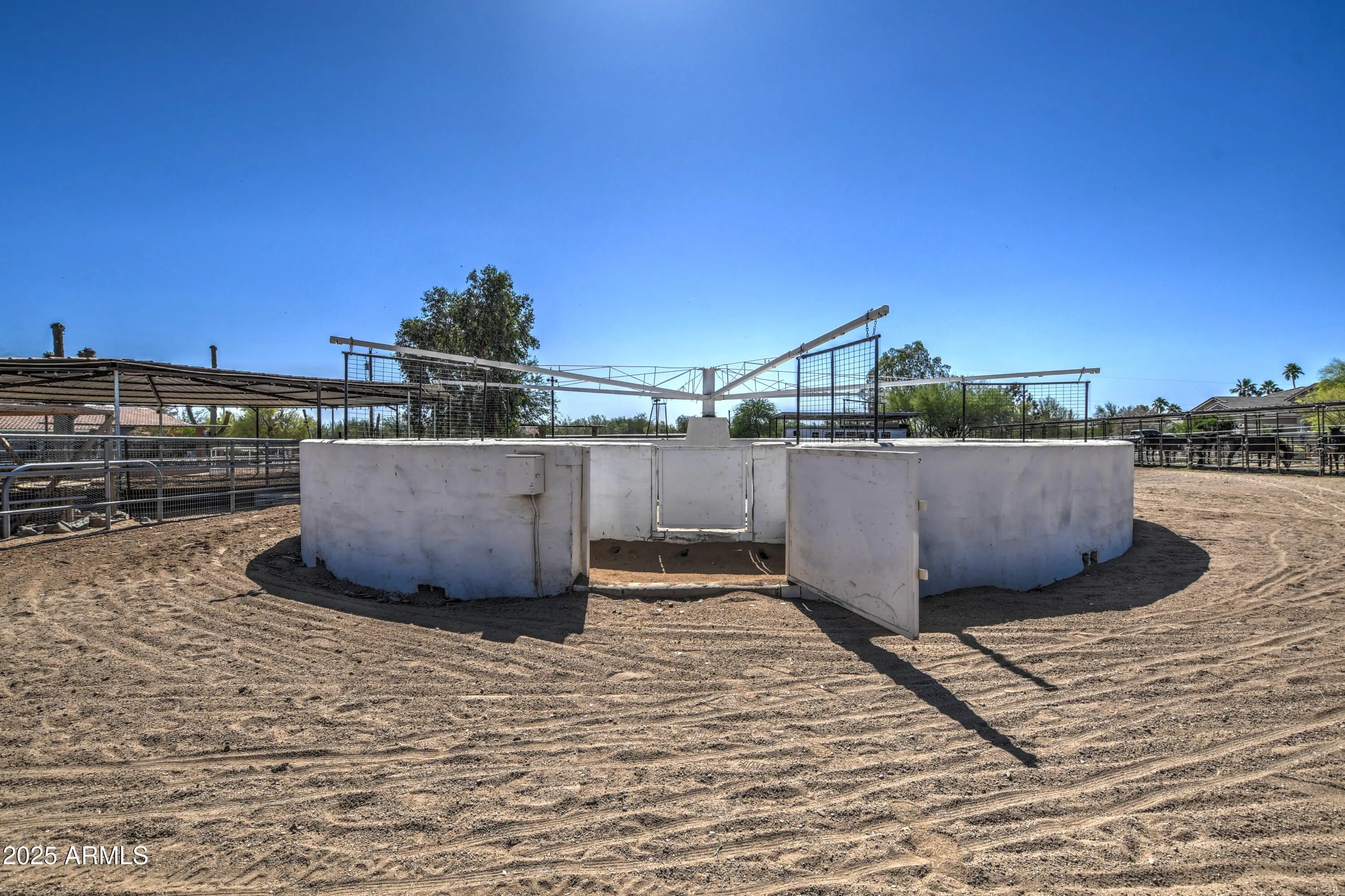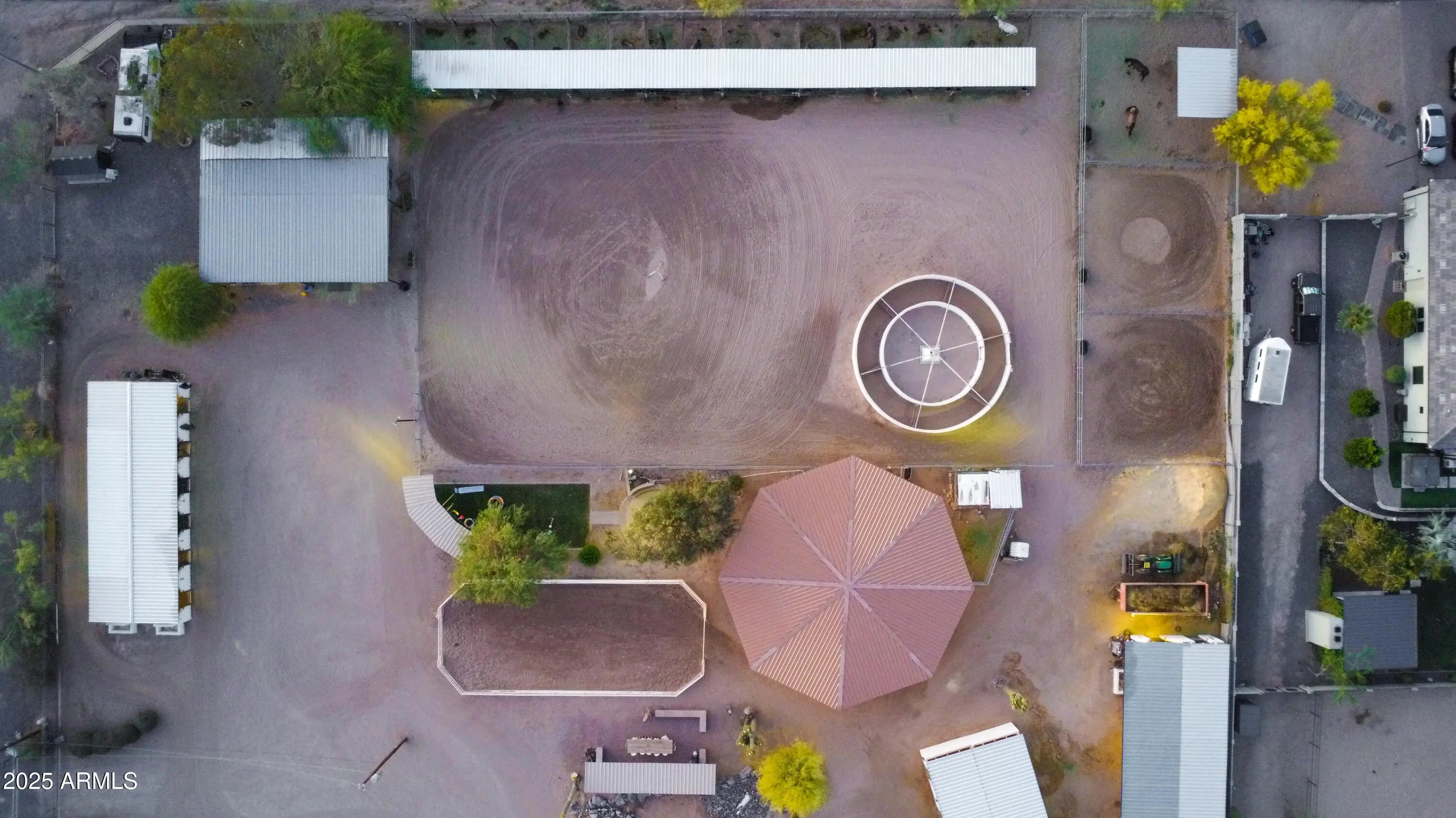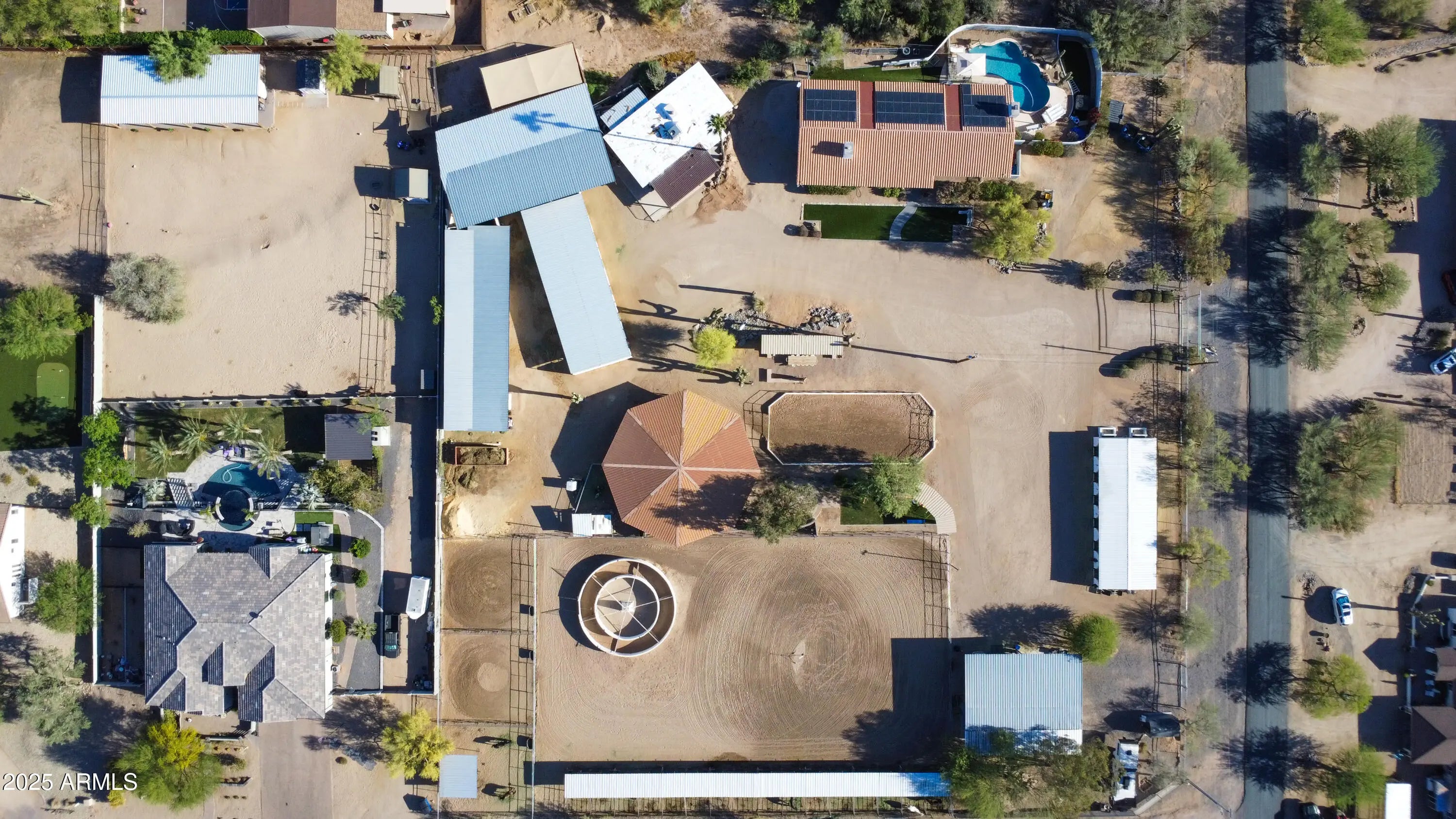 This Fantastic Equine Property is ready for the Big Show! It boasts a Huge barn w 26 Stalls, 4 Stall Grooming Area w Cross Ties, Large Covered Schooling Pen, Breeding Stocks, Breeding Phantom & Spacious Foaling Stall, Second Barn holds Additional 12 stalls. Grounds include 60' Covered Round Pen w Sprinklers, Three 40' Connected Turnouts, 6 Horse Euro-Walker in a Massive 175'x120' Arena, Large Presentation Arena w Seating, Covered Hay Storage and Large Tack Room w A/C. Entrance has Electric Gate w Keypad and the ADU can convey. The Lovely Updated 4 Bedroom Ranch home, almost 4000' one level, is an Open and Airy escape from the Trail. The added Huge Heated Pool, Hot Tub, Playground, Kids' Splash Pad & Owned Solar make this property a special find, recently Bank Appraised for $2.7M.