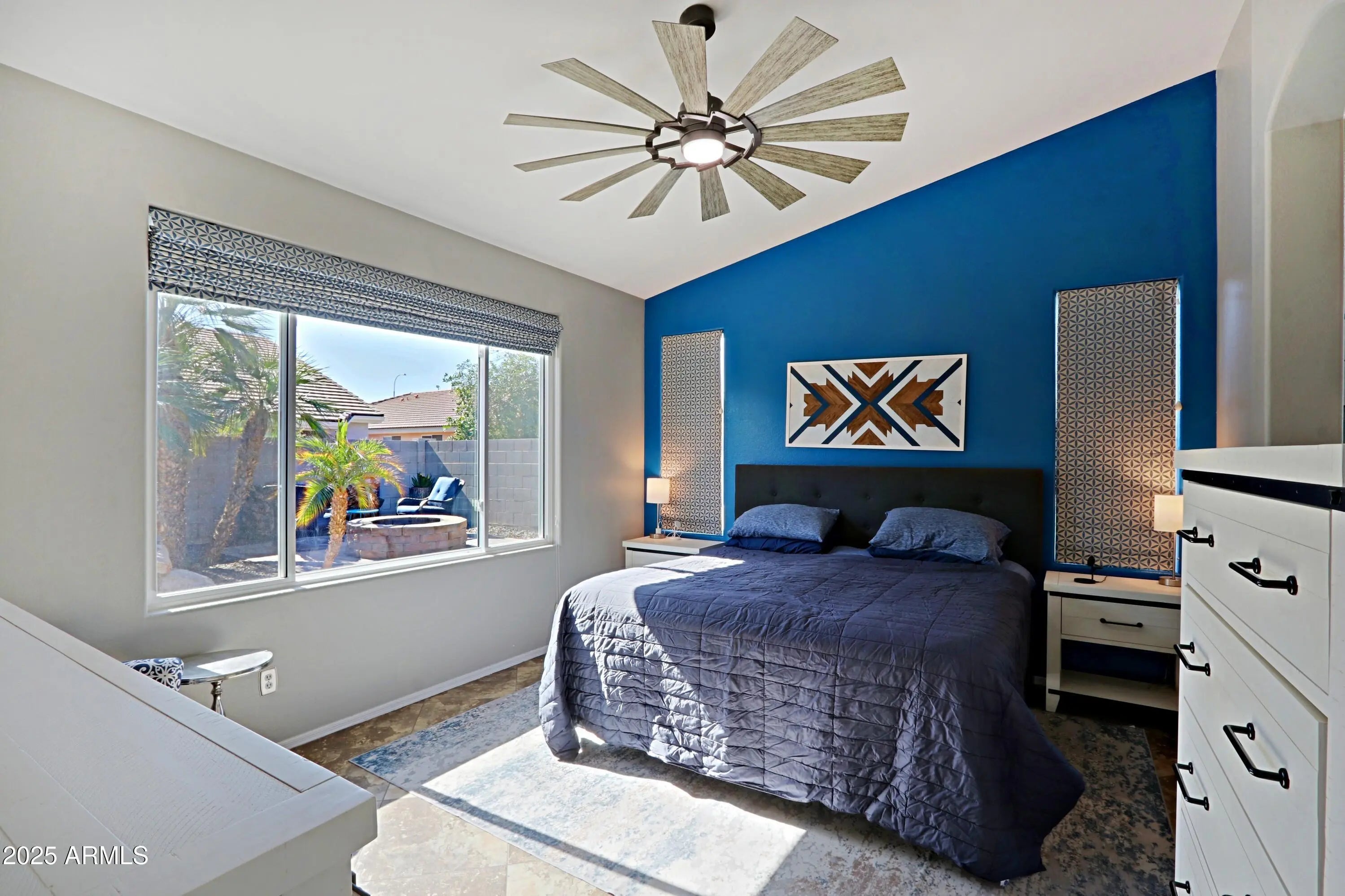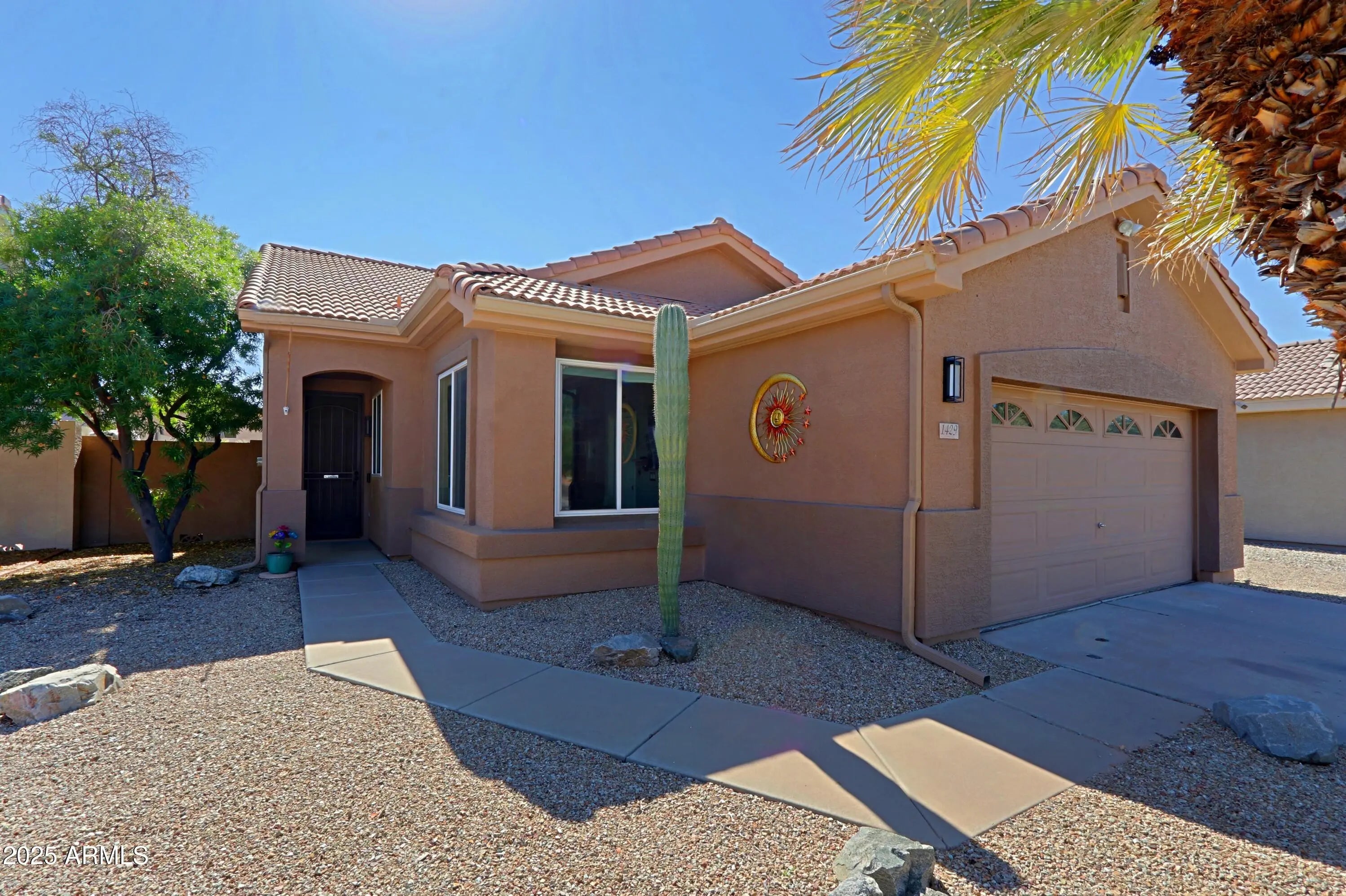 Welcome home to this beautifully updated Fulton property in Calloway at the Vineyards! Enjoy easy access to the 101 freeway, dining, shopping, & historic Downtown Chandler. This 3-bdrm, 2-bath home features a sparkling pool & numerous recent upgrades, including new windows & patio door (2024), remodeled primary shower (2024), new turf & pavers in the backyard (2023), new water softener & misters (2023), & new outdoor shades (2024). Updated interior & exterior fixtures & fans enhance the fresh, modern feel. The spacious great room offers vaulted ceilings & abundant natural light, while the kitchen impresses with granite countertops & newer appliances. Step outside to your private backyard retreat with a covered patio, palm trees, & a refreshing pool—ideal for relaxing or entertaining.