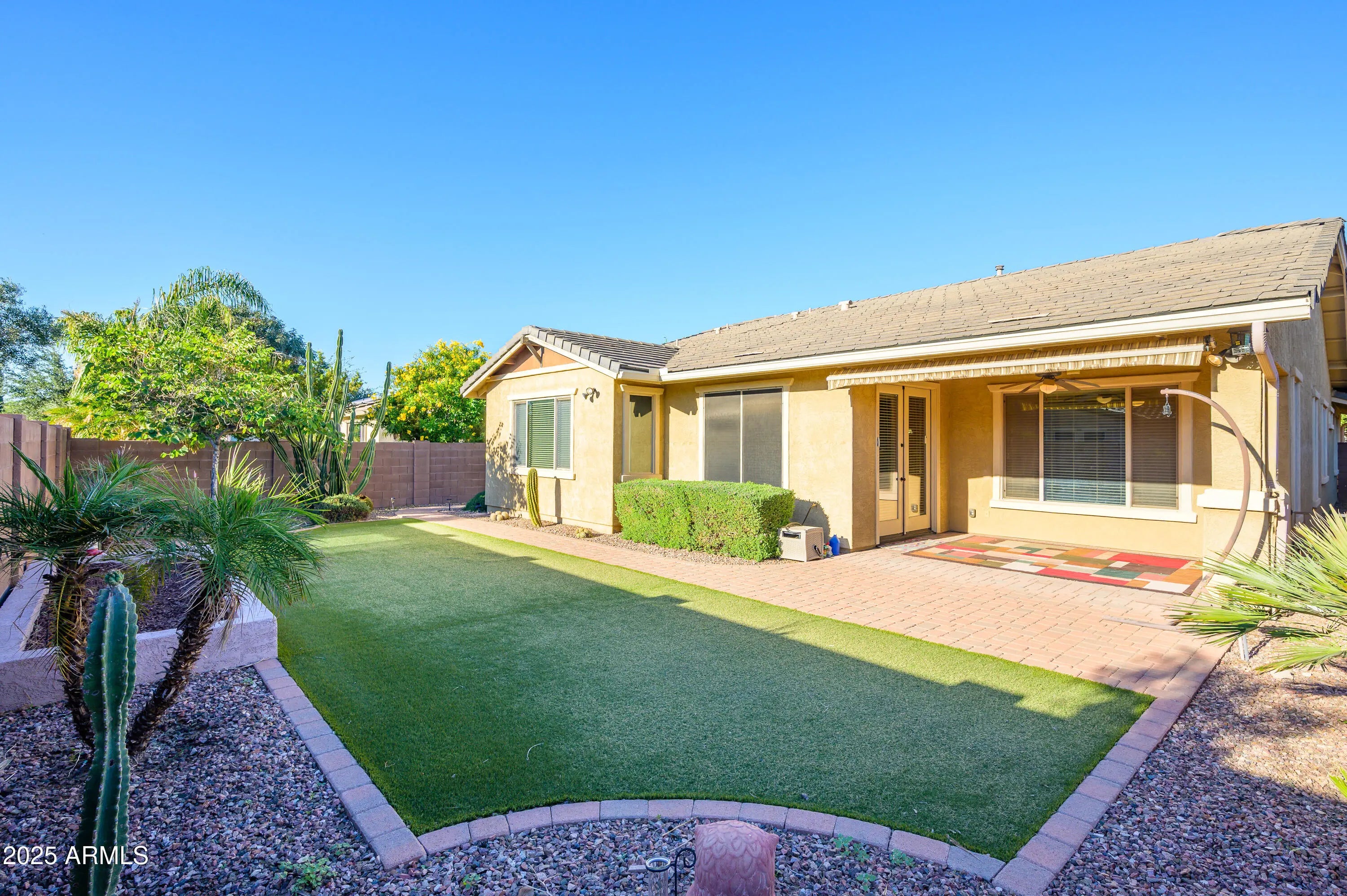 Welcome to this beautifully maintained home in one of the East Valley's most sought-after master planned communities in The Knolls at Power Ranch where resort-style living meets small-town charm. This spacious 3-bedroom plus den, 2-bath residence features an open floor plan designed for modern living and effortless entertaining. The eat-in gourmet kitchen flows seamlessly into the formal dining area, perfect for family gatherings and special occasions. Enjoy Arizona living with both a charming front patio and a back patio with awning overlooking the large lot. Additional highlights include an extended and insulated 2-car garage, extra-large laundry/craft room, brand-new A/C, updated garage door components, and a flagpole feature. The primary suite offers a true retreat experience with a soaking tub, separate shower, and private toilet area. As part of Power Ranch, residents enjoy an impressive lineup of amenities designed for recreation, relaxation, and connection. Gather with neighbors at The Barn or Carriage House, both vibrant community hubs hosting year-round classes, events, and private celebrations. Spend sunny days at one of several pools, the splash pad, or cast a line in one of two catch-and-release fishing lakes. Outdoor enthusiasts will love over 26 miles of scenic trails, multiple parks and playgrounds, and a variety of sports facilities including basketball, tennis, soccer, softball, and volleyball courts. Covered pavilions, a rolling party trailer, and flexible rental spaces like the Ranch House Conference Room make entertaining a breeze. With thoughtfully maintained green spaces and endless community activities, Power Ranch offers the perfect blend of comfort, recreation, and neighborly charm.