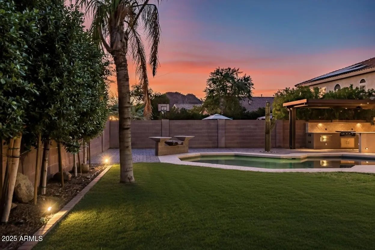 Welcome to your private retreat in the heart of North Peoria's sought-after Pleasant Valley community. This beautifully remodeled 6-bedroom, 3-bath home blends timeless design with modern luxury, crafted for those who love to entertain in style. Step inside to wide-plank tile flooring, open living spaces filled with natural light, and a chef's kitchen that commands attention with granite countertops, custom cabinetry, stainless steel appliances, and a generous island built for gathering. Every bathroom has been reimagined with spa-inspired finishes and thoughtful details that make everyday living feel indulgent. Outdoors, Arizona living shines—relax beside the sparkling pool, entertain under the covered patio, or grill on your built in Blackstone or Traeger Grill while enjoying mountain views. The landscaping offers the best of both worlds with lush synthetic turf in front and vibrant natural grass in back, creating an oasis of green year-round. A massive RV gate and extended parking area provide room for all your toys and trailers. With a 3-car garage, thoughtful upgrades throughout, and proximity to top-rated schools, parks, and dining, this home captures the perfect balance of sophistication and everyday comfort. Inquire today before it's too late!