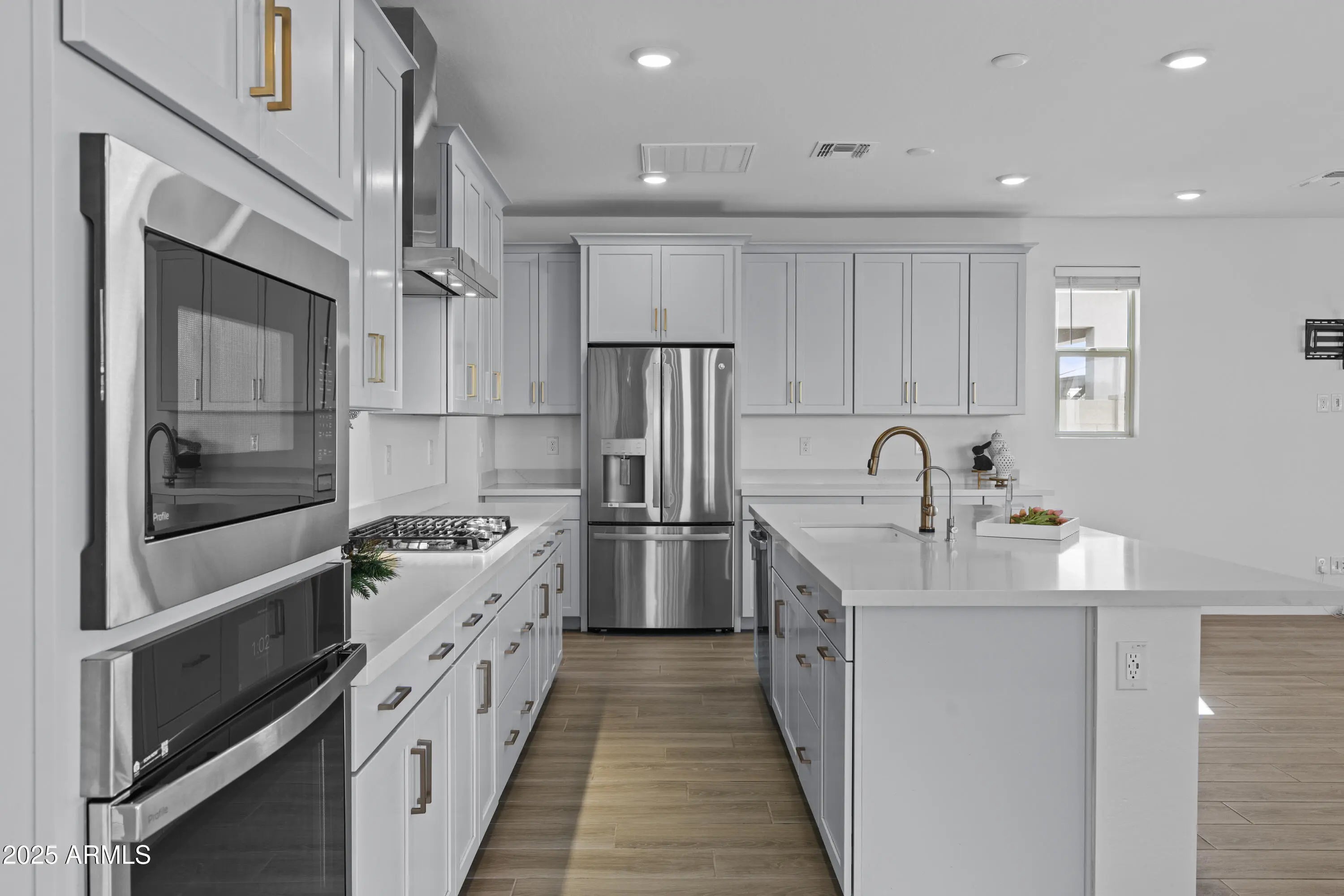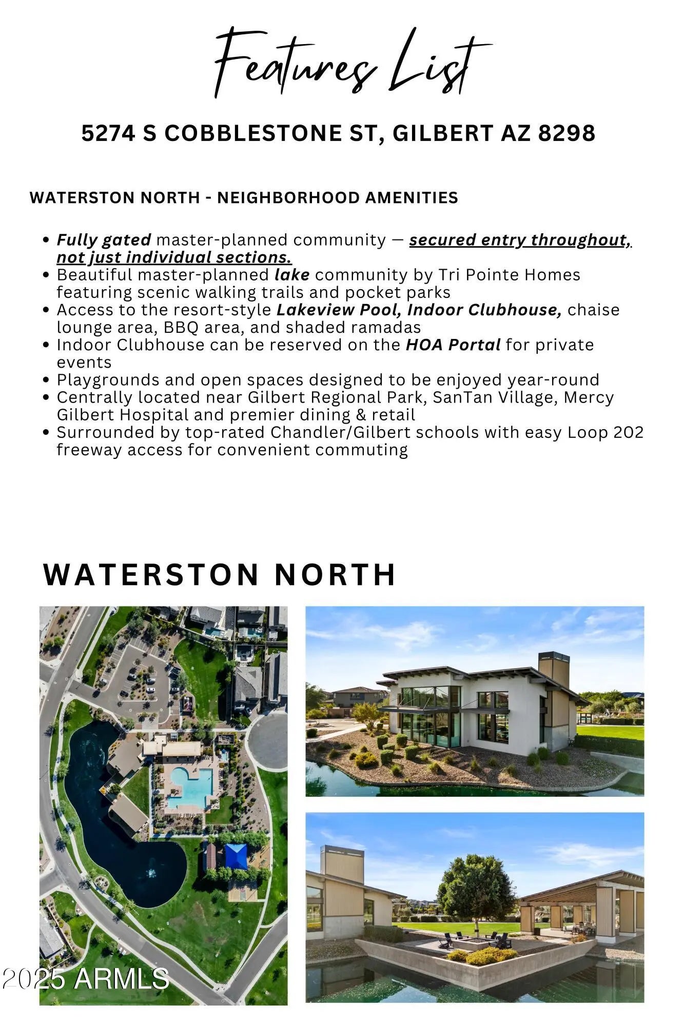 SELLER IS MOTIVATED - Make an Offer! Located on a PREMIUM LOT with only one neighbor, this 2023 TURN-KEY/LIKE-NEW home is part of Waterston North - a FULLY gated, master-planned community offering a blend of neighborhood living and modern convenience. Enjoy luxury living close to the scenic lake, lush walking trails, resort-style clubhouse and pool - all within one of Gilbert's most desirable communities. Large windows throughout frame open views of the surrounding greenbelt, bringing in abundant natural light. Featuring GE Profile Gourmet Kitchen with Sonoma cabinetry, elegant crown molding, and efficient storage. Guest on-suite on main level flaunts an upgraded walk-in shower, while the primary bath offers an upgraded frameless walk-in shower with herringbone-tiles... Tasteful champagne bronze fixtures, faucets, and hardware create a cohesive and upscale look with well-planned upgrades combining modern comfort and timeless style. For a list of upgrades, warranty details, and additional information, please ask the listing agent or check the documents tab. Access to top-rated Gilbert/Chandler schools, quick connections to the 202, shopping, dining.