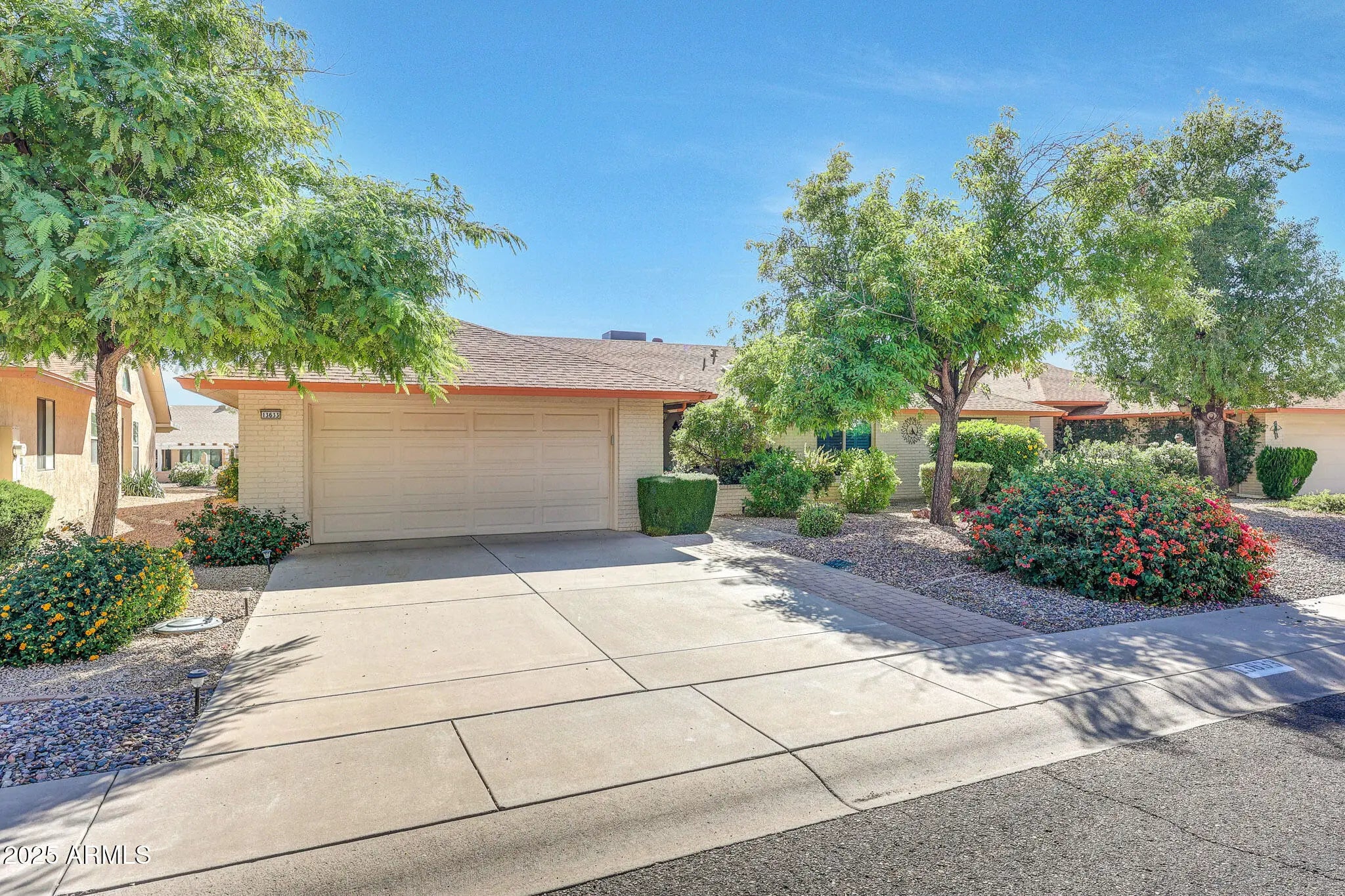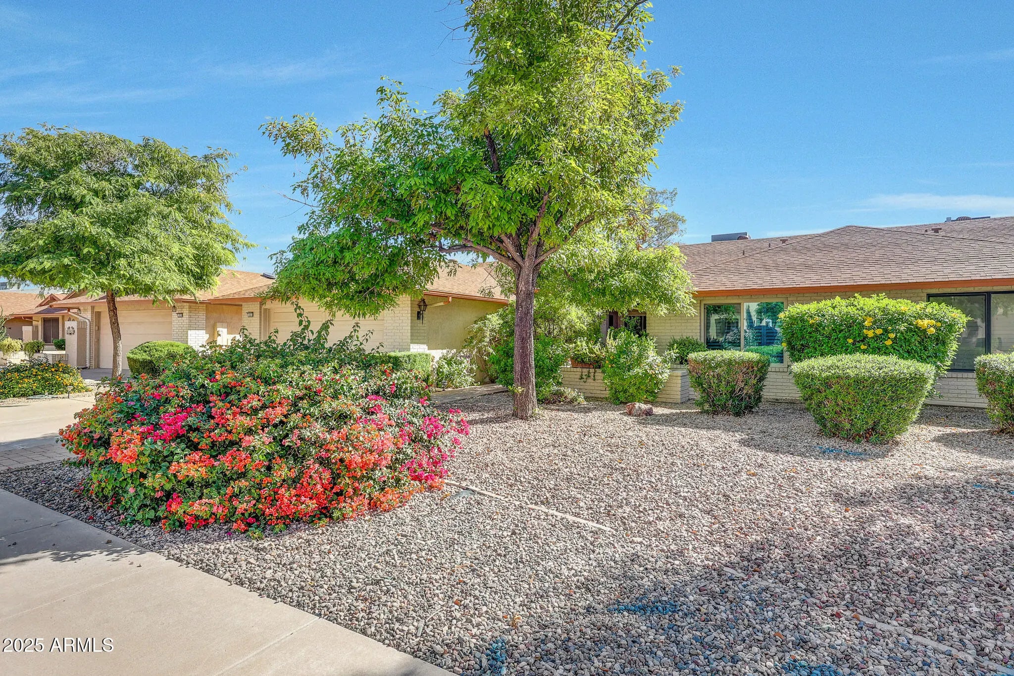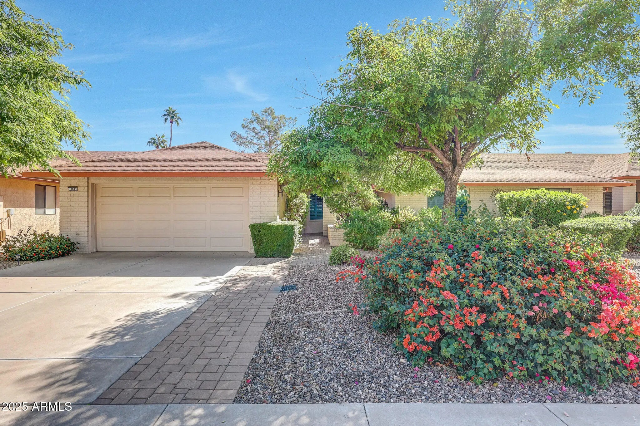 Say Hello To This Elegant Aspen Gemini Twin Home In Sun City West - And Get Ready To Be WOWED! From The Moment You Arrive, You'll Appreciate The Peaceful, Private Walkway Lined With Mature Bushes And Trees That Leads You To A Welcoming Front Courtyard. Inside, To The Left, There Is A Spacious Living Room Filled With Natural Light. And Formal Dining Room, The Open Kitchen Flows Seamlessly Into A Large Family Room - Perfect For Entertaining Or Relaxing. The Kitchen Is Both Stylish And Functional, Offering Granite Countertops, Pull-Out Shelving In The Cabinets, And Plenty Of Prep And Storage Space Ideal For Any Home Chef. The Home Features A Blend Of Tile And Carpet Flooring, Ceiling Fans In Room, And Vaulted Ceilings With The Popcorn Removed For A Clean, Modern Look. To The Right Are Two Comfortable Bedrooms. The Primary Bedroom Is Generously Sized, With A Sitting Area And Includes A Walk-In Closet. Its Ensuite Bathroom Features A Double Granite Vanity And A Walk-In Tiled Shower. The Guest Bathroom Has An Updated Tiled Walk-In Shower. But The Special Treat To This Home Is The Backyard Patio An Oversized, Covered Retreat Overlooking The Serene Desert Landscaping And Walking Trail. It's The Perfect Spot To Unwind, Entertain, Or Simply Enjoy The Beauty Of Arizona Living. Please Be Sure To View This One-Of-A-Kind Home. This Home Is Elegant, Comfortable, And Ready To Welcome You Home.