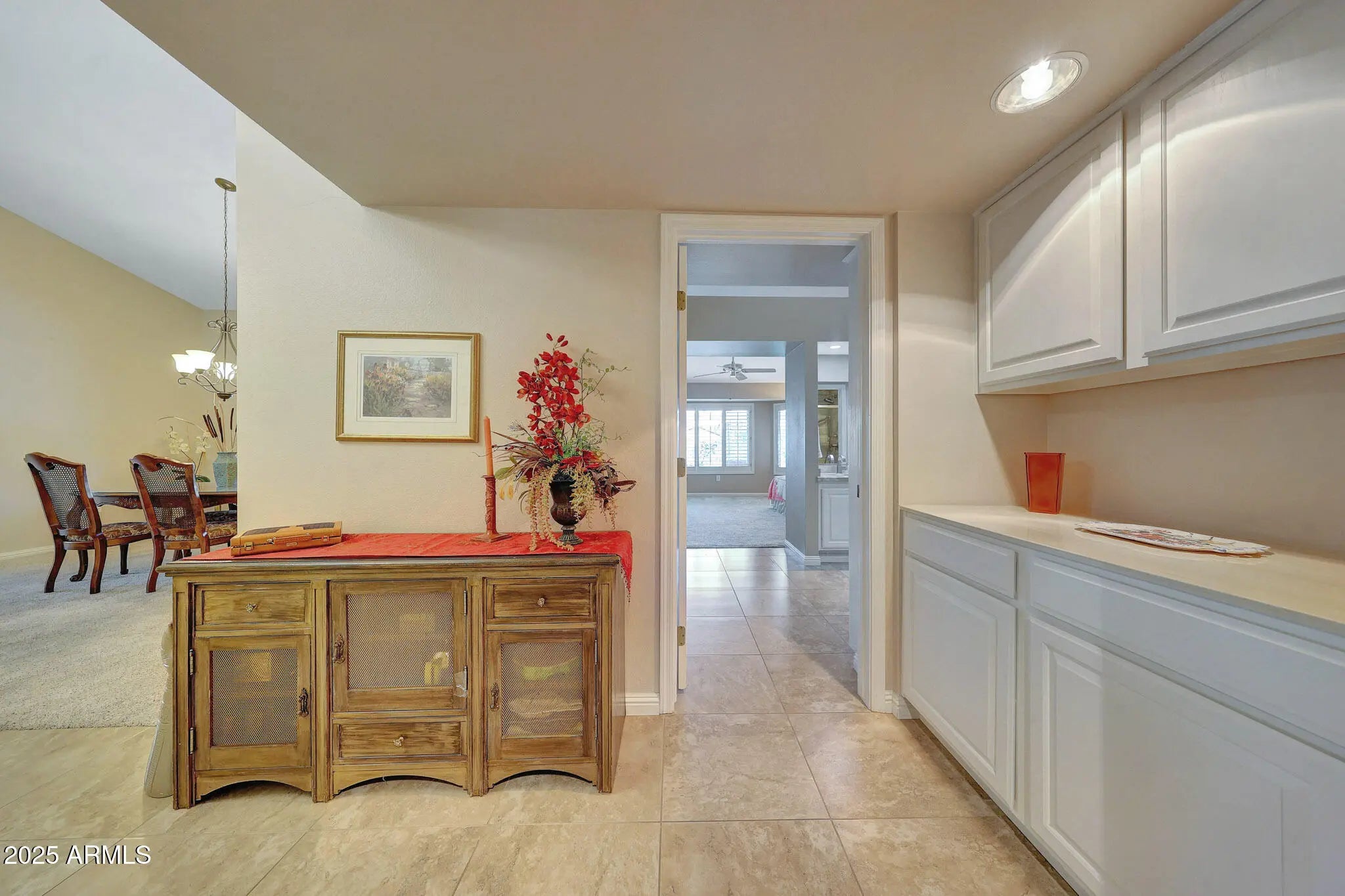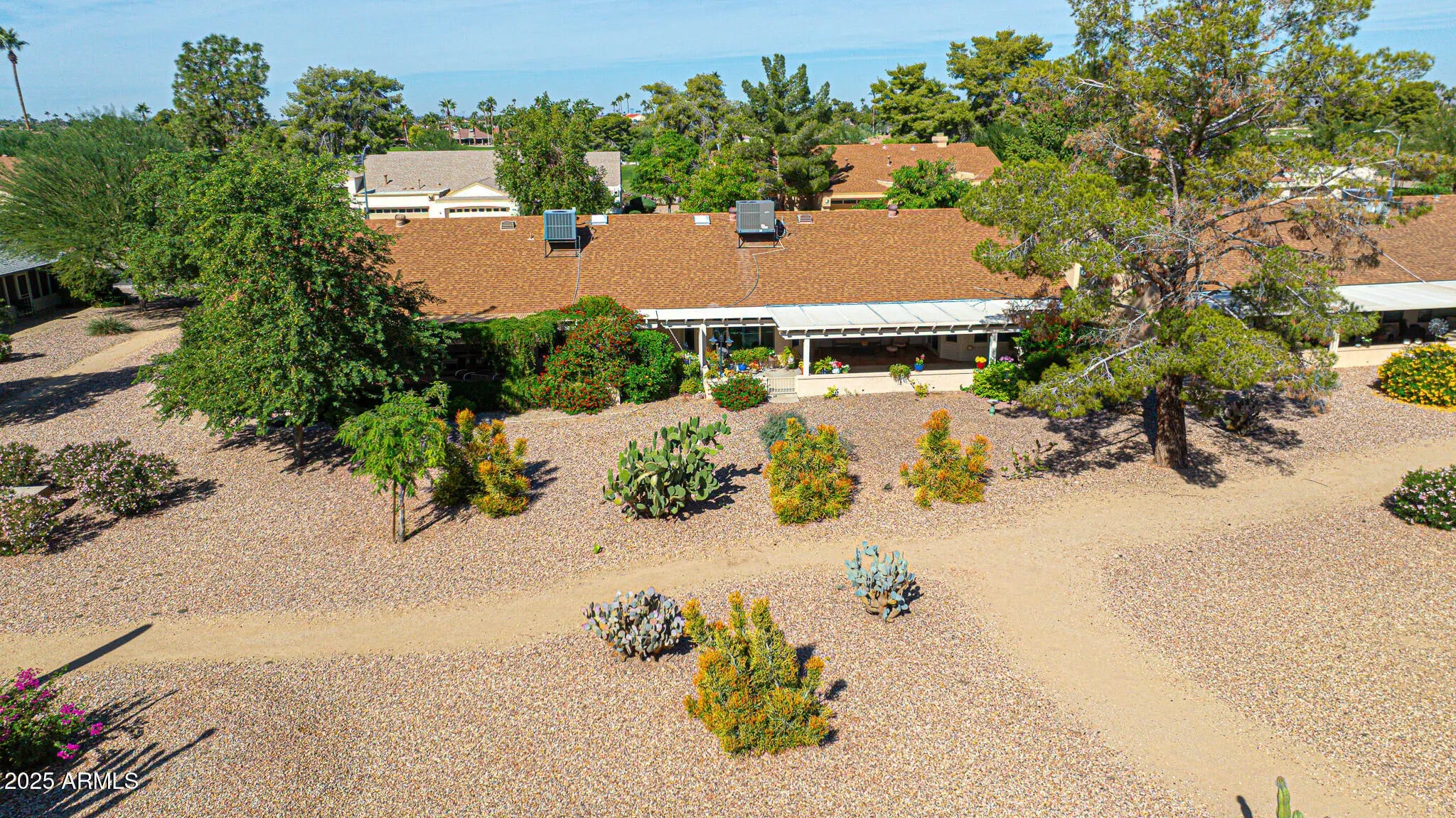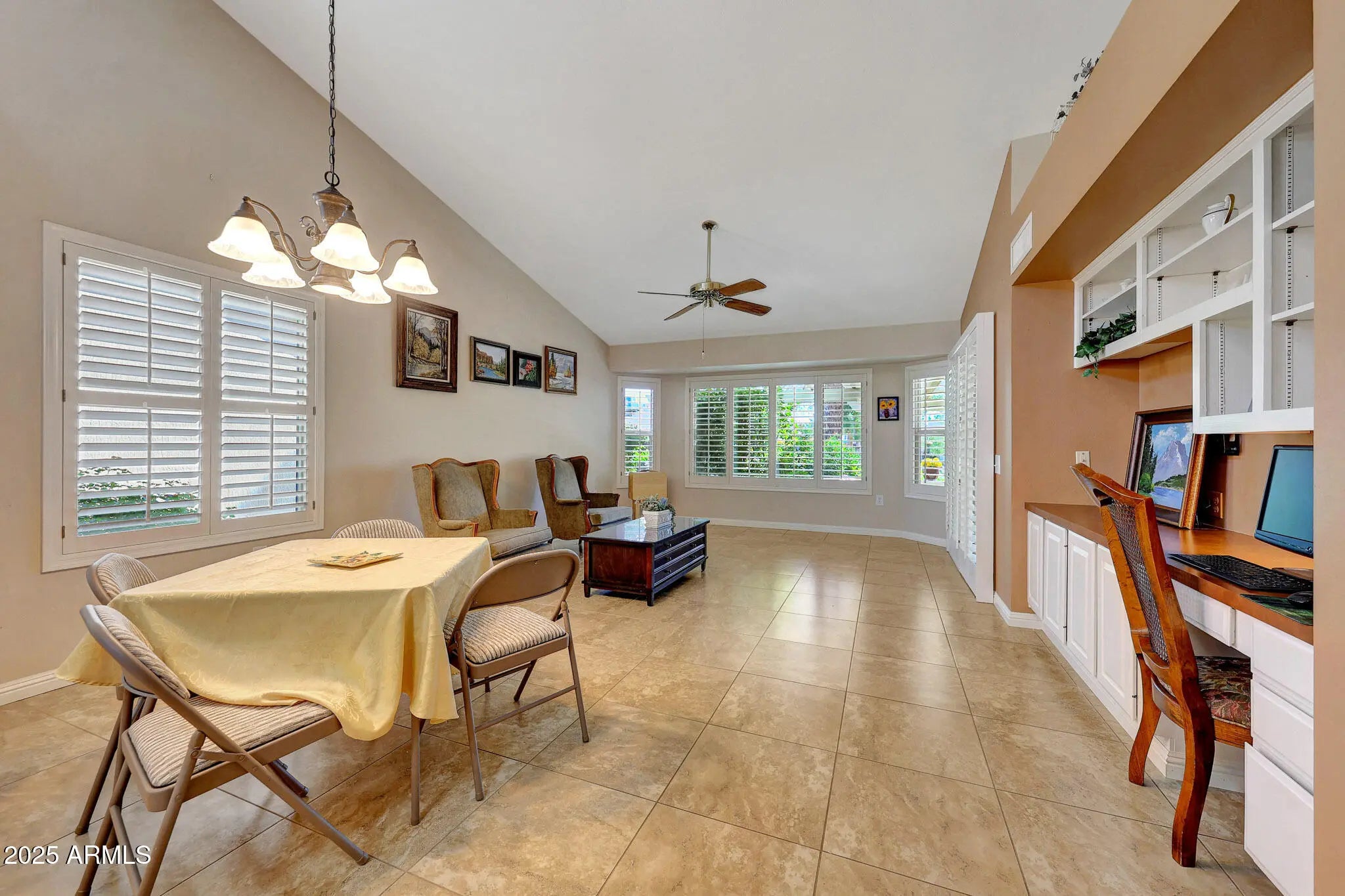Say Hello To This Elegant Aspen Gemini Twin Home In Sun City West - And Get Ready To Be WOWED! From The Moment You Arrive, You'll Appreciate The Peaceful, Private Walkway Lined With Mature Bushes And Trees That Leads You To A Welcoming Front Courtyard. Inside, To The Left, There Is A Spacious Living Room Filled With Natural Light. And Formal Dining Room, The Open Kitchen Flows Seamlessly Into A Large Family Room - Perfect For Entertaining Or Relaxing. The Kitchen Is Both Stylish And Functional, Offering Granite Countertops, Pull-Out Shelving In The Cabinets, And Plenty Of Prep And Storage Space Ideal For Any Home Chef. The Home Features A Blend Of Tile And Carpet Flooring, Ceiling Fans In Room, And Vaulted Ceilings With The Popcorn Removed For A Clean, Modern Look. To The Right Are Two Comfortable Bedrooms. The Primary Bedroom Is Generously Sized, With A Sitting Area And Includes A Walk-In Closet. Its Ensuite Bathroom Features A Double Granite Vanity And A Walk-In Tiled Shower. The Guest Bathroom Has An Updated Tiled Walk-In Shower. But The Special Treat To This Home Is The Backyard Patio An Oversized, Covered Retreat Overlooking The Serene Desert Landscaping And Walking Trail. It's The Perfect Spot To Unwind, Entertain, Or Simply Enjoy The Beauty Of Arizona Living. Please Be Sure To View This One-Of-A-Kind Home. This Home Is Elegant, Comfortable, And Ready To Welcome You Home.