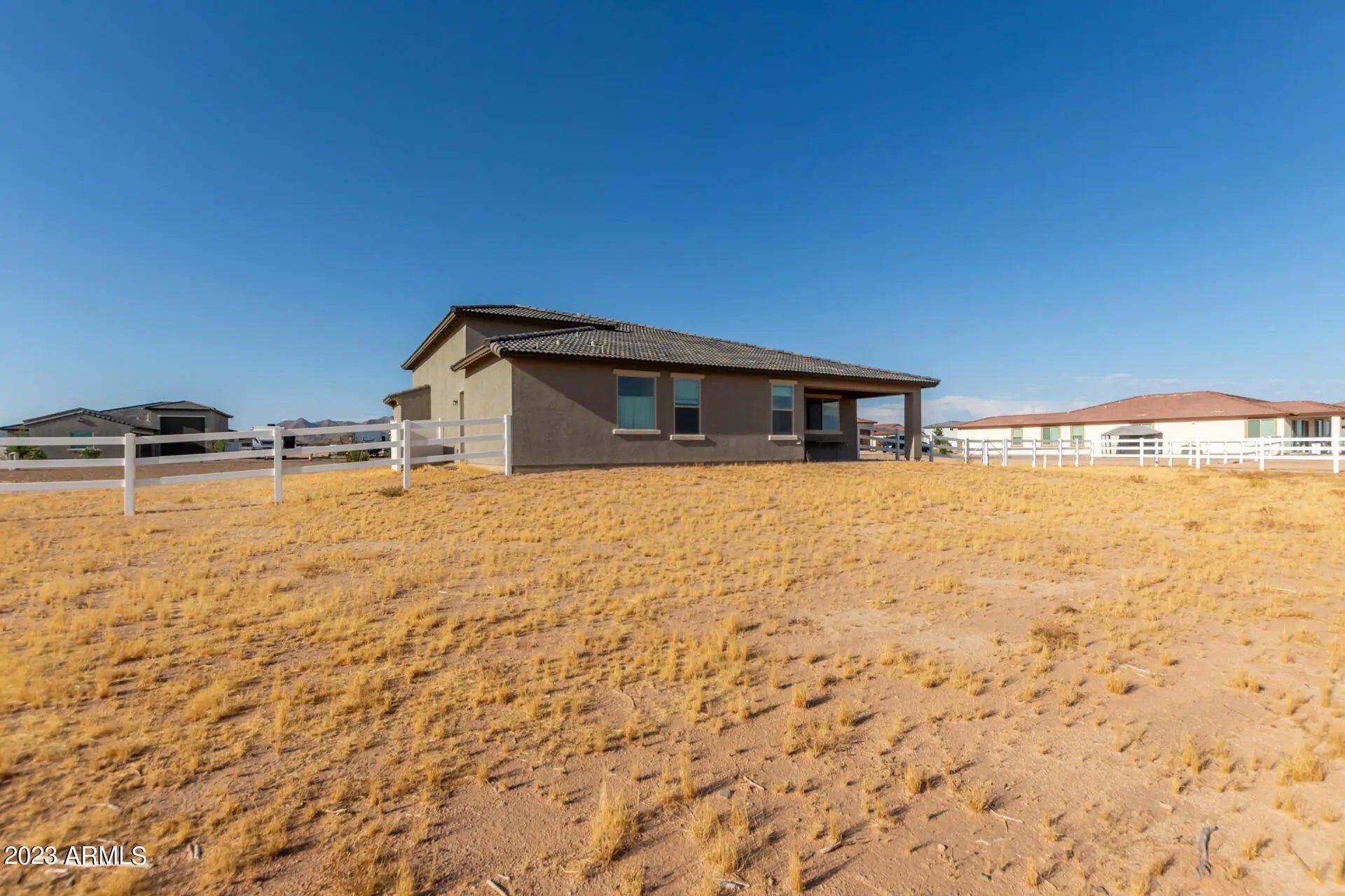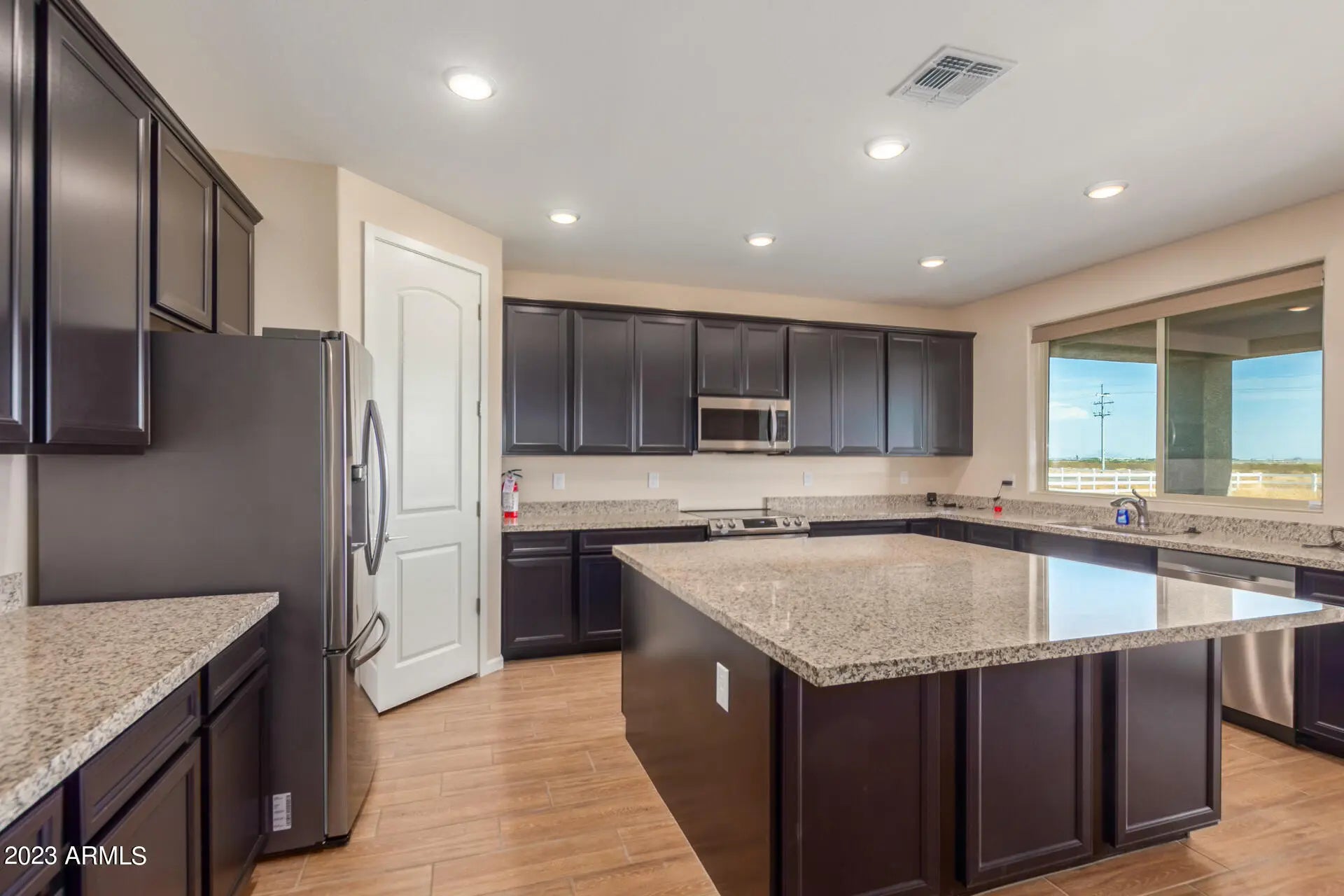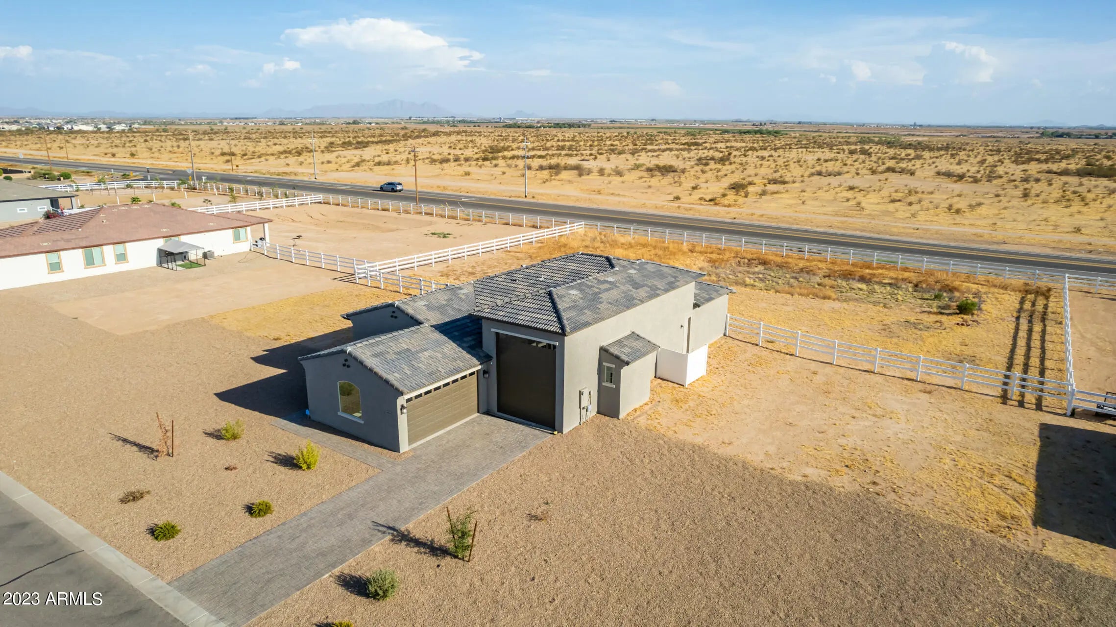 Welcome to your Next Home! This stunning 2022-built property sits on a fully fenced one-acre lot with an RV gate and an attached over-height RV garage in addition to a standard two-car garage. This spacious floor plan offers four bedrooms and three full bathrooms. The interior features beautiful wood plank tile throughout and matching granite countertops in the kitchen and bathrooms. The kitchen boasts a large island with extra cabinet storage, a walk-in pantry, and ample counter space—perfect for cooking and entertaining. The primary suite includes a sliding glass door leading to the backyard, and the ensuite bathroom features a double vanity, soaking tub, and separate walk-in shower. Additional highlights include a laundry room with upper cabinets for extra storage and plenty of space outdoors for RV parking, toys, or future projects. Enjoy modern finishes, functional design, and the freedom of a full acre in this move-in-ready home!