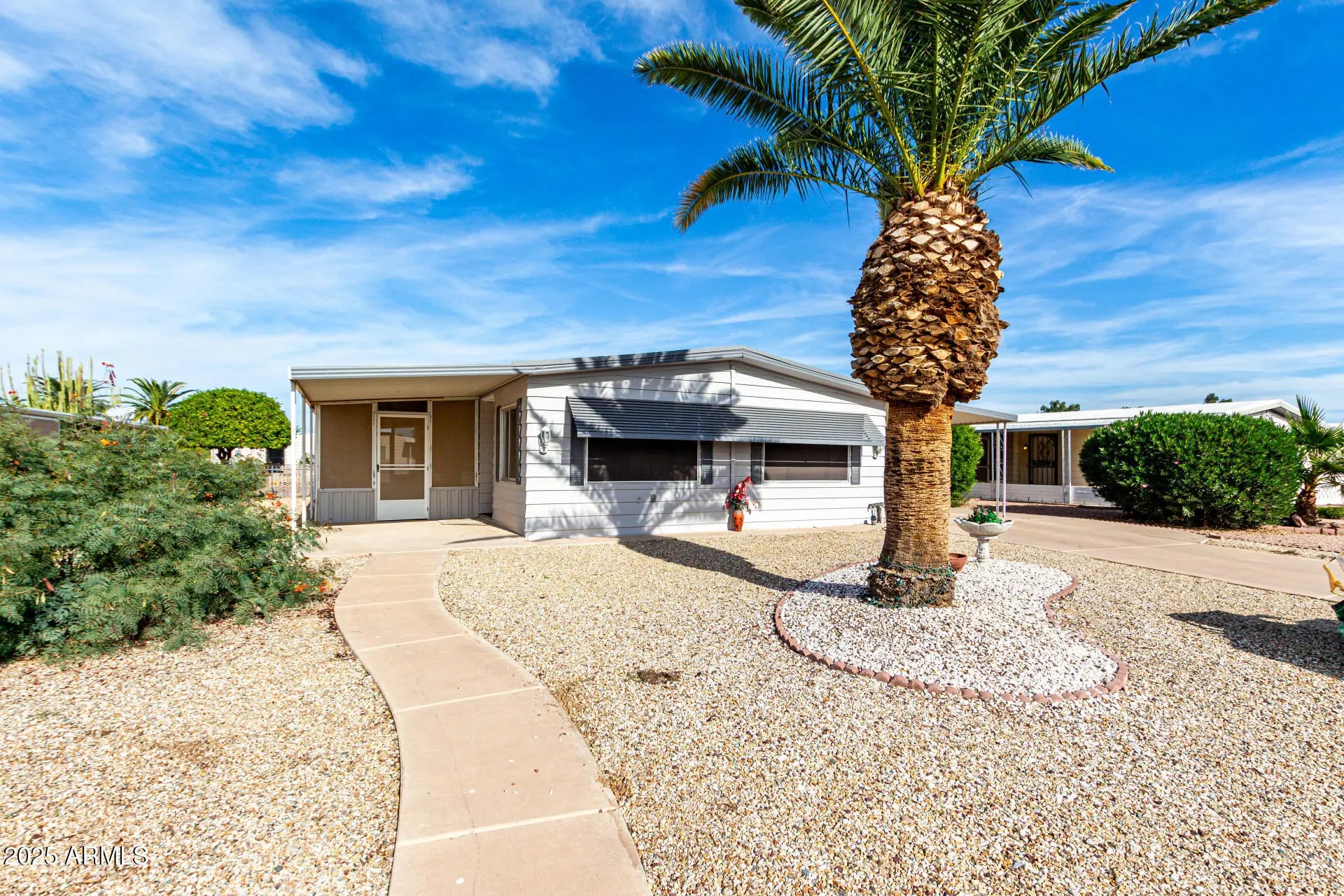 Charming 2 Bedroom, 2 Bath home with screened Arizona room! Welcome to this well-maintained home offering comfort and functionality throughout. The kitchen features beautiful countertops, a wall oven, dishwasher, and disposal, perfect for everyday living or entertaining. The spacious main bathroom includes double sinks, a separate shower, and a relaxing garden tub. Enjoy extra living space in the screened-in Arizona room, ideal for morning coffee or evening gatherings. The laundry area includes a washer and dryer for added convenience. A built-in bar/counter adds a fun touch for entertaining guests. Outside, you'll find a long covered carport with room for two vehicles. This home blends practicality and style, make this house your home!