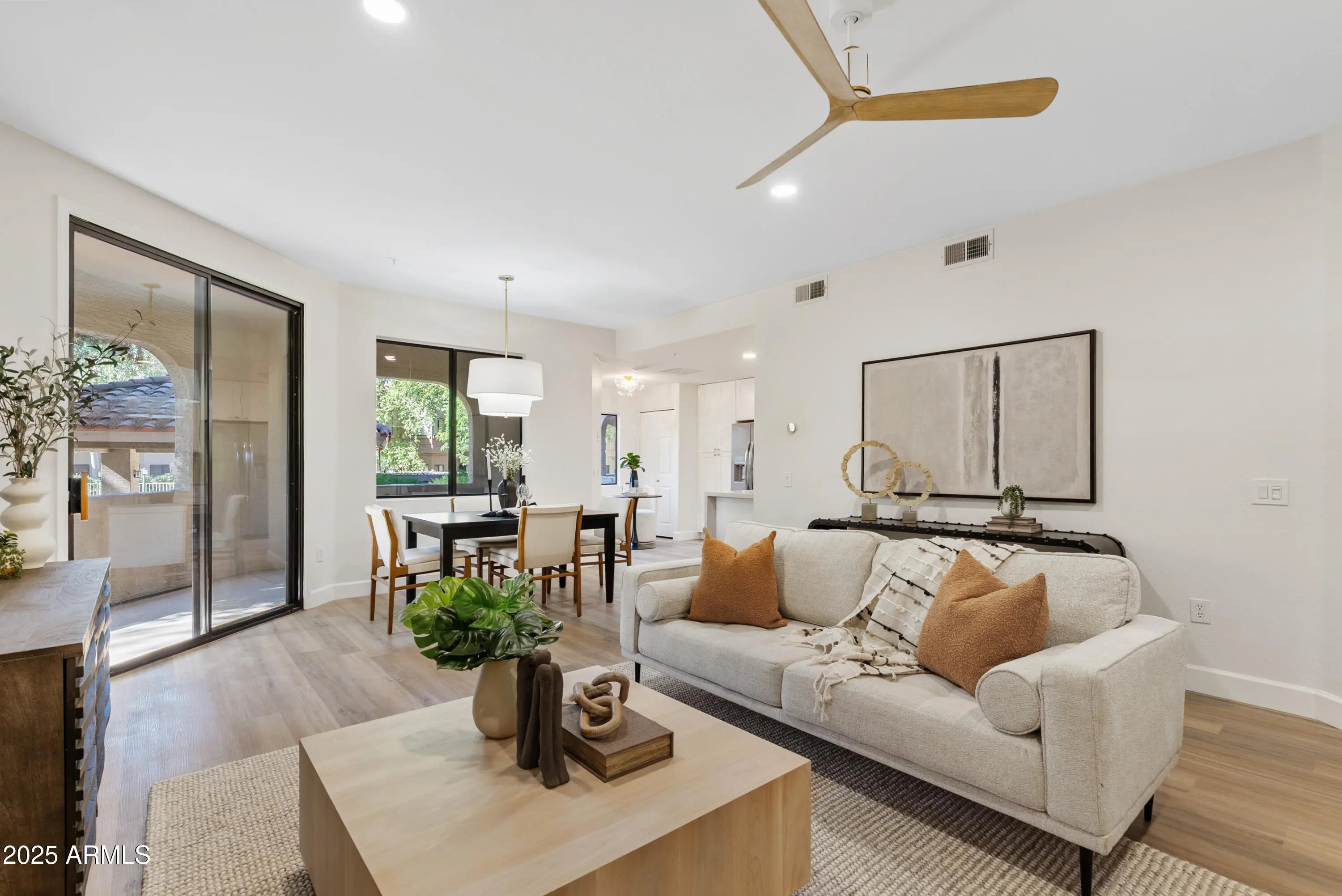 This one has it all! STUNNING 2 bed/2bath with a den (large enough to be a 3rd BR), ground level unit with no interior stairs. FULL RENOVATION, professionally designed, completed October 2025. Large, wrap around patio faces pool & open grassy area. Brand new everything! Luxury vinyl tile throughout. Kitchen has white shaker cabinets with 42'' uppers for that custom look, brand new SS appliances & quartz countertops. Primary bathroom is a dream with custom tile, oversized walk in shower, quartz countertops, and two vanities. Fireplace with tile surround for that cozy, modern look. Location, location, location. Across the street from Horizon Park. Close to WestWorld, WMO golf tournament, Kierland, Scottsdale Quarter, restaurants, Starbucks, grocery store, dining & more!