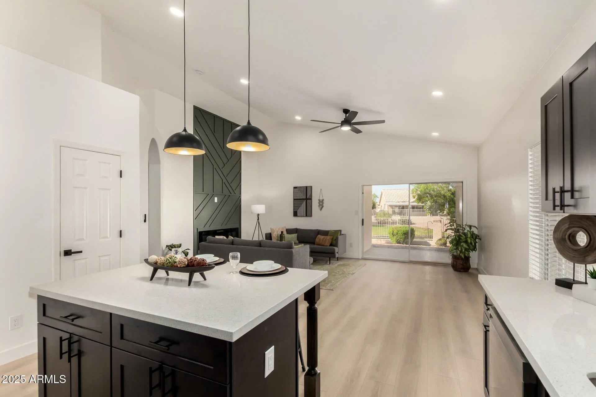 This gorgeous 3 bed/2 bath cul-de-sac waterfront home blends style & comfort in a bright layout full of modern touches, featuring laminate floors,vaulted ceilings, contemporary lighting and custom design wall w/electric fireplace. Beautiful kitchen with shaker cabinets, backsplash, quartz countertops, all new appliances and pantry. Primary suite with custom design throughout from accent wall to a soaking tub with added features to enjoy long relaxing baths while gazing at the lake. Both bathrooms offer beautiful tiled showers, modern light fixtures. Secondary rooms with soaring ceilings and ample room. Step out back to your lakeside oasis, enjoy your morning coffee &watch ducks & birds.Located near Downtown Gilbert- Gilbert Schools and more... 2024- HVAC 4 ton- 17 seer unit. All new roof underlayment-October 2025.